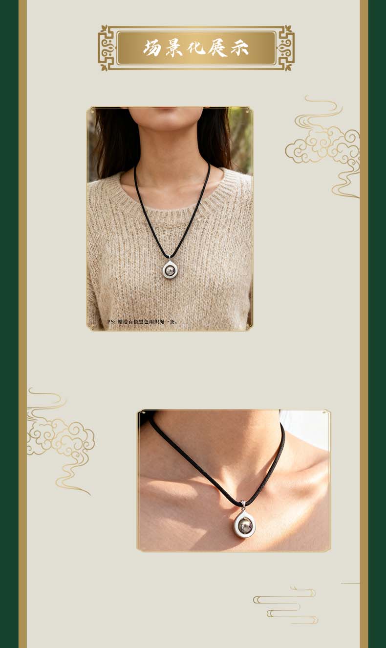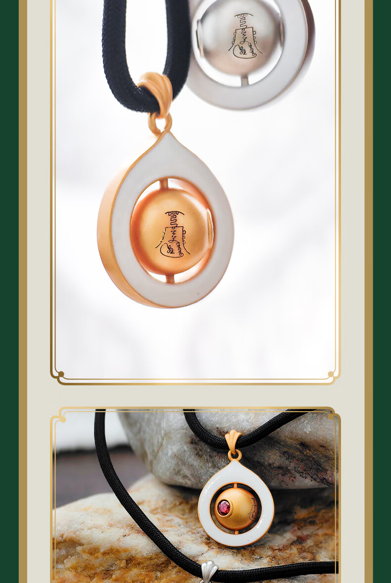 老凰祥足银999描金牡丹花吊坠女款国风中式纯银项链民族风毛衣链 足银牡丹花银珠款20克