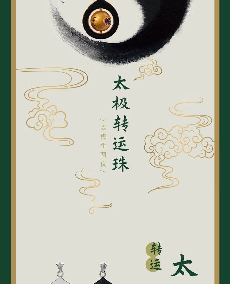 赤松仙香港黄大仙太极转运珠铜镀K金吊坠时来运转道家祝福寓意好吊坠 银色(唱过歌)