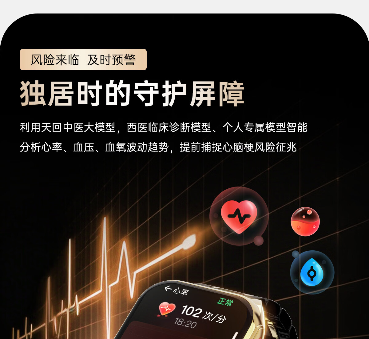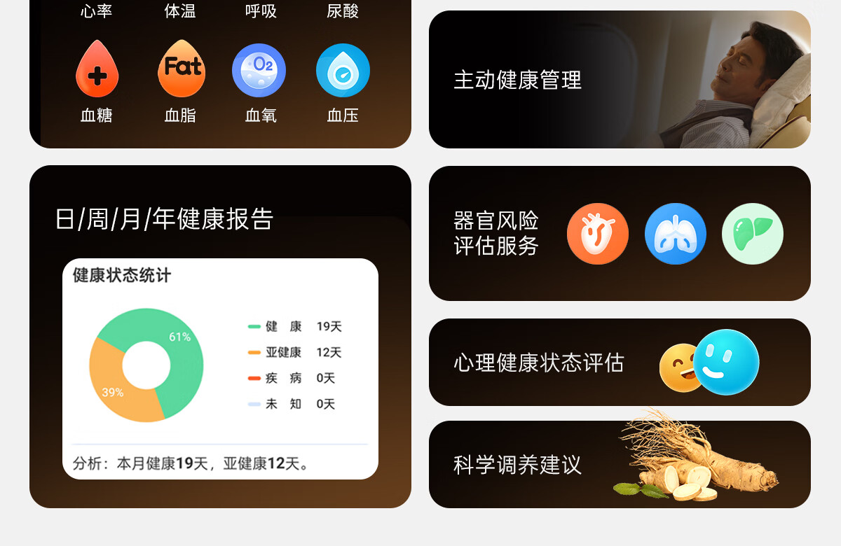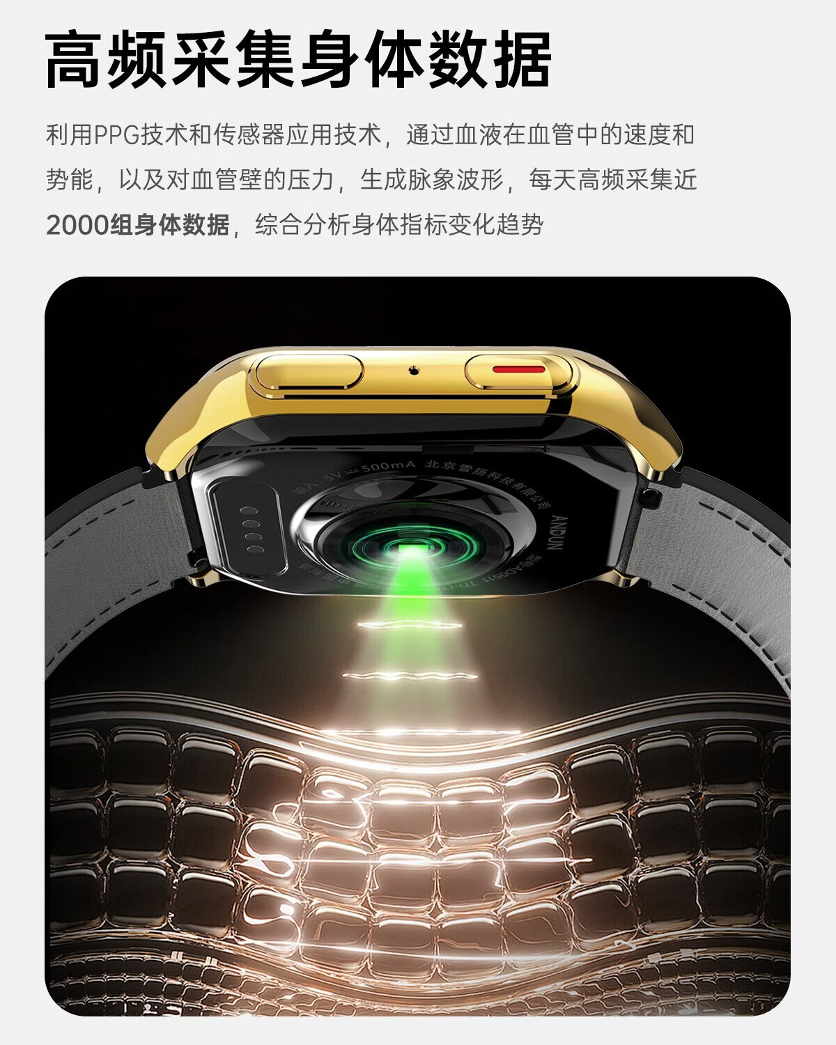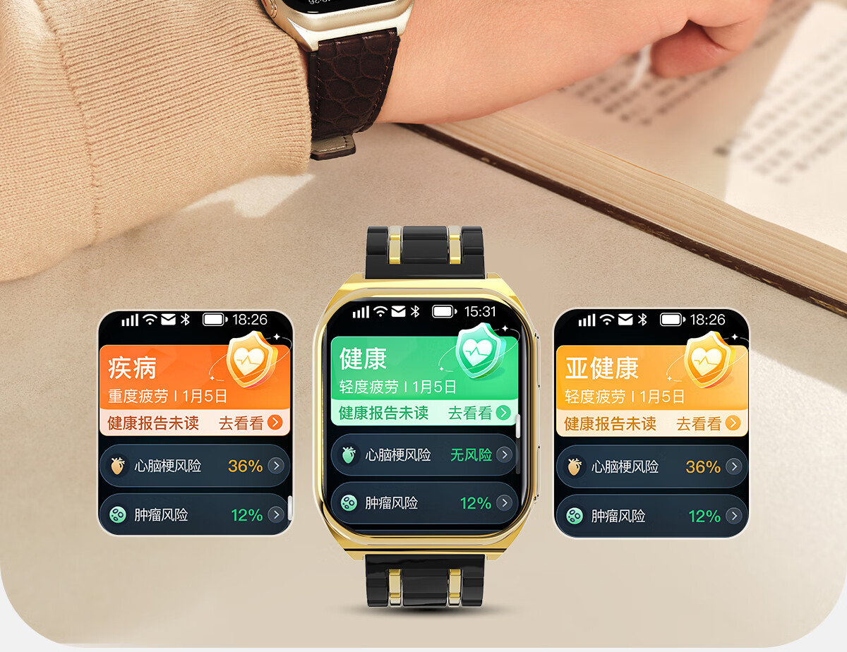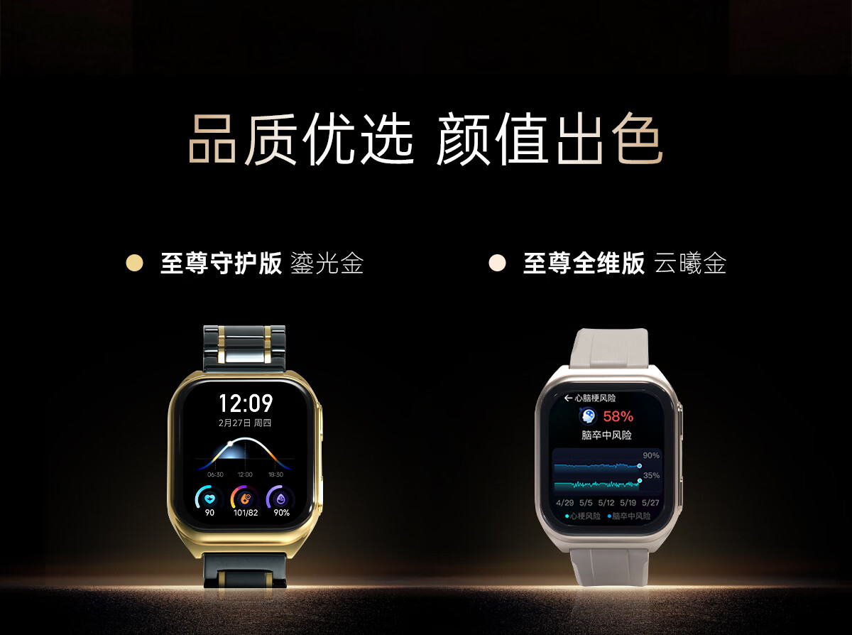 安顿健康预警手表心梗脑卒中风险预警血压血氧血糖趋势尿酸心脏健康监测智能手表送礼父母节日老人 至尊全维版-女款云曦金【礼盒款】-36项服务