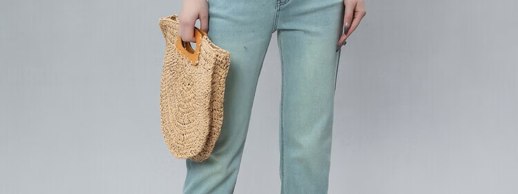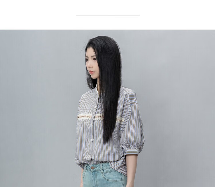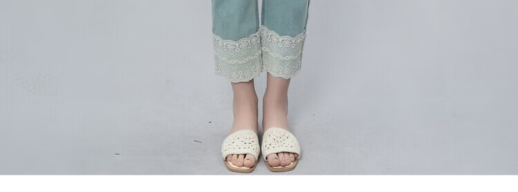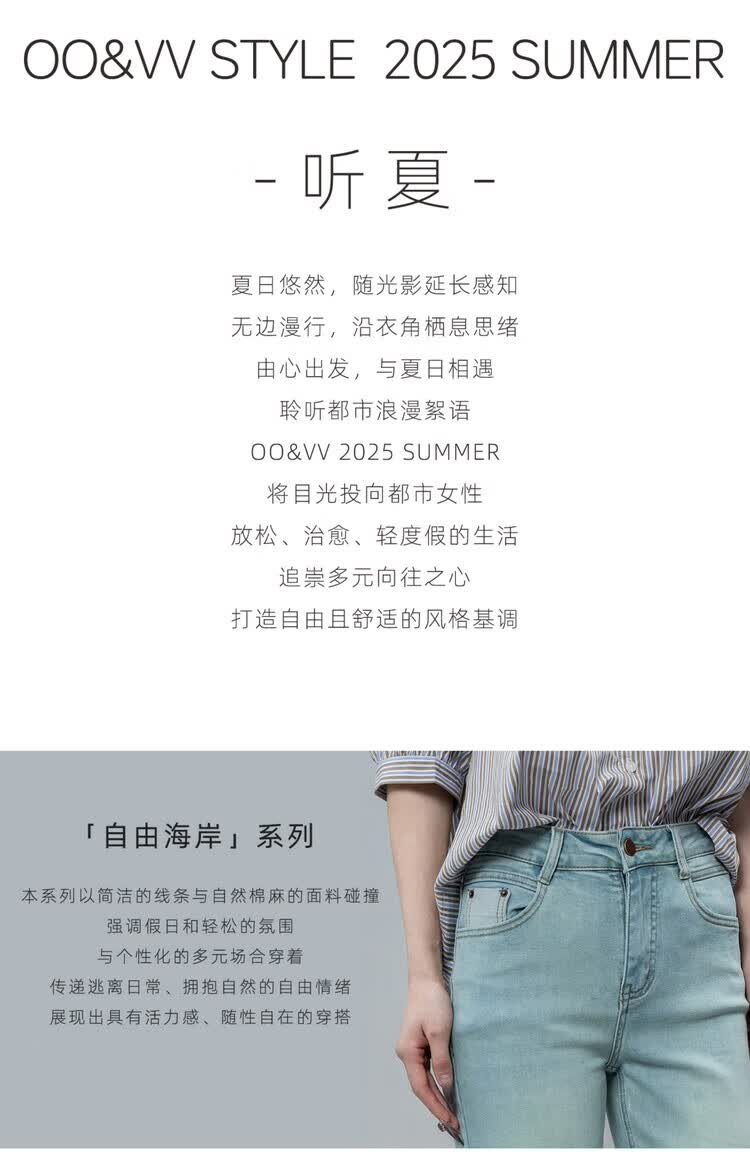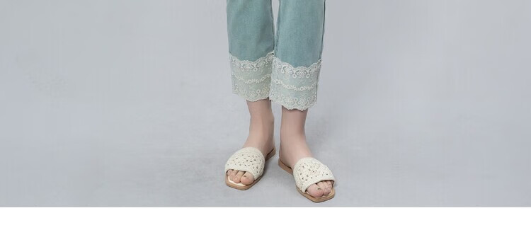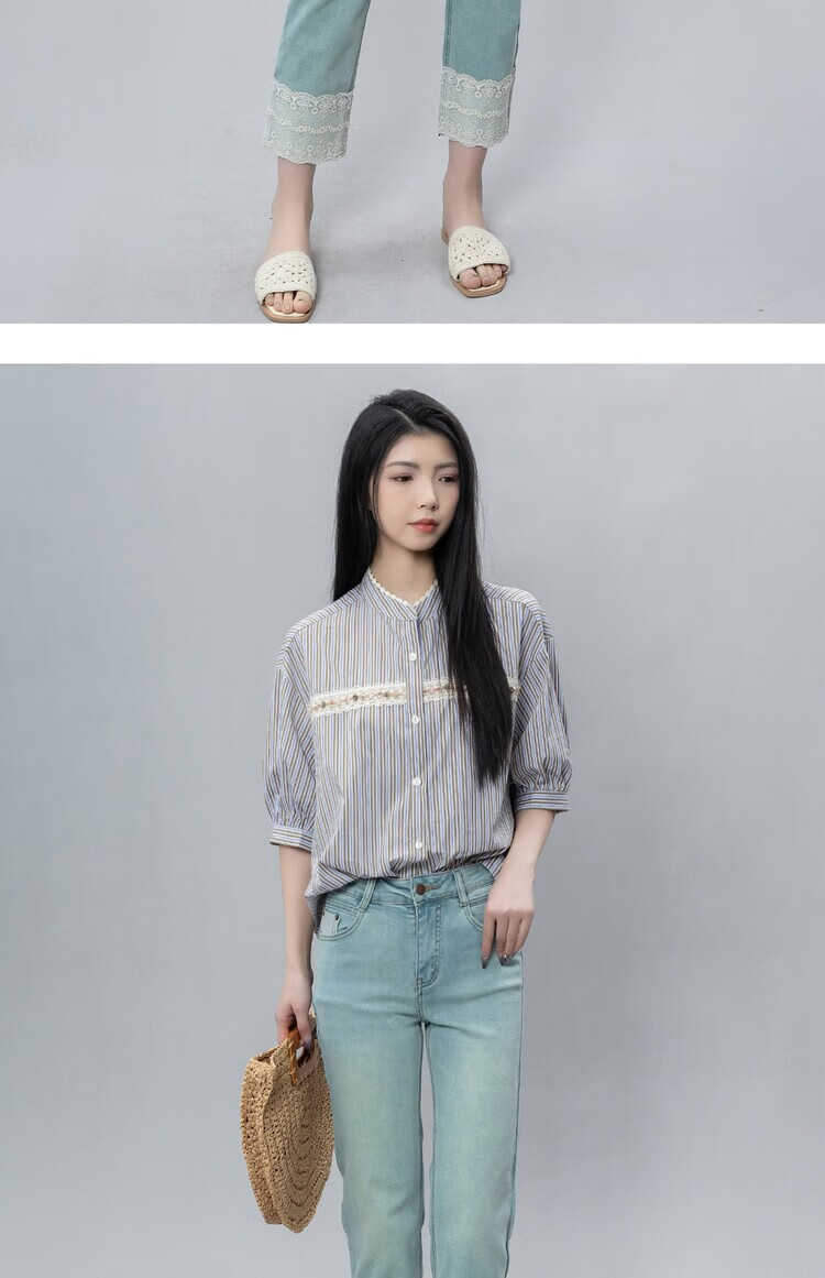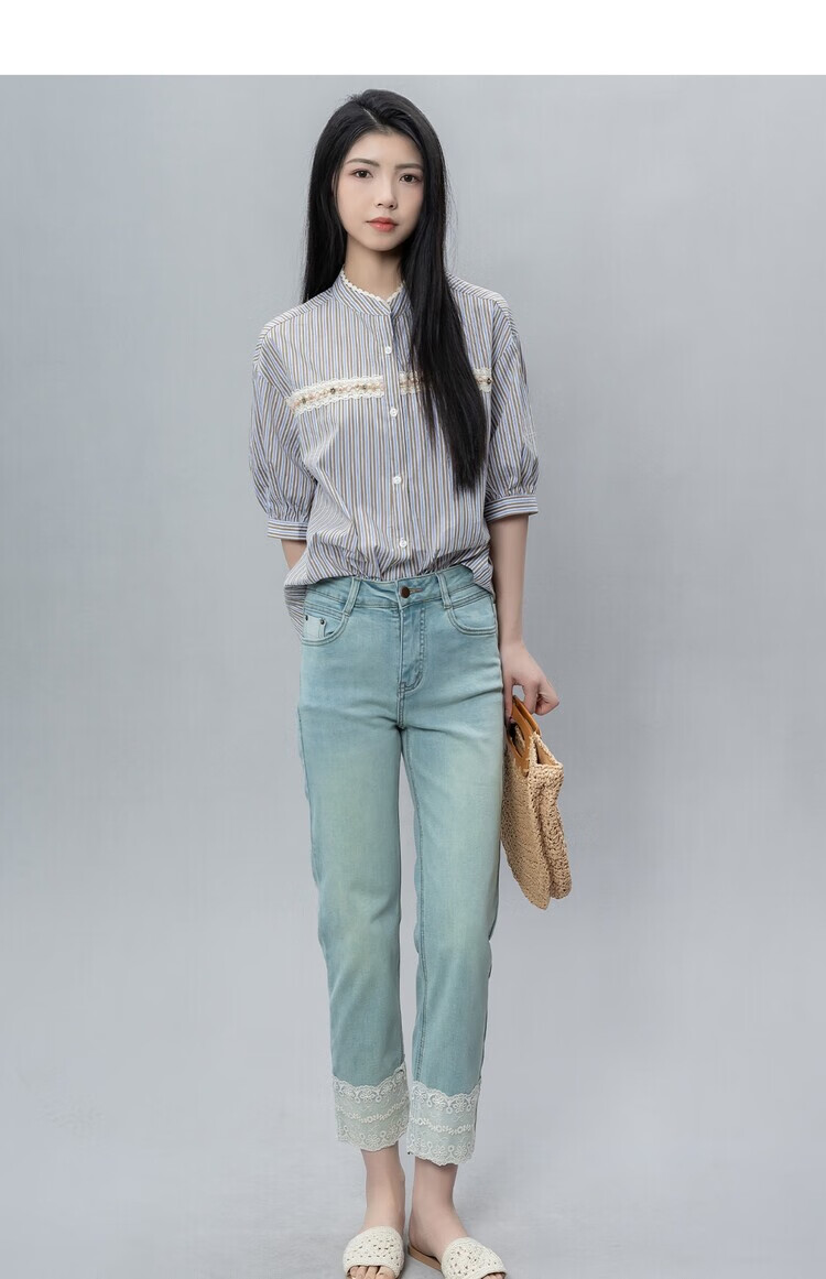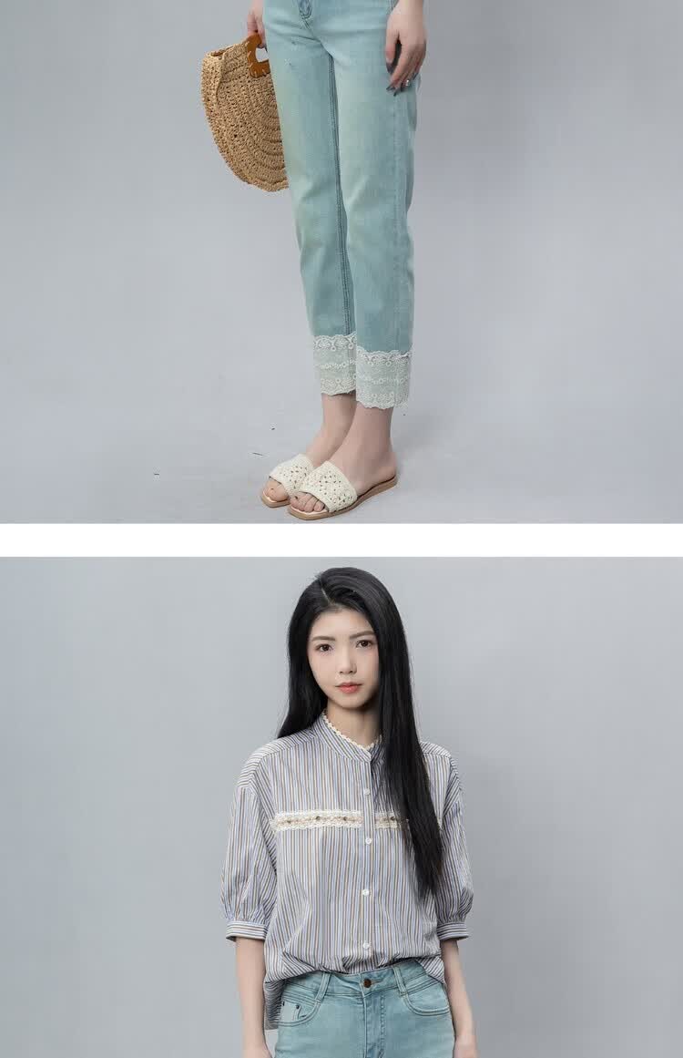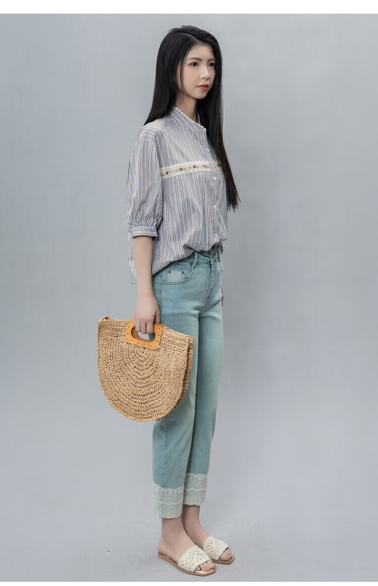 OO&VV复古港风高腰显瘦蕾丝拼接牛仔裤女2025夏新款直筒九分裤子 复古蓝 S