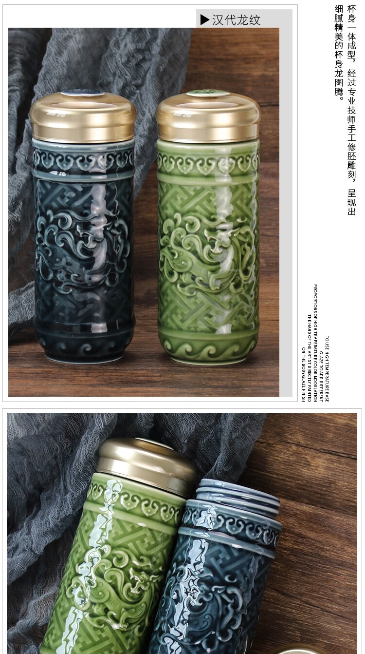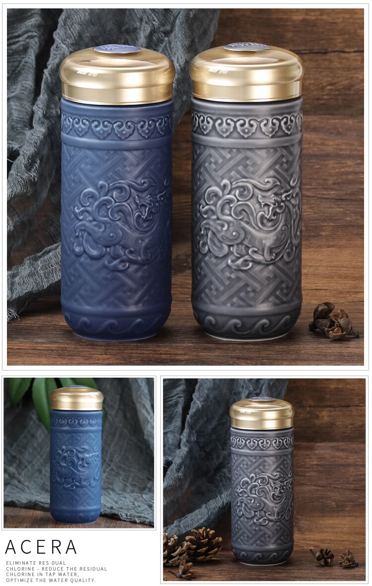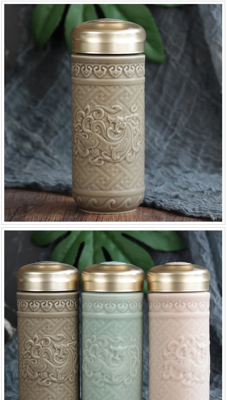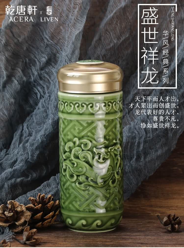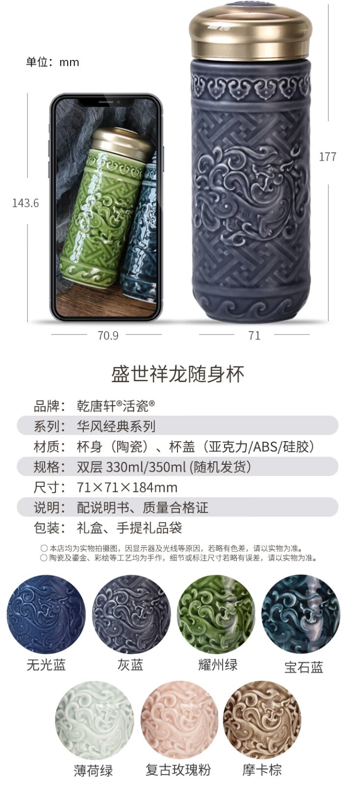 乾唐轩【官方授权】正品活瓷杯盛世祥龙随身杯双层陶瓷茶水杯送人礼品 摩卡棕(礼盒装带杯刷布杯套)