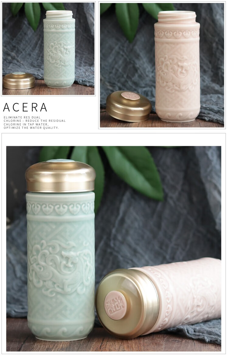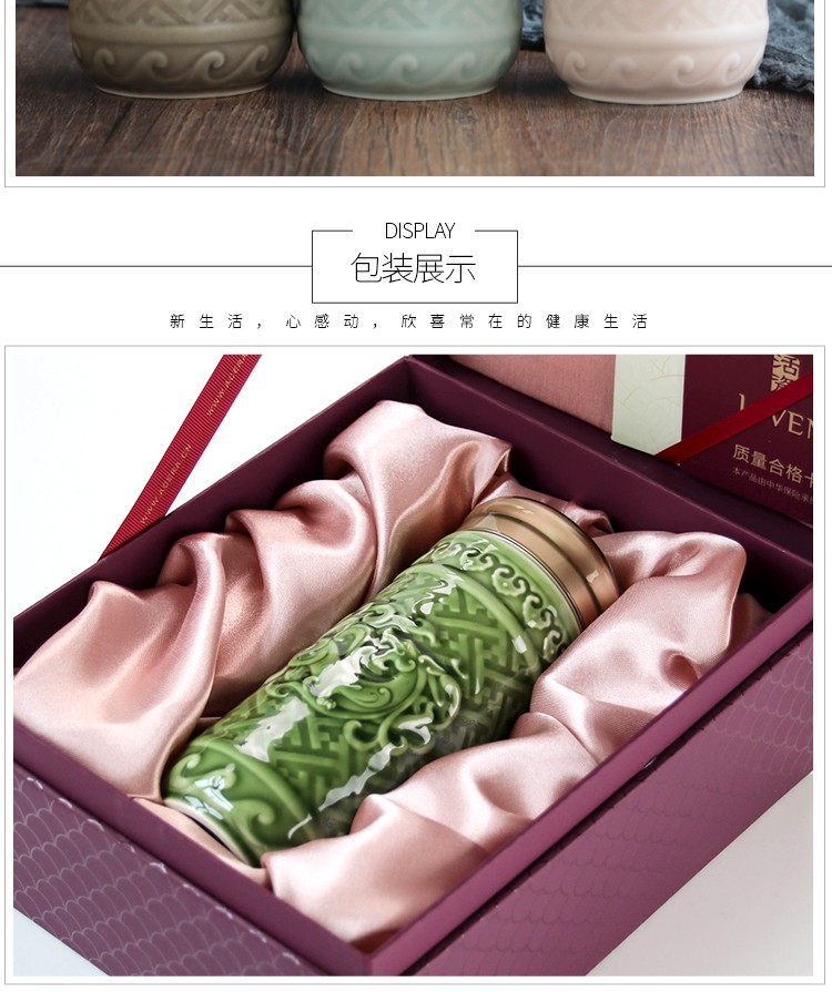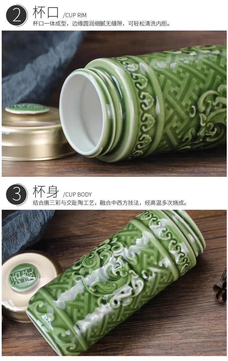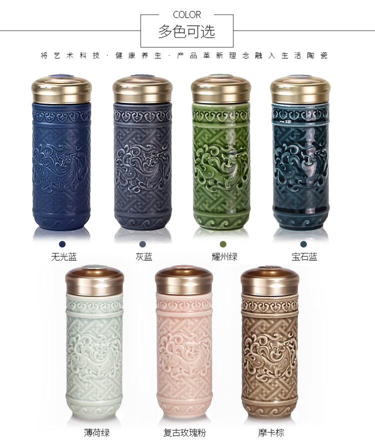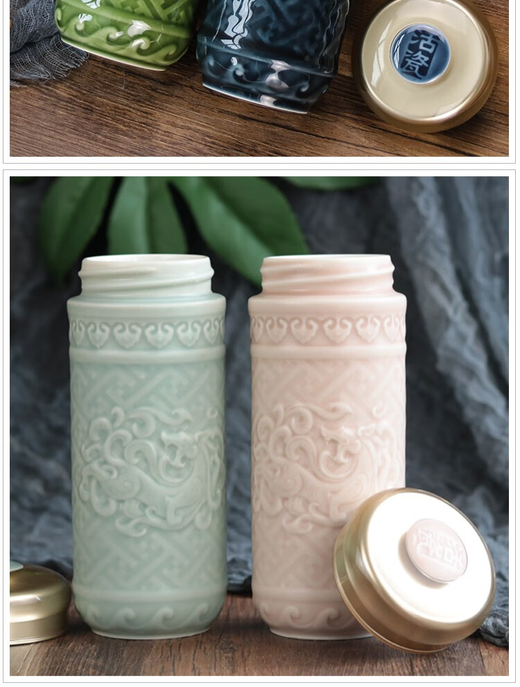 乾唐轩【官方授权】正品活瓷杯盛世祥龙随身杯双层陶瓷茶水杯送人礼品 摩卡棕(礼盒装带杯刷布杯套)