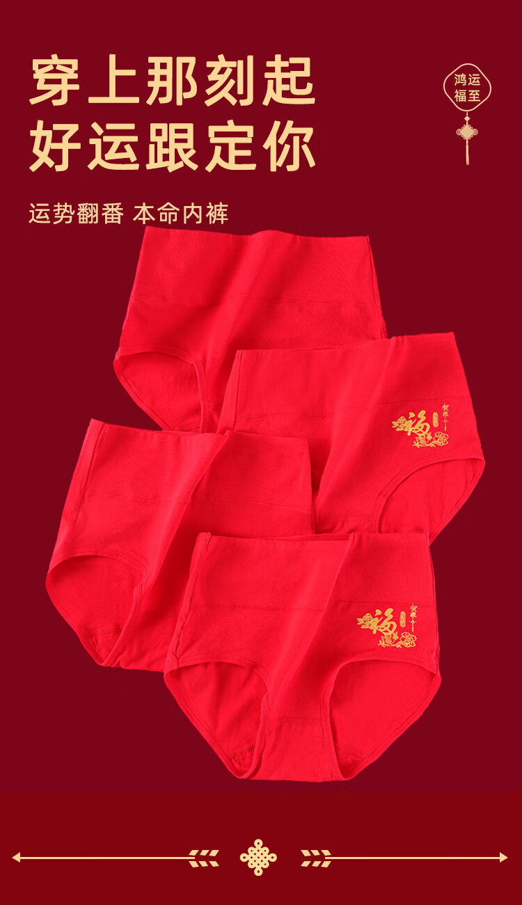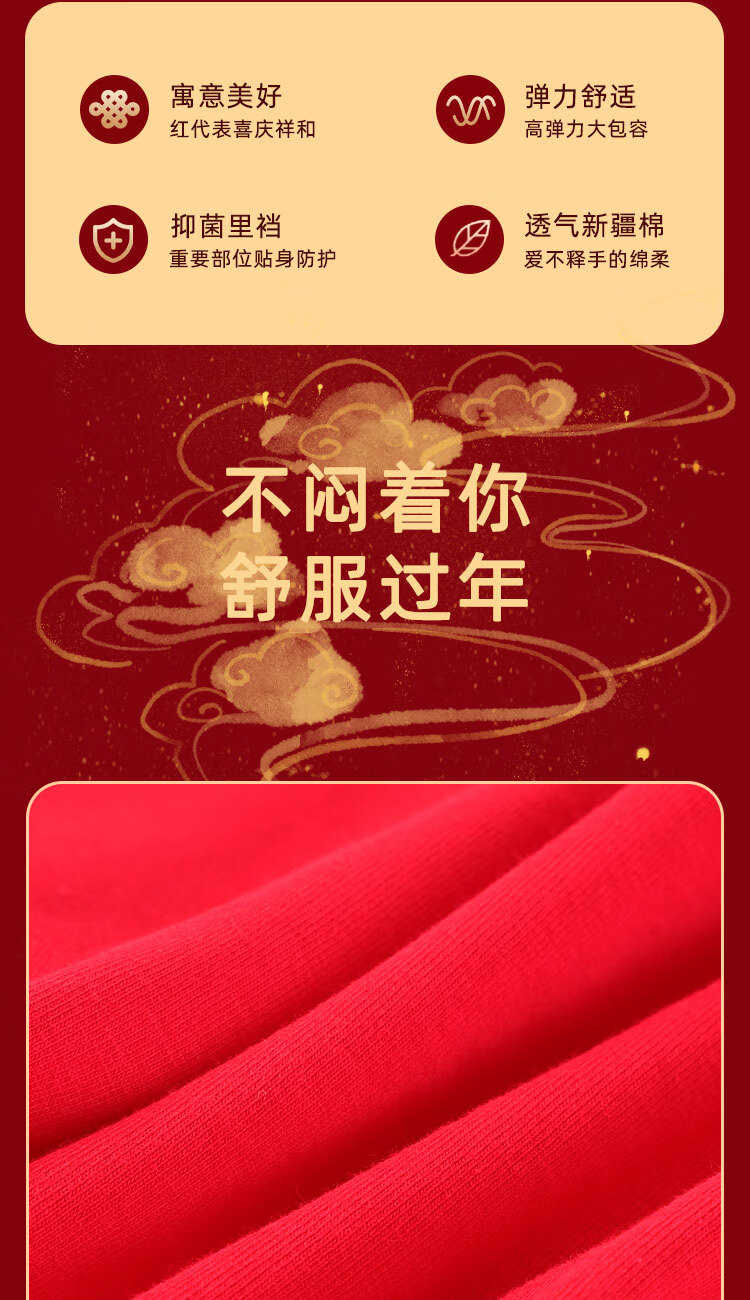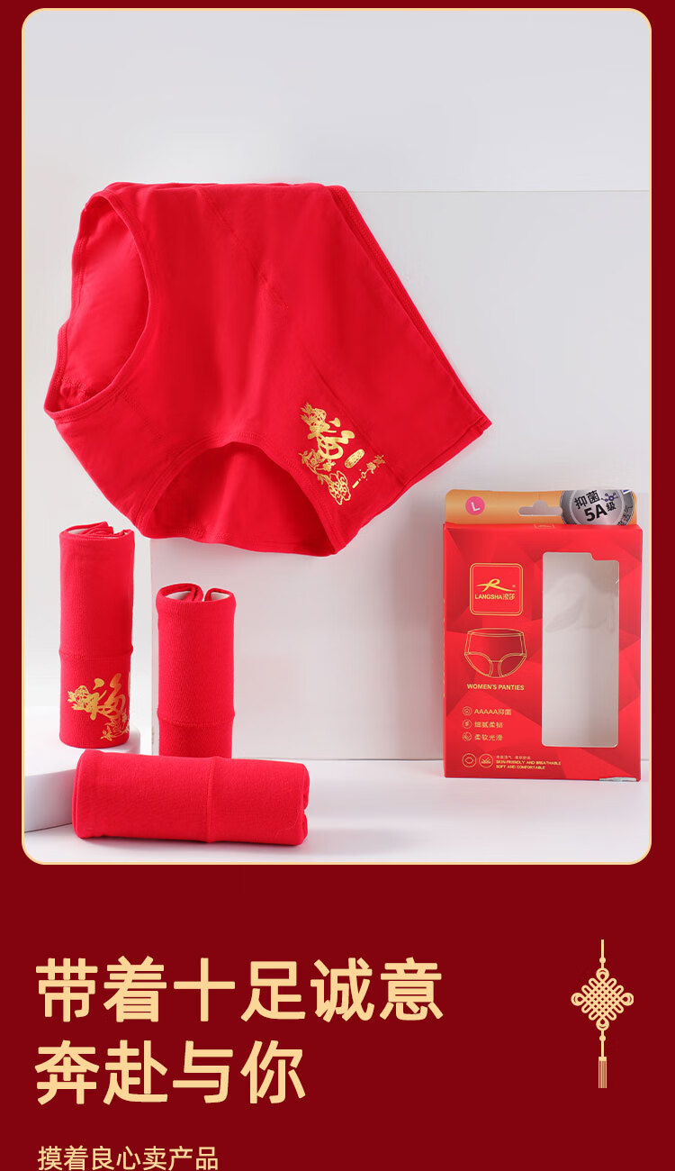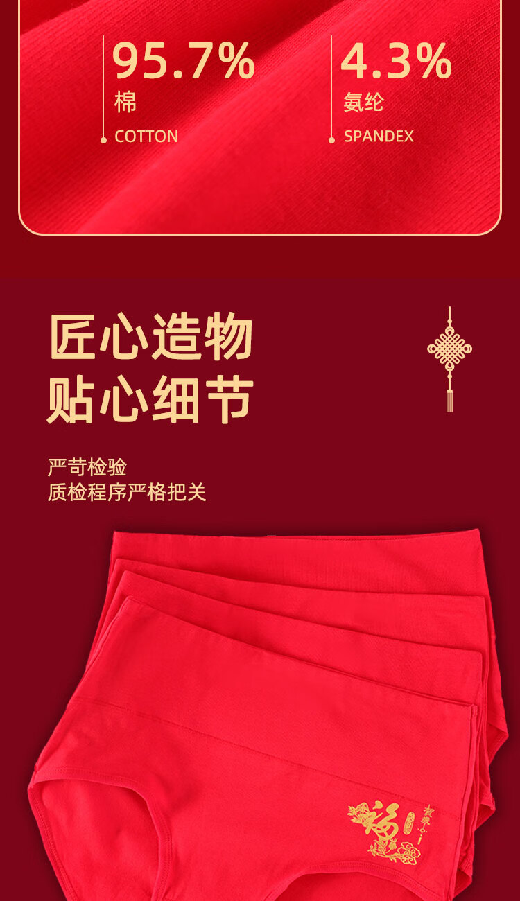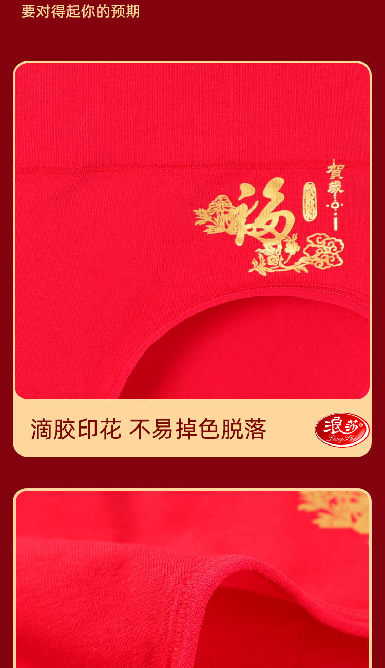 浪莎红内裤女本命年马年纯棉大红女士内裤袜子鸿运礼盒结婚喜庆内裤 【2条内裤+2双袜子】套装 XL 【115-135斤可穿】
