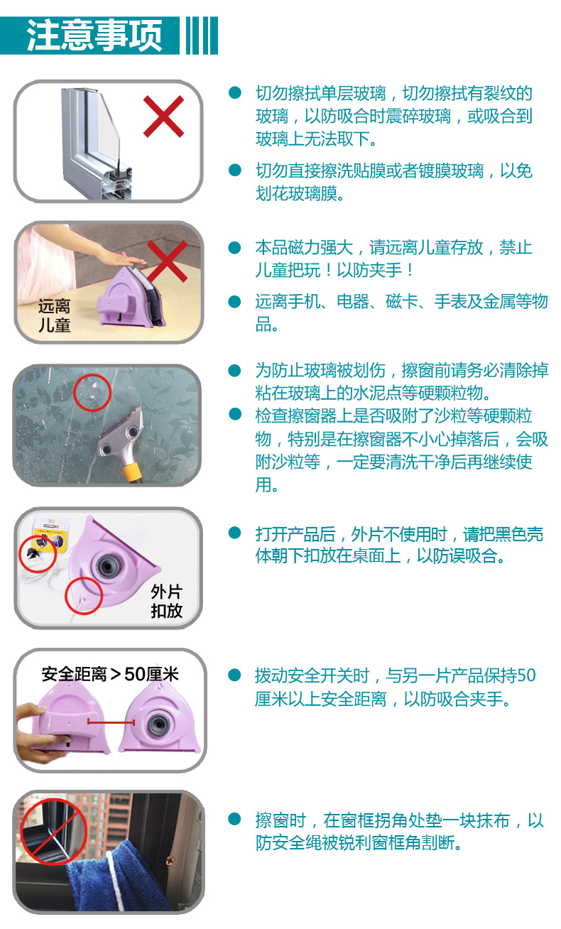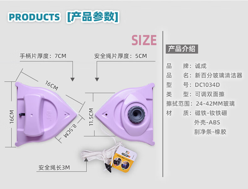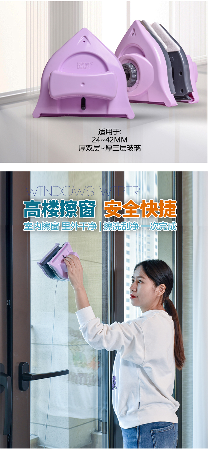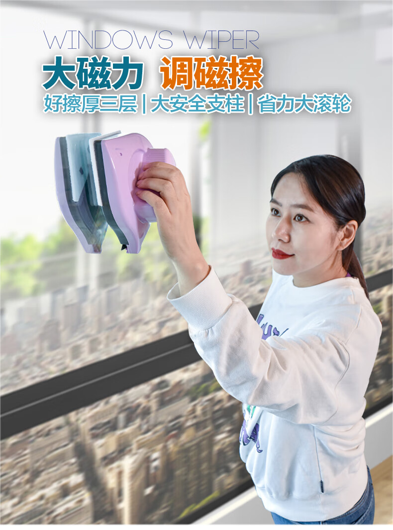 诚成 擦玻璃神器双层中空双面玻璃擦清洁器三层调磁玻璃刮擦窗玻璃刮 新品厚双层三层24-42毫米玻璃擦