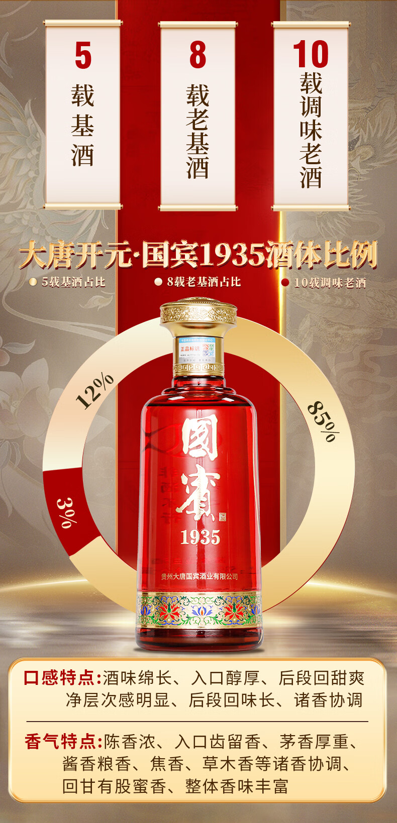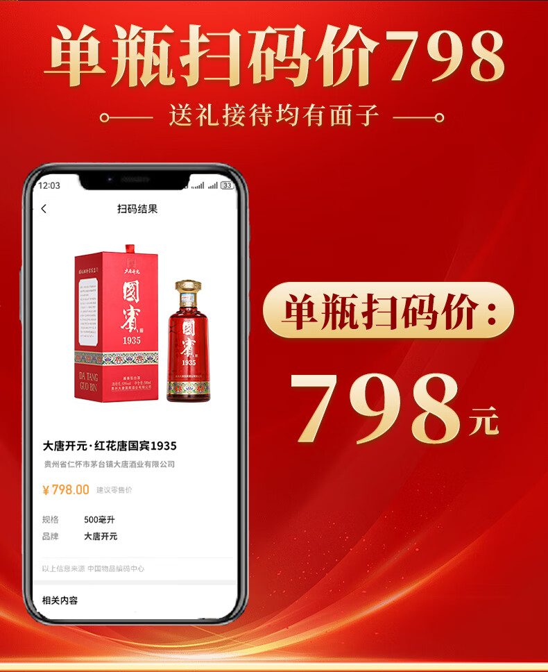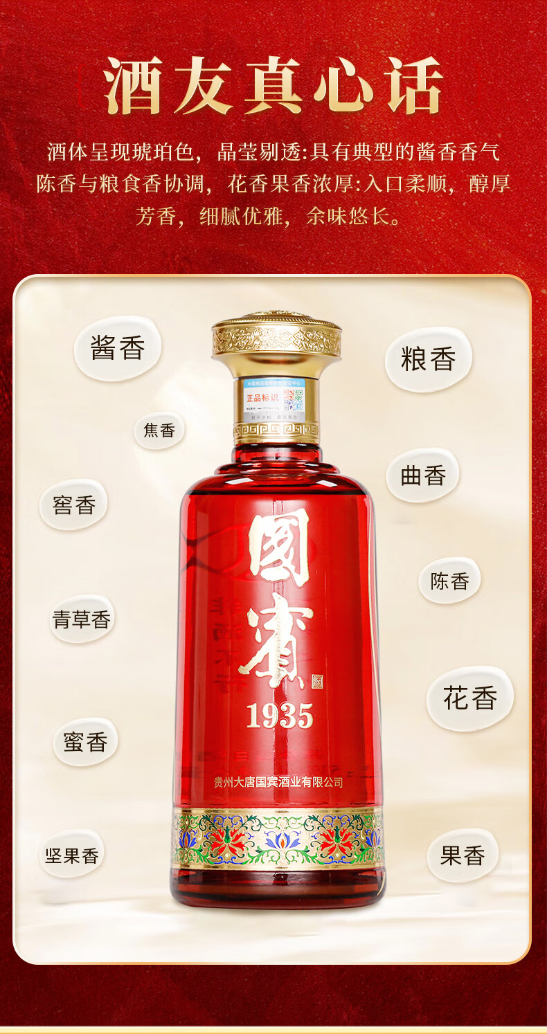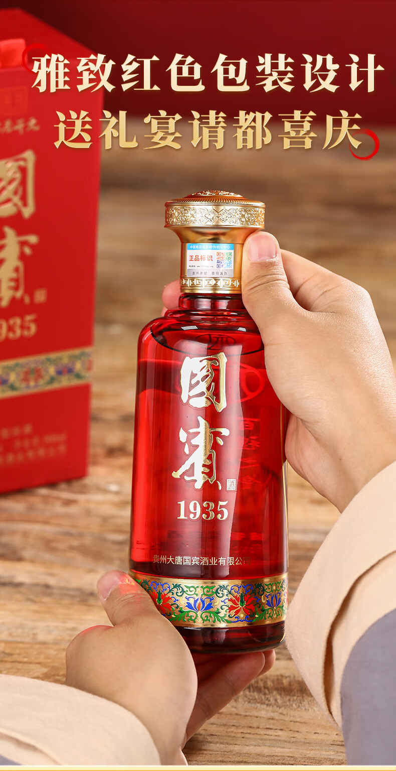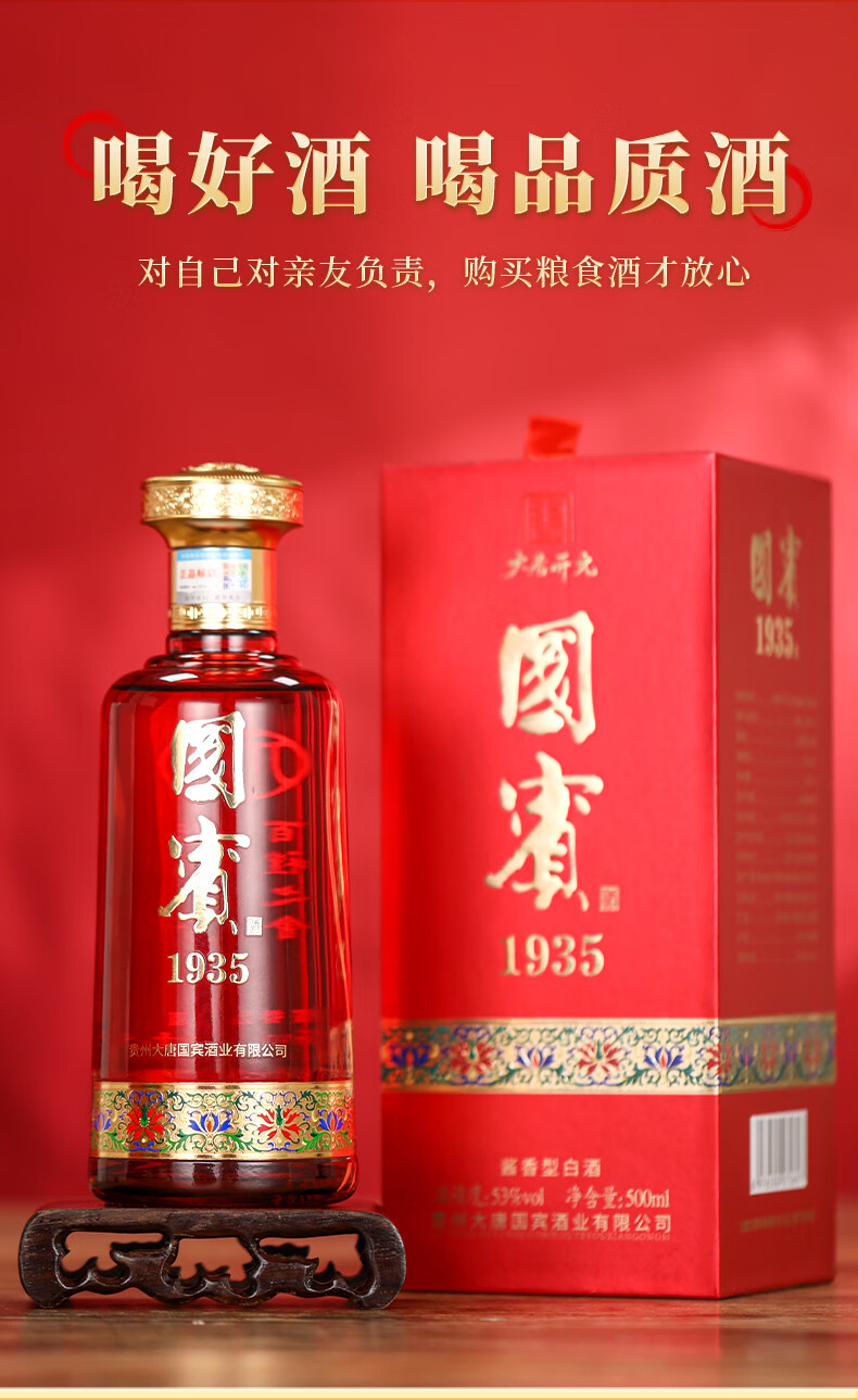 大唐开元茅台镇贵州国宾1935酱香型53度白酒纯粮食高粱原浆坤沙酱酒礼盒装 53度 500mL 6瓶 整箱(送3个礼品袋)