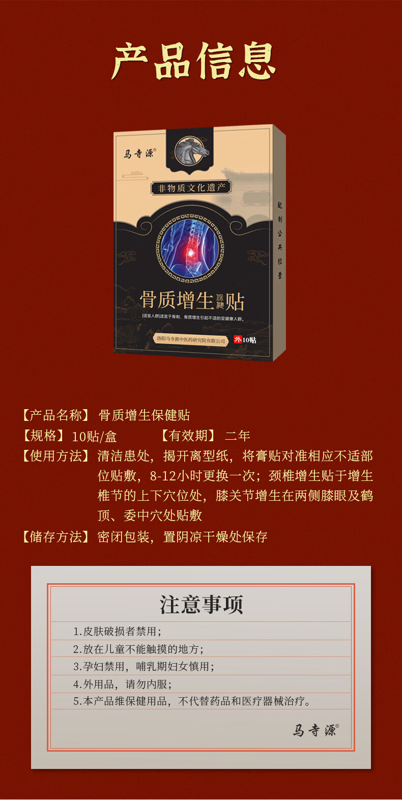 马寺源骨质增生膏i贴骨刺骨痛颈椎腰椎膝盖足跟骨刺肿胀消痛专用贴 买一发二