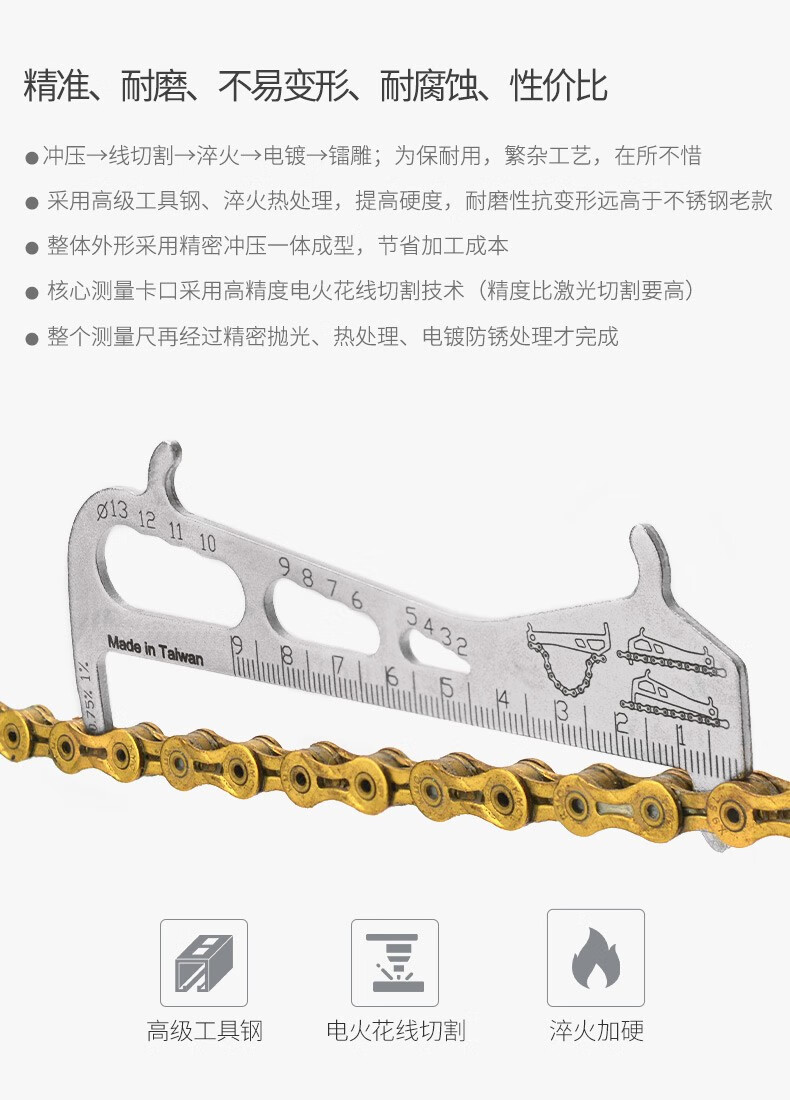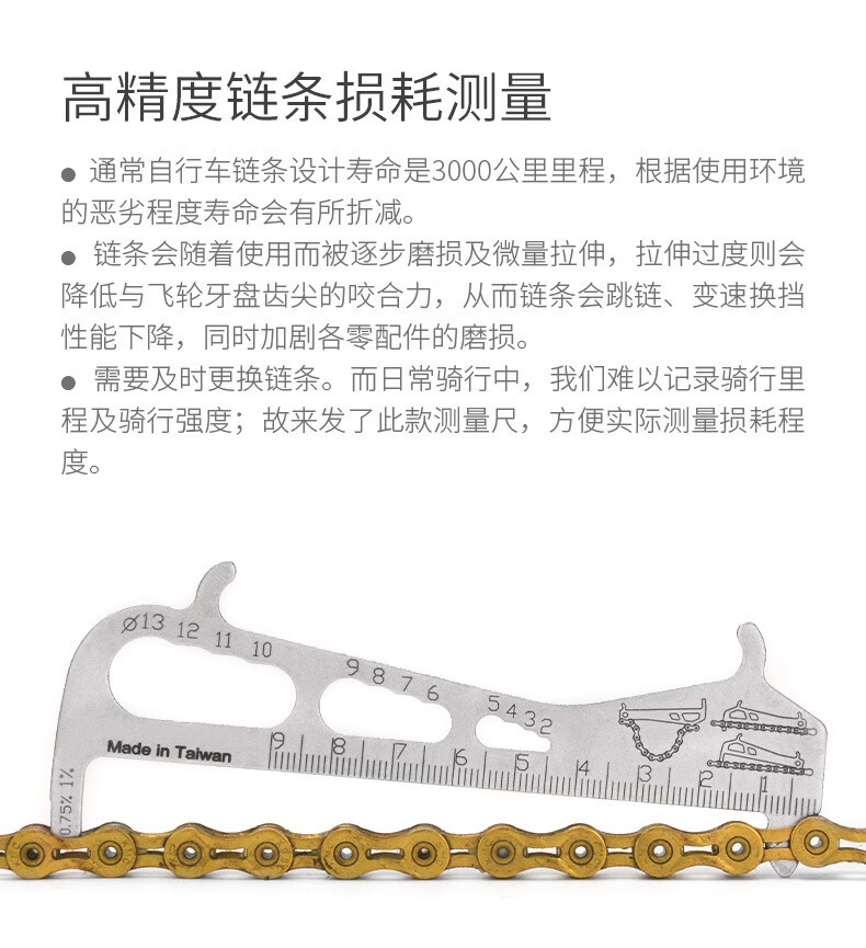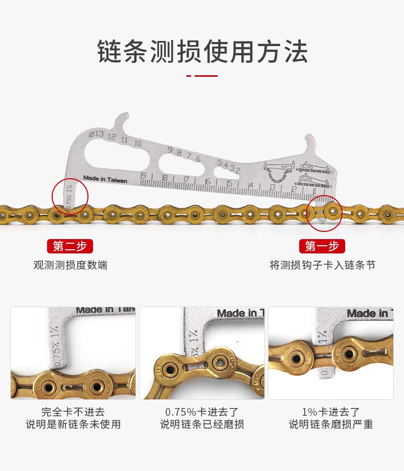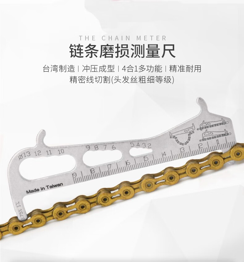自行车链条磨损测量尺山地车公路车链条拉伸检测卡尺更换链条工具 基础_链条尺