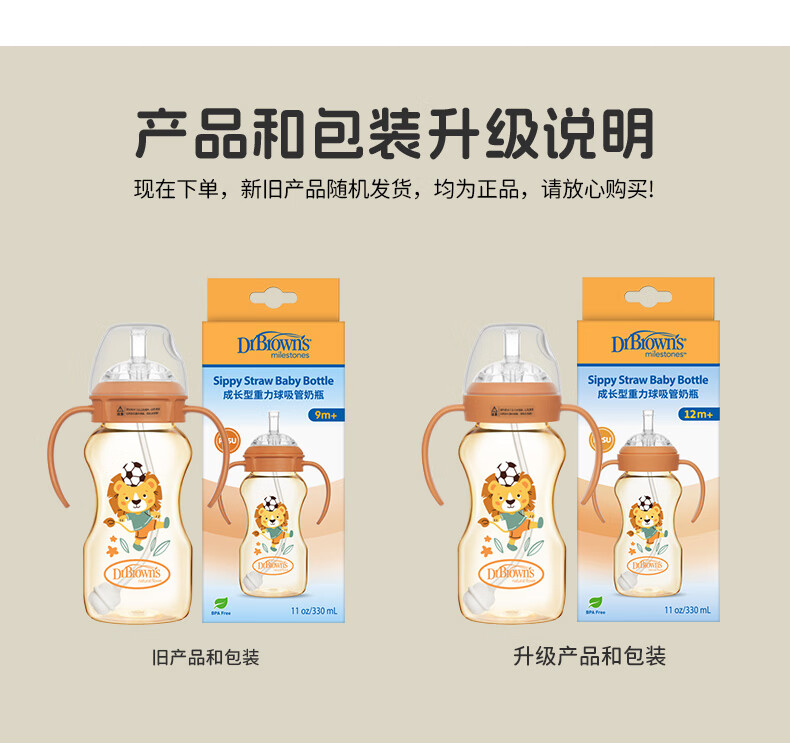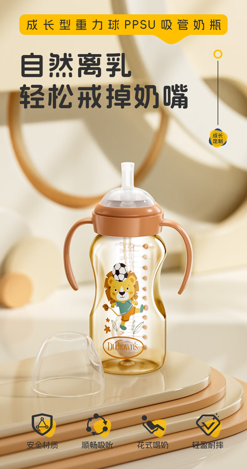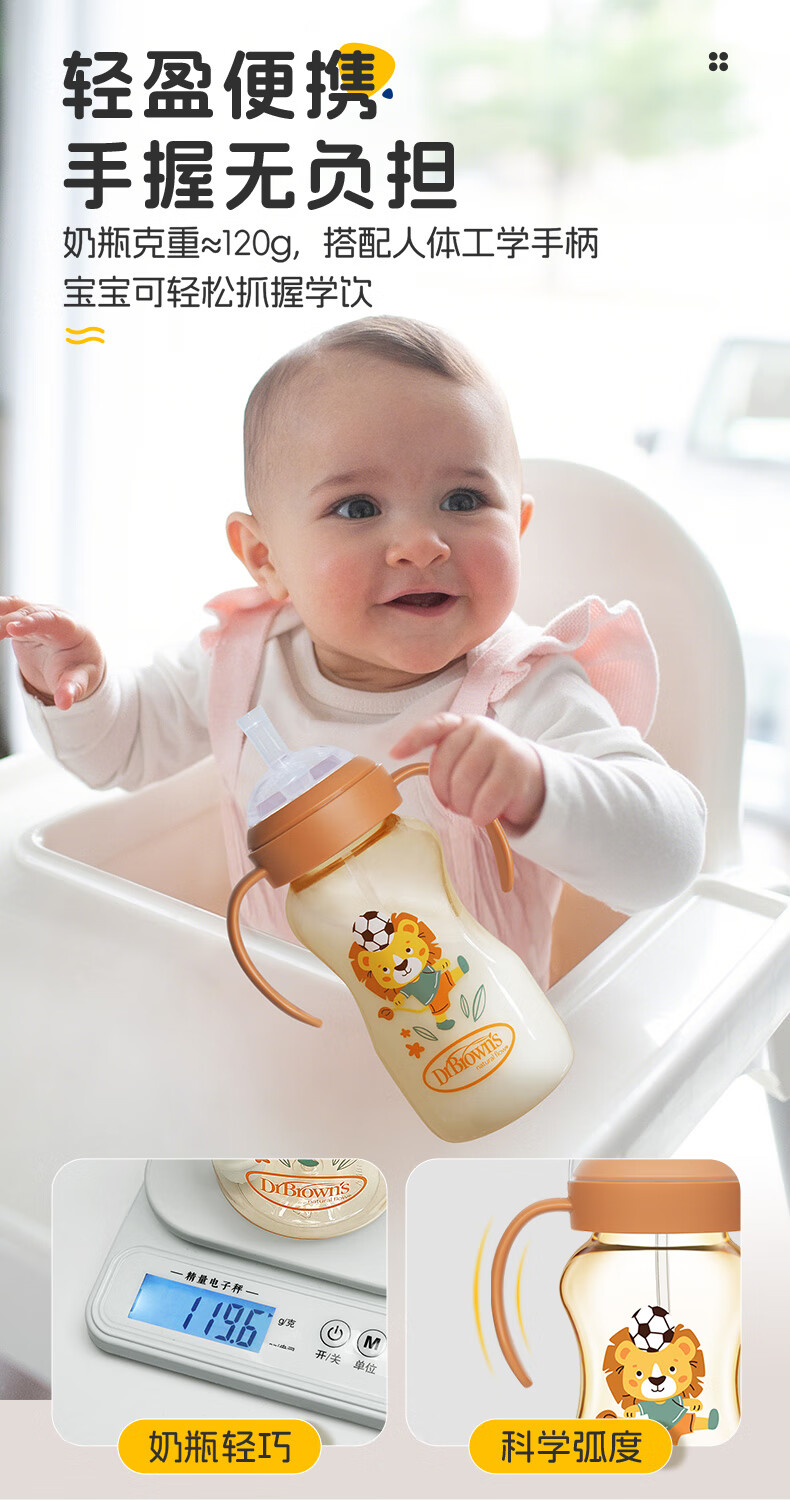 布朗博士吸管奶瓶 婴儿PPSU宽口直饮奶瓶 重力球带手柄 大月龄学饮330mL 【12m+学饮】直饮吸管奶瓶 330mL