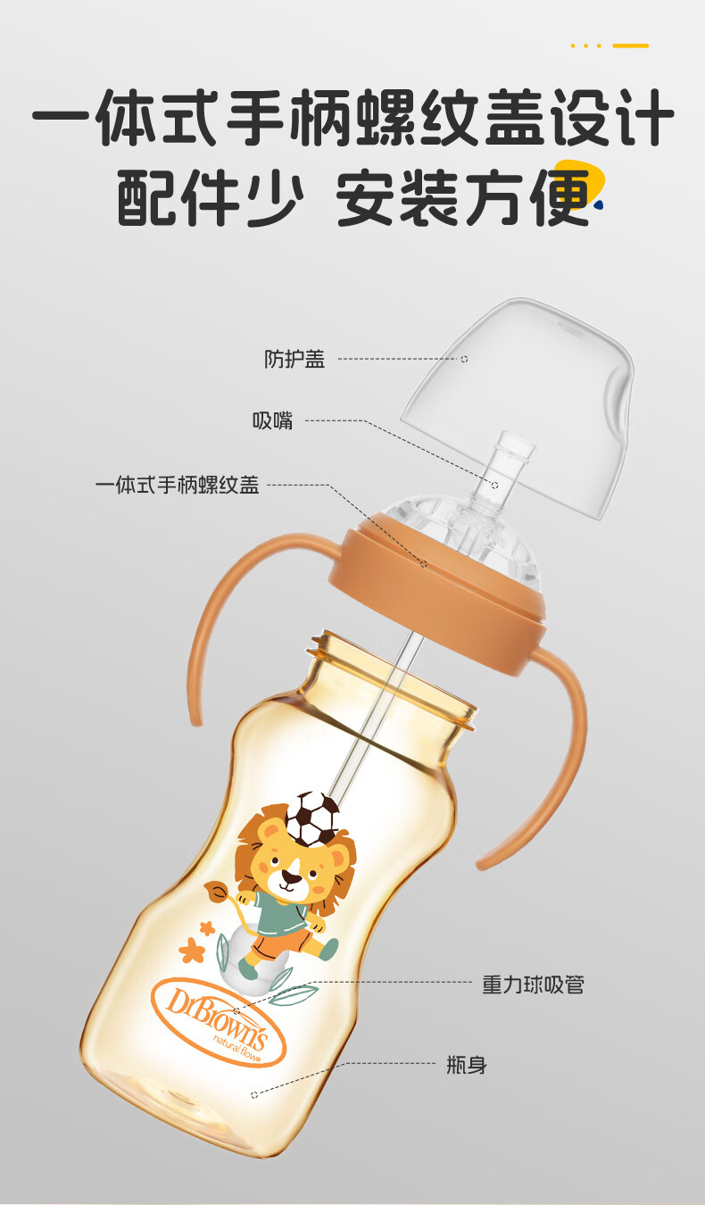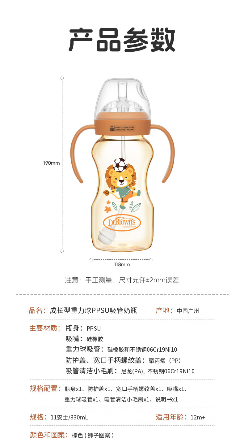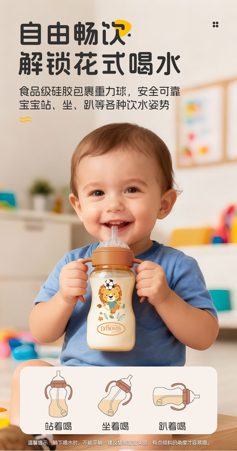 布朗博士吸管奶瓶 婴儿PPSU宽口直饮奶瓶 重力球带手柄 大月龄学饮330mL 【12m+学饮】直饮吸管奶瓶 330mL