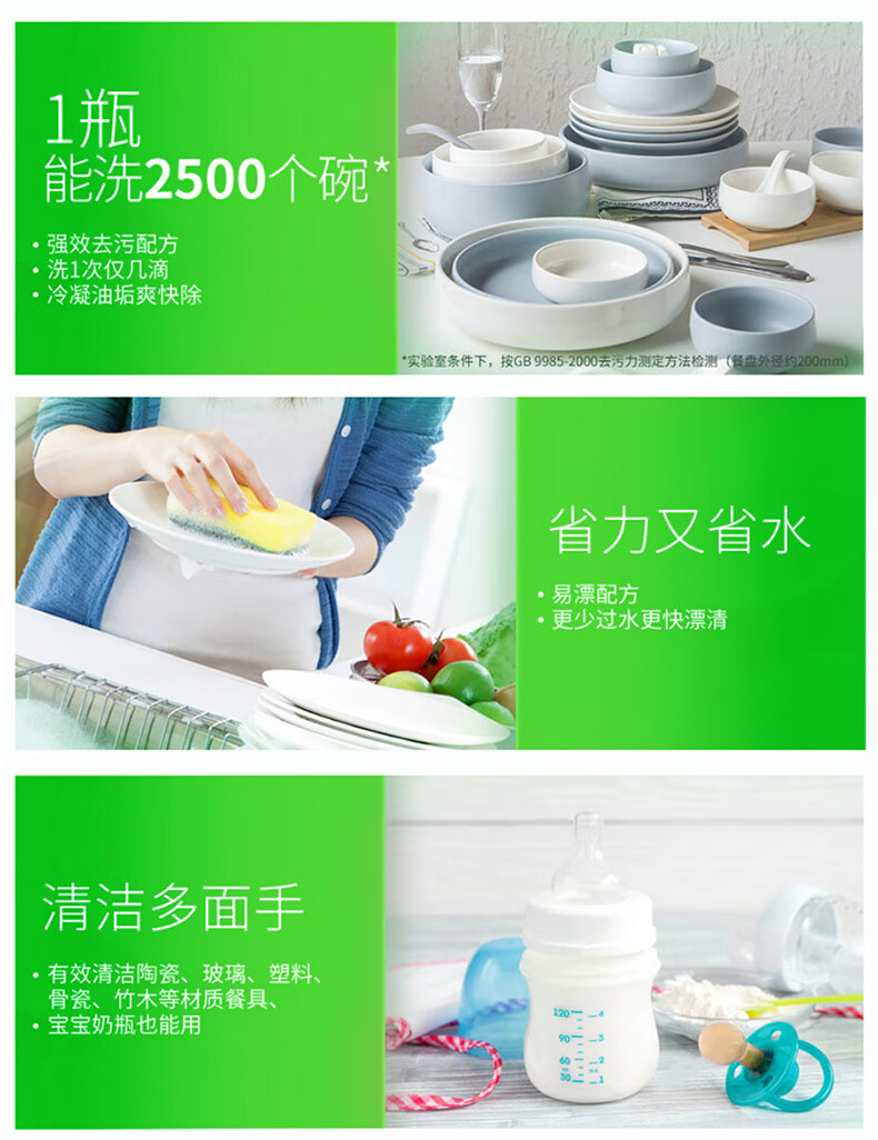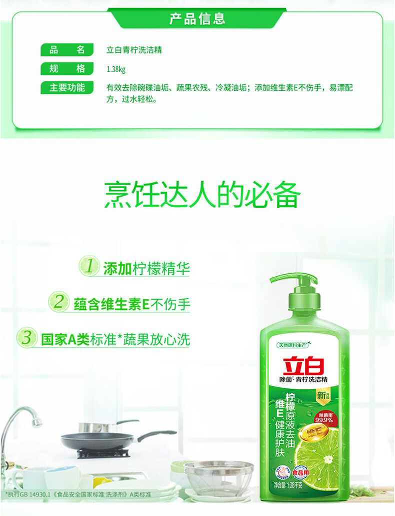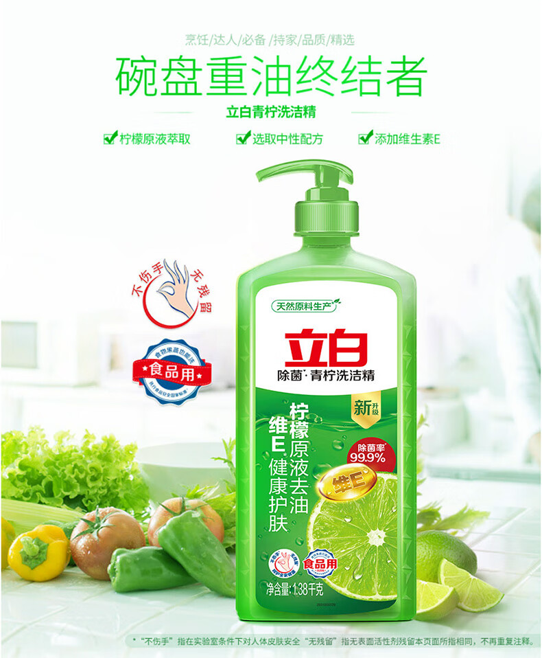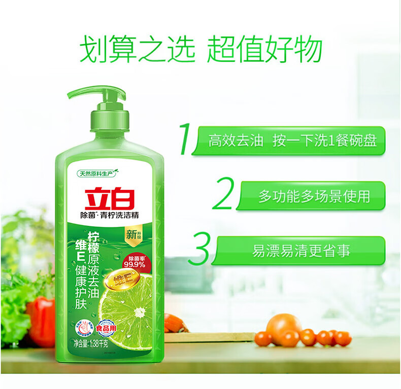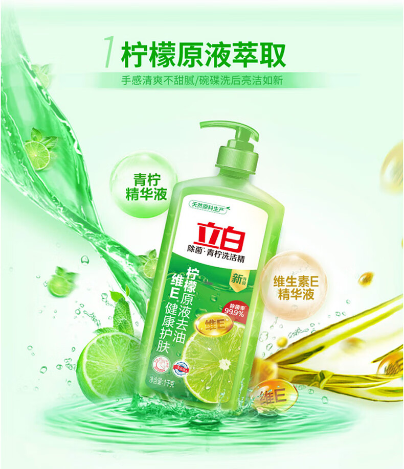 立白青柠洗洁精APG薄荷洗洁精除菌去油不伤手食品用果蔬可洗家用 800g天然青柠洗洁精【2瓶】
