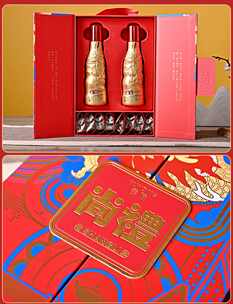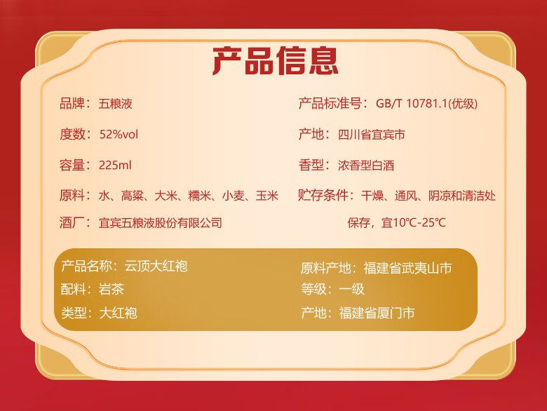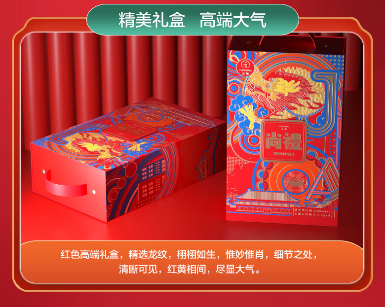 五粮浓香五粮液股份出品 官方授权 52度优级 浓香型白酒 喜福盛世 52度 500mL 2瓶 礼盒装(内含酒具)