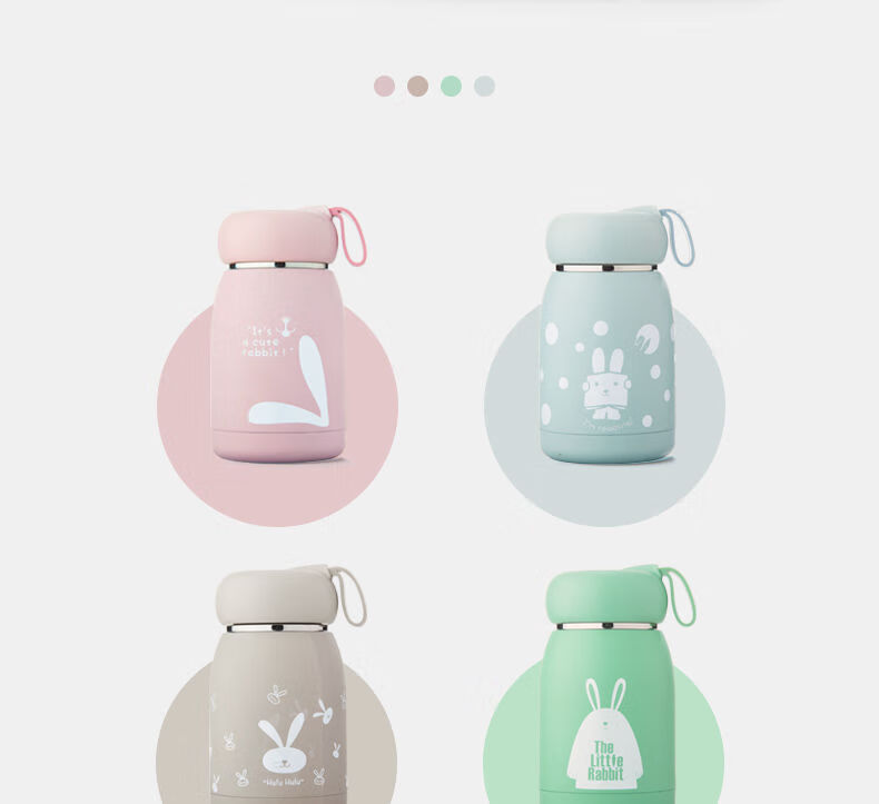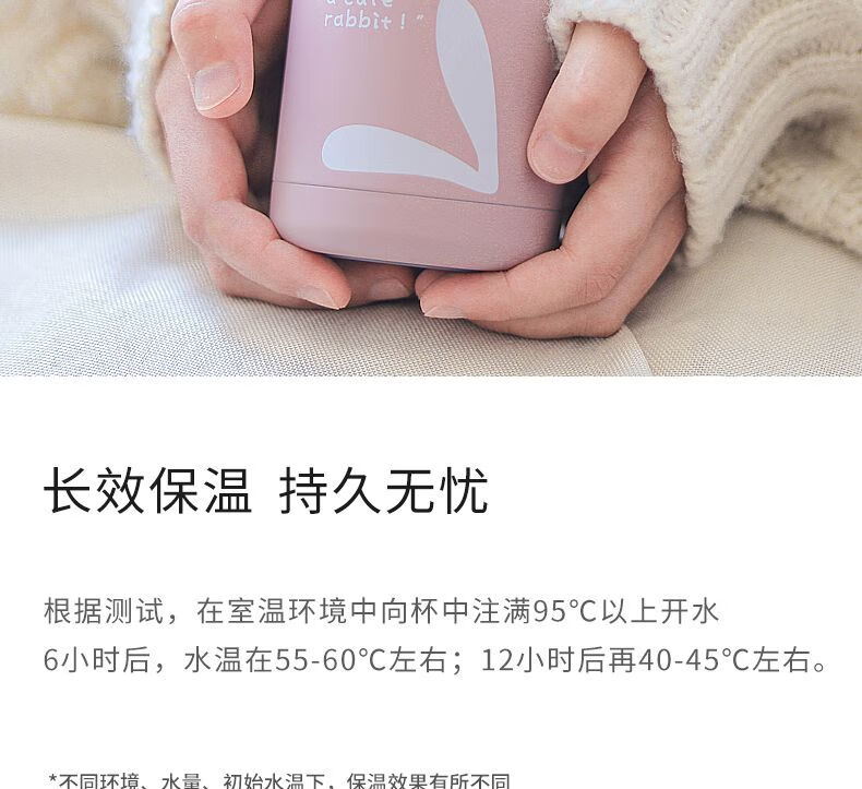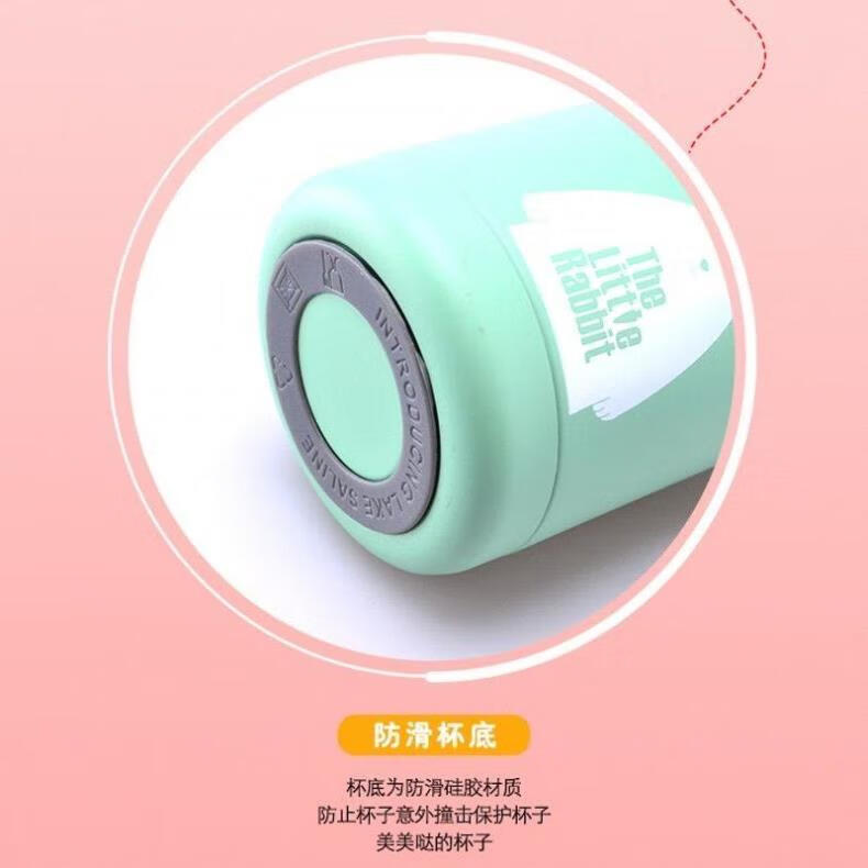 金迷你水杯、防摔杯、萌兔办公茶杯、创意便携杯、防烫保温杯 智能测温(蓝色)320ML