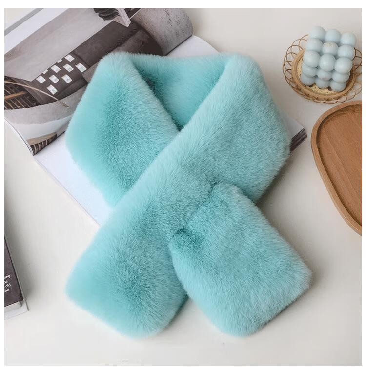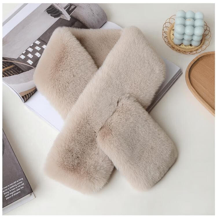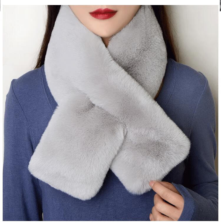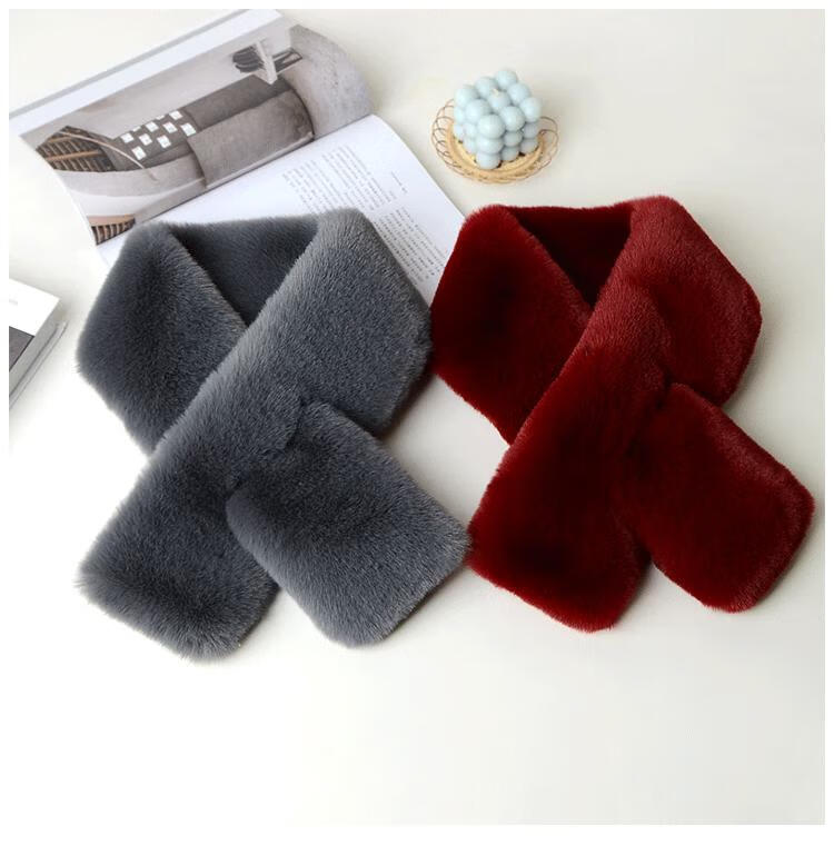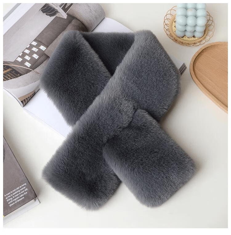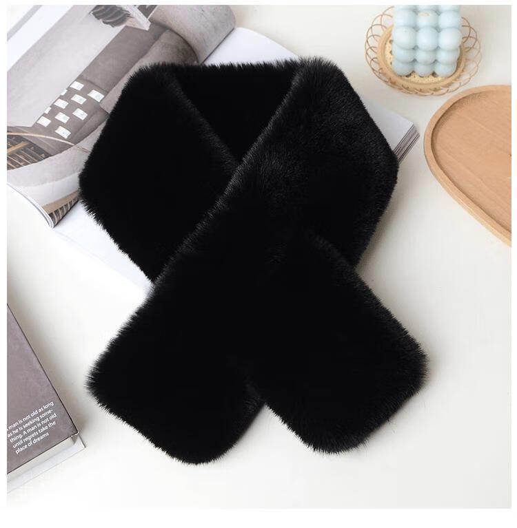 TUTORGOOSE高品质柔软亲肤皮草围巾围脖秋冬季保暖加厚韩版仿兔毛领巾礼物 黑色 双面加绒加厚围巾