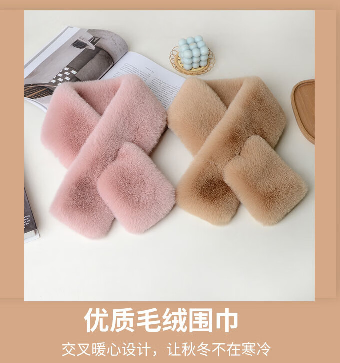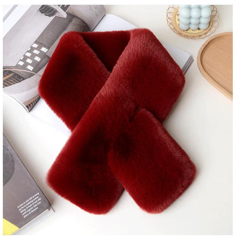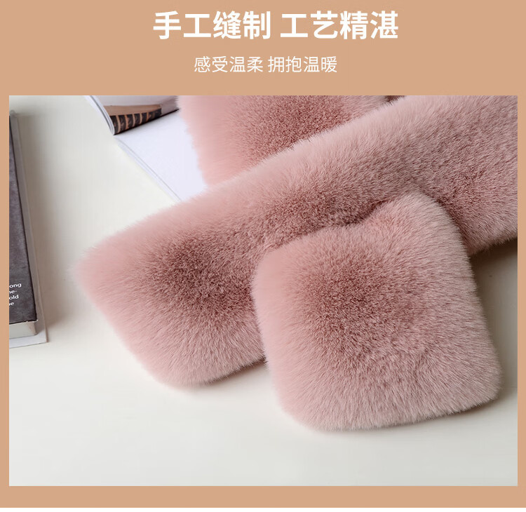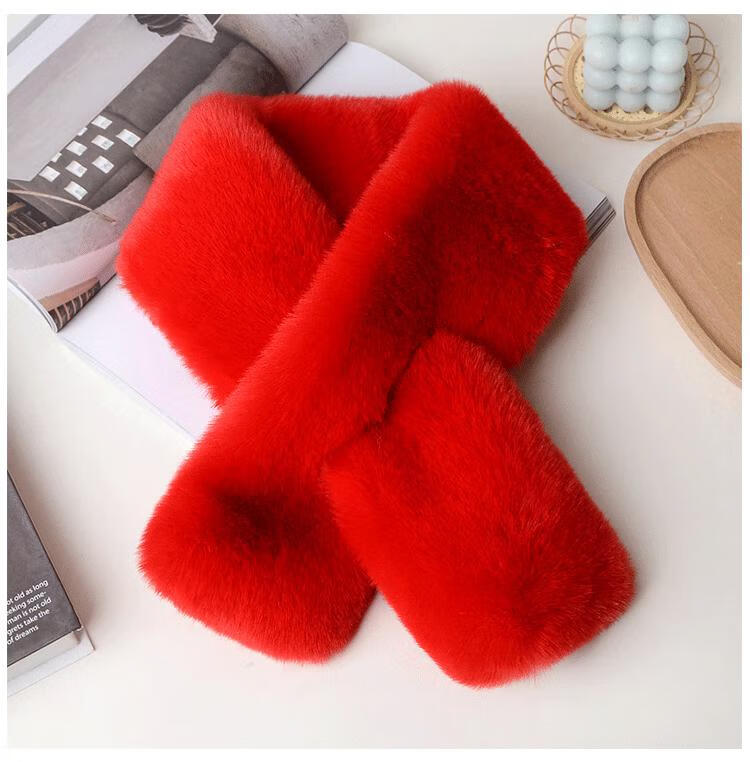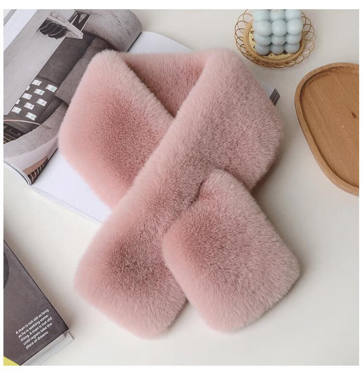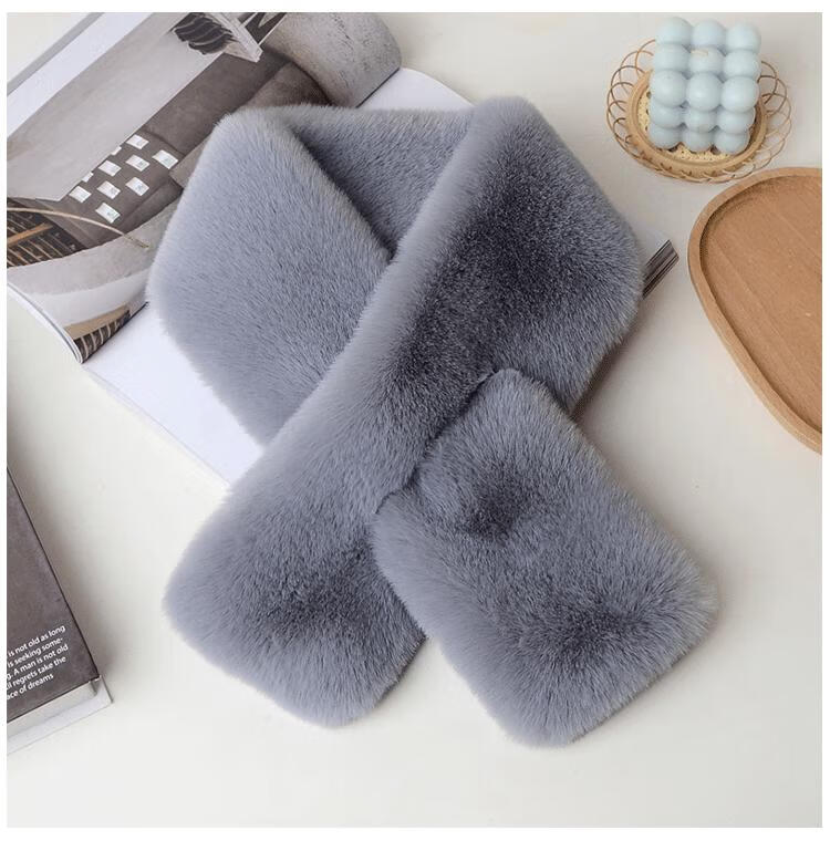 TUTORGOOSE高品质柔软亲肤皮草围巾围脖秋冬季保暖加厚韩版仿兔毛领巾礼物 黑色 双面加绒加厚围巾