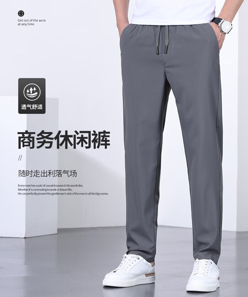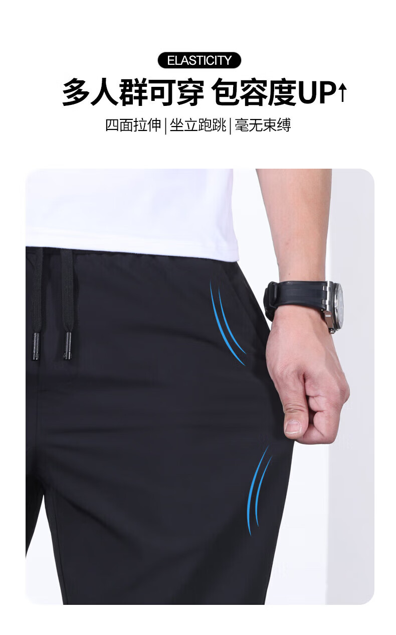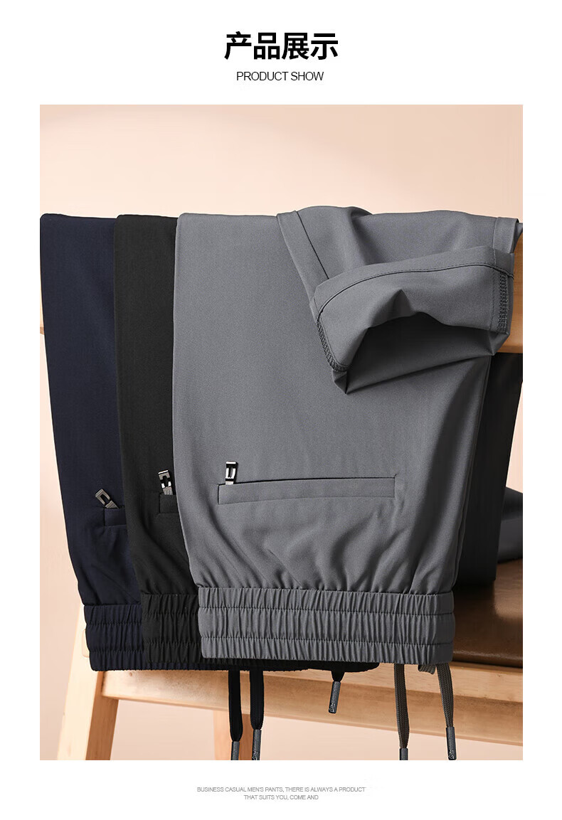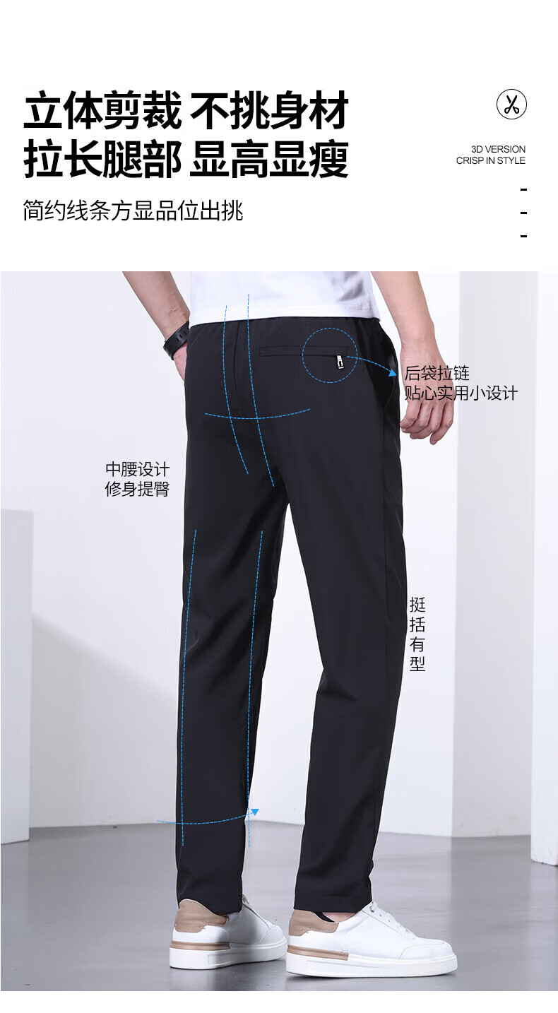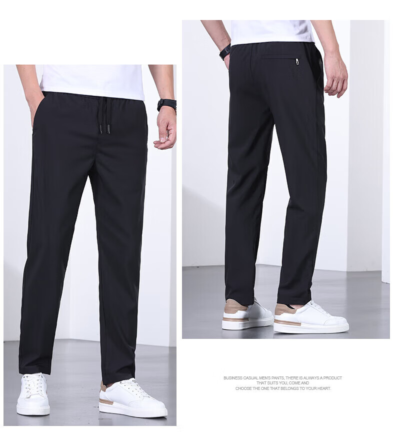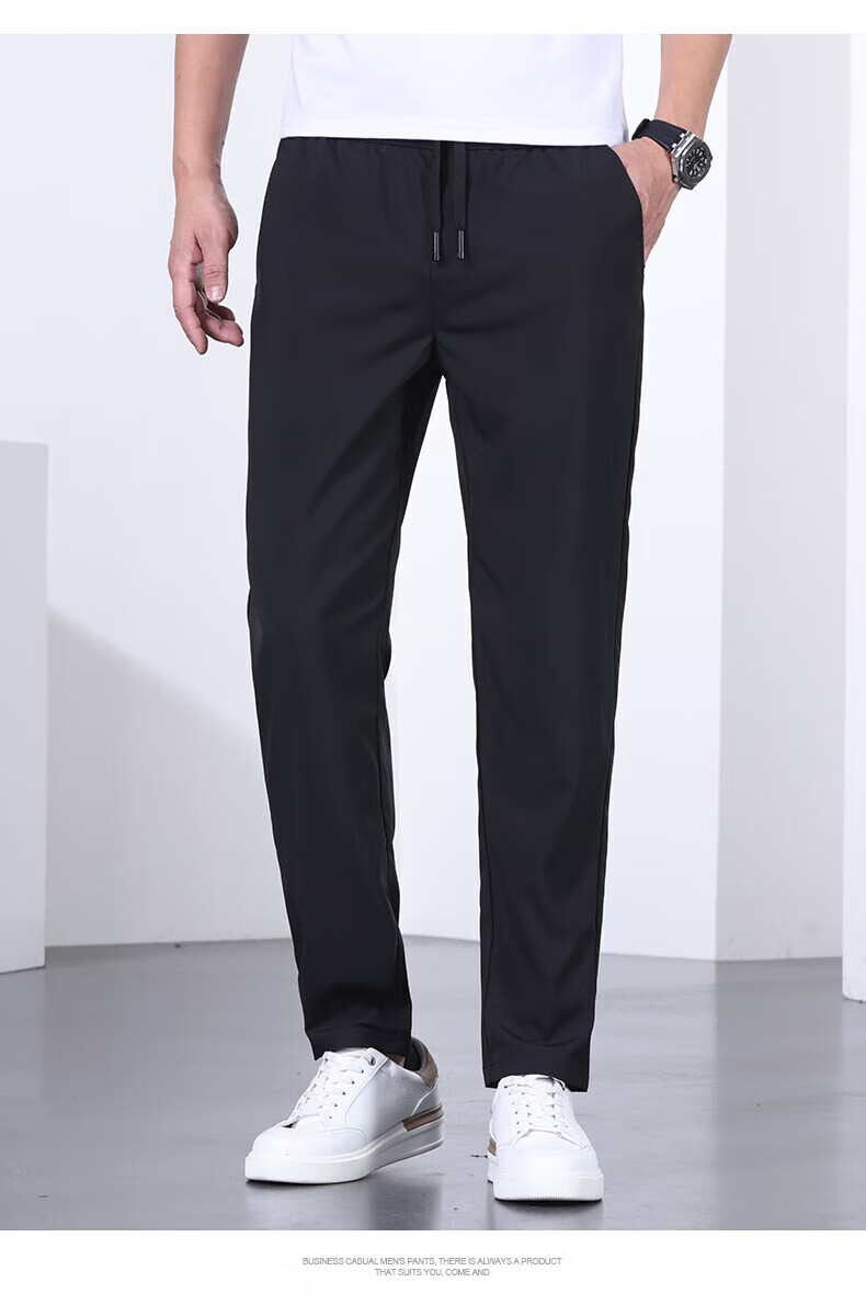 雅鹿休闲裤男士运动直筒休闲长裤子2026春夏季新款男装宽松百搭下装 黑色 XL (180) 【推荐130-150斤】
