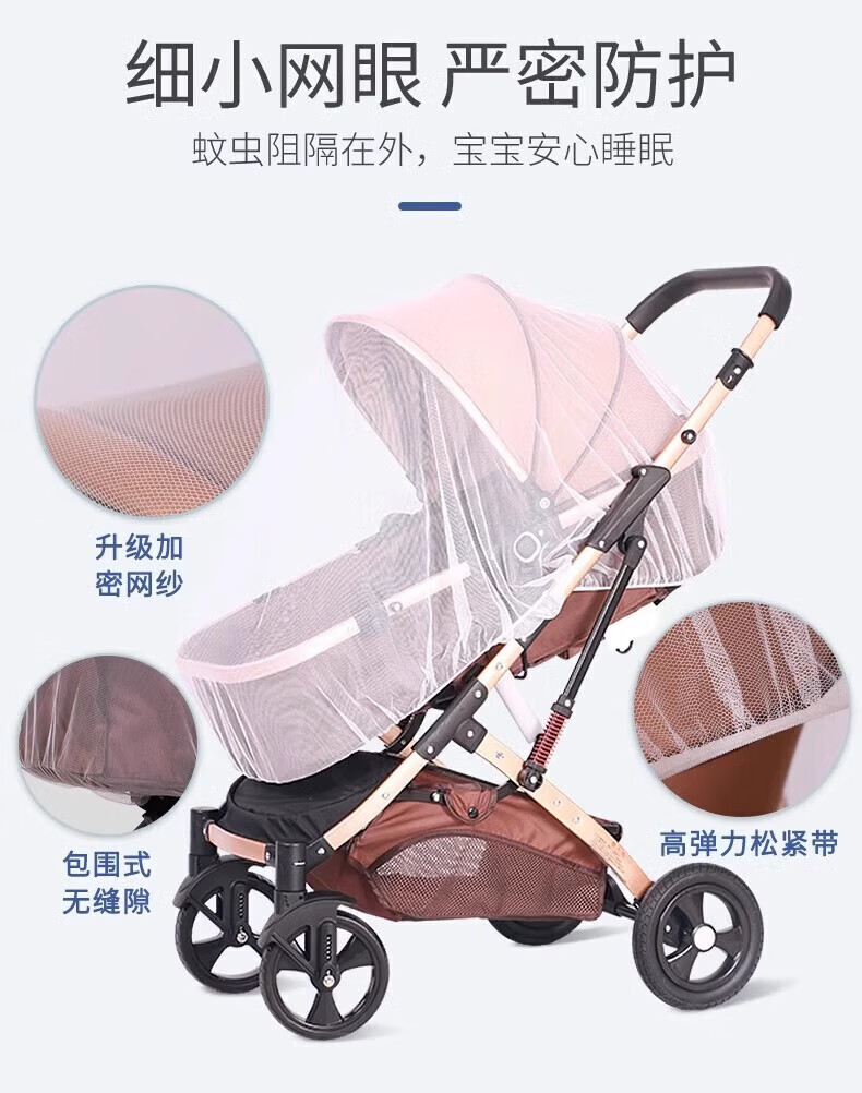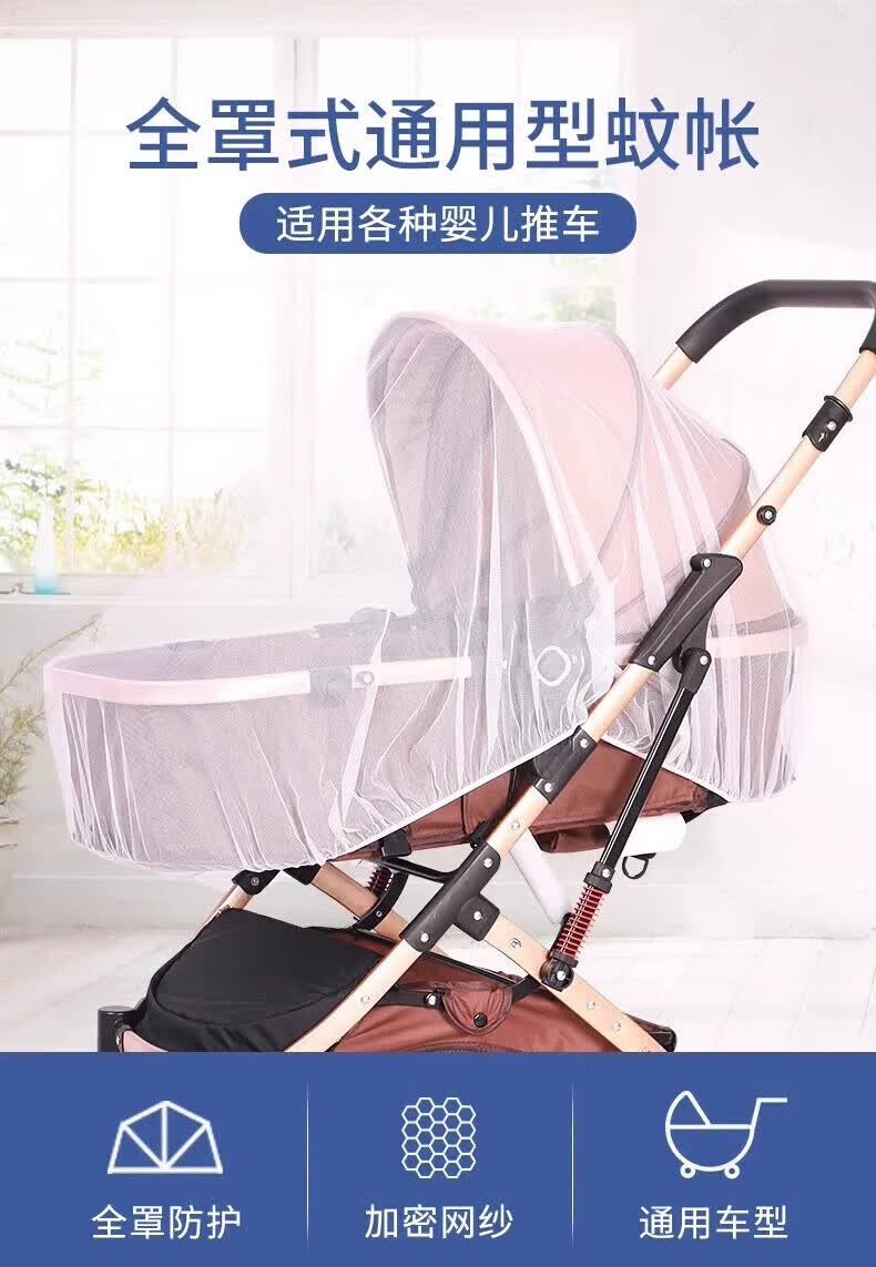 【甄选厂家】车蚊帐全罩式通用宝宝推车罩儿童婴幼儿伞车加大 白色 【婴儿车专用】
