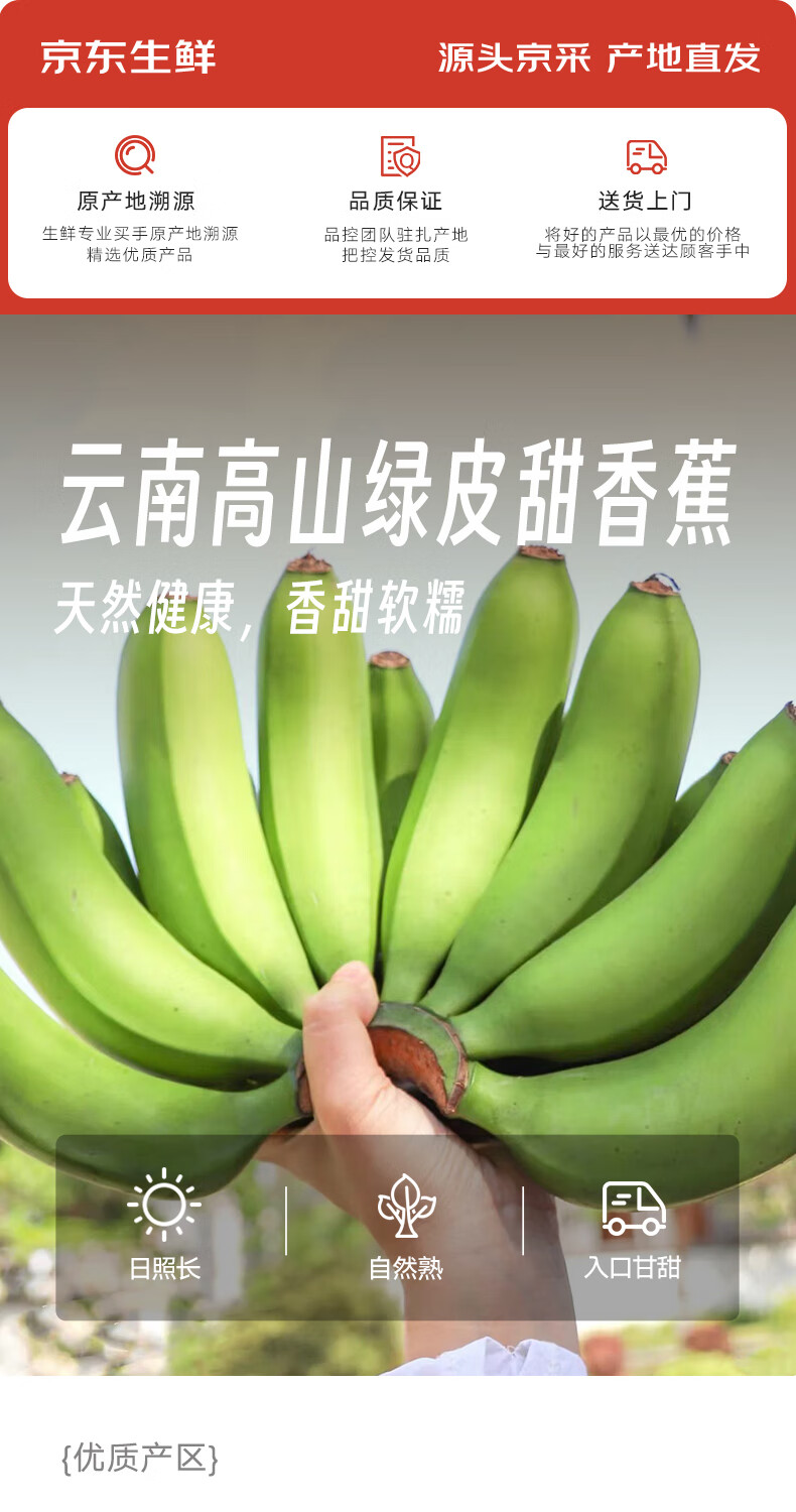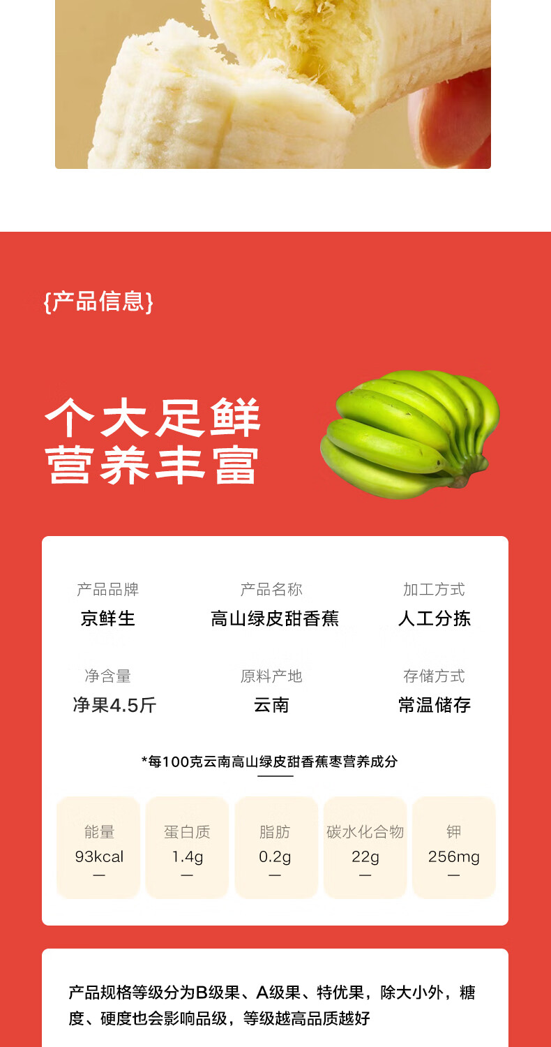 京鲜生 云南高山香蕉净重3斤 单果100g 源头直发 包邮