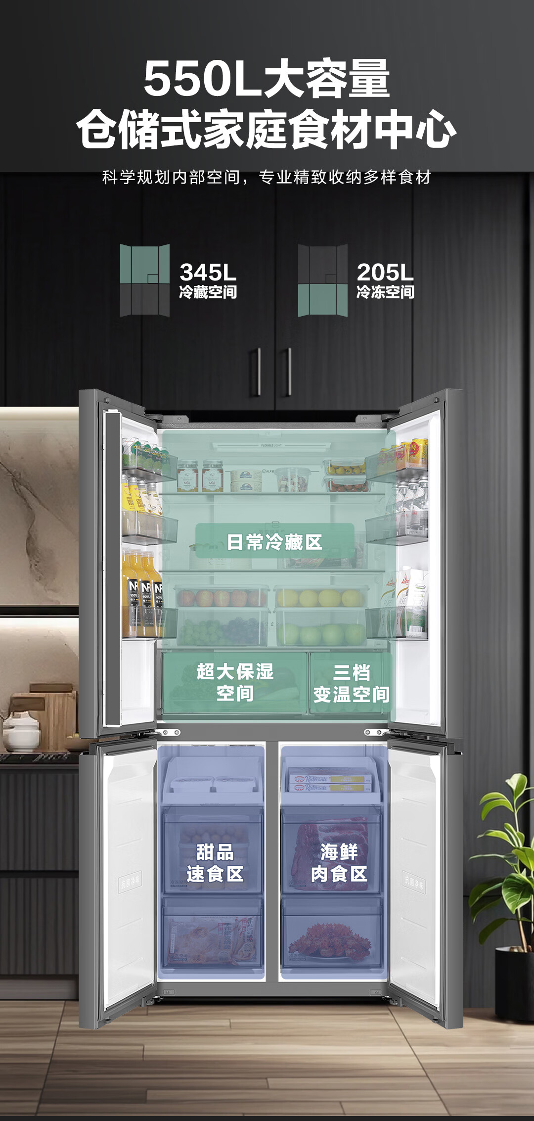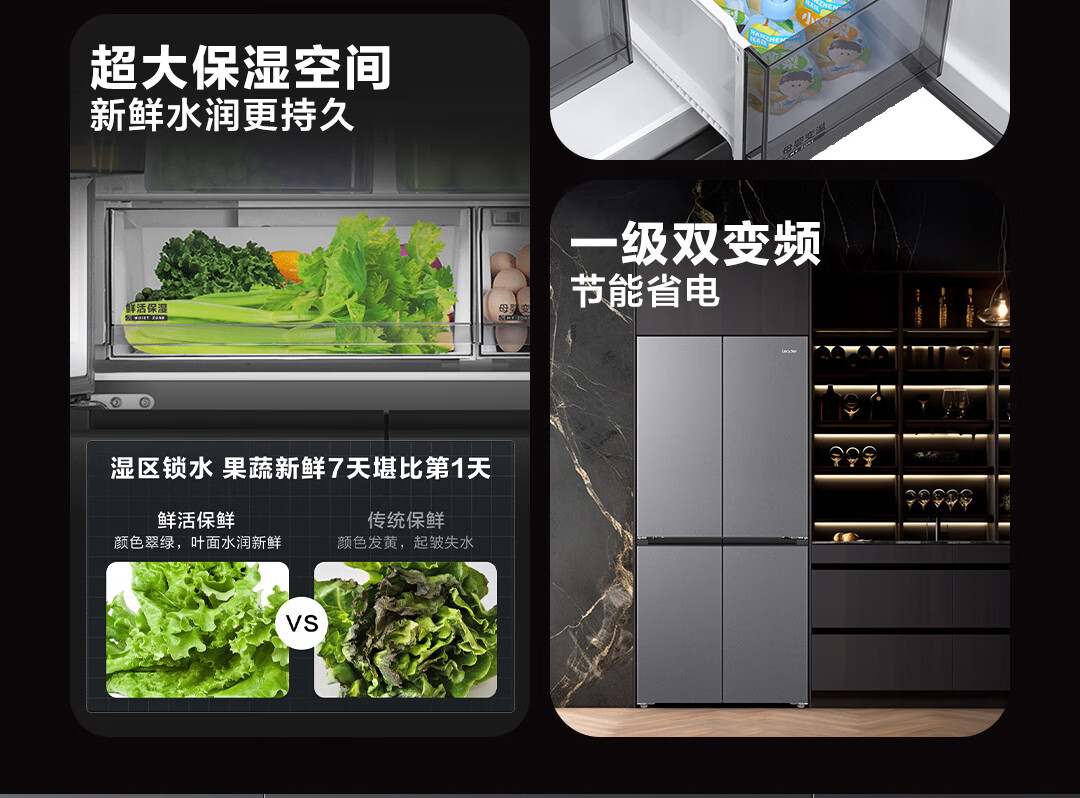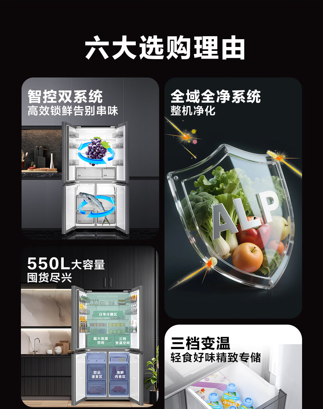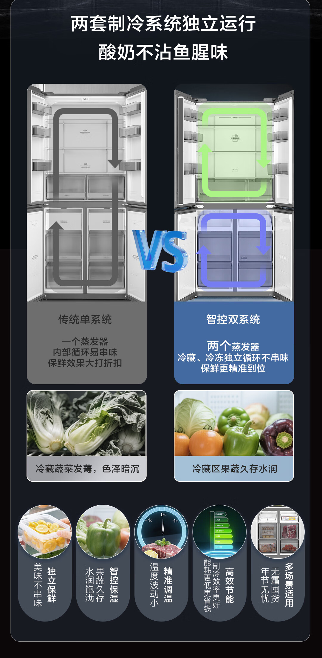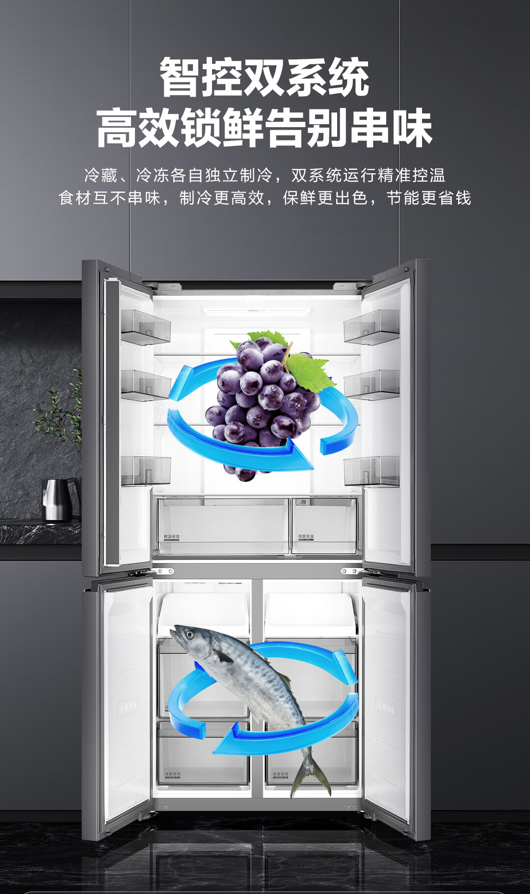海尔统帅冰箱2025年新款575双系统双循环四开门十字对双开门大容量家用电冰箱变频一级能效国家补贴 575丨双系统不串味丨ALP超净系统丨母婴三档变温