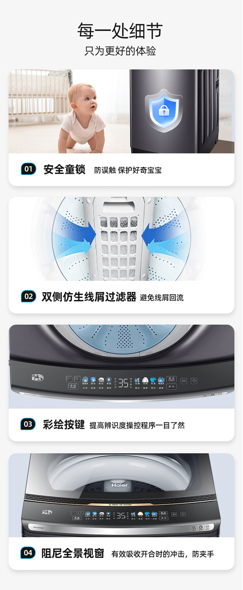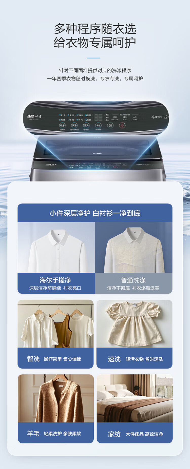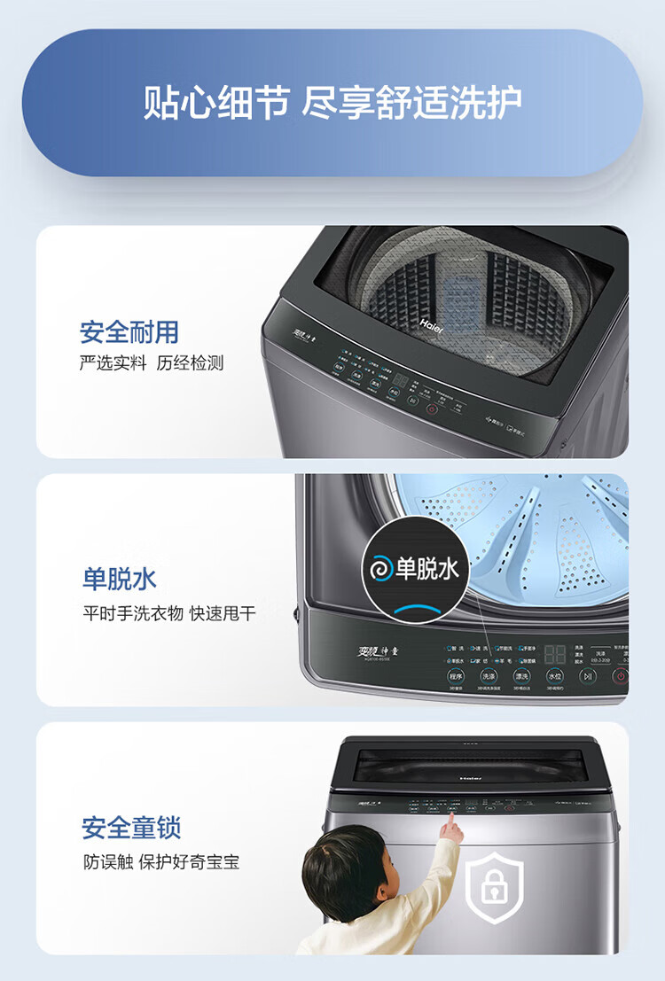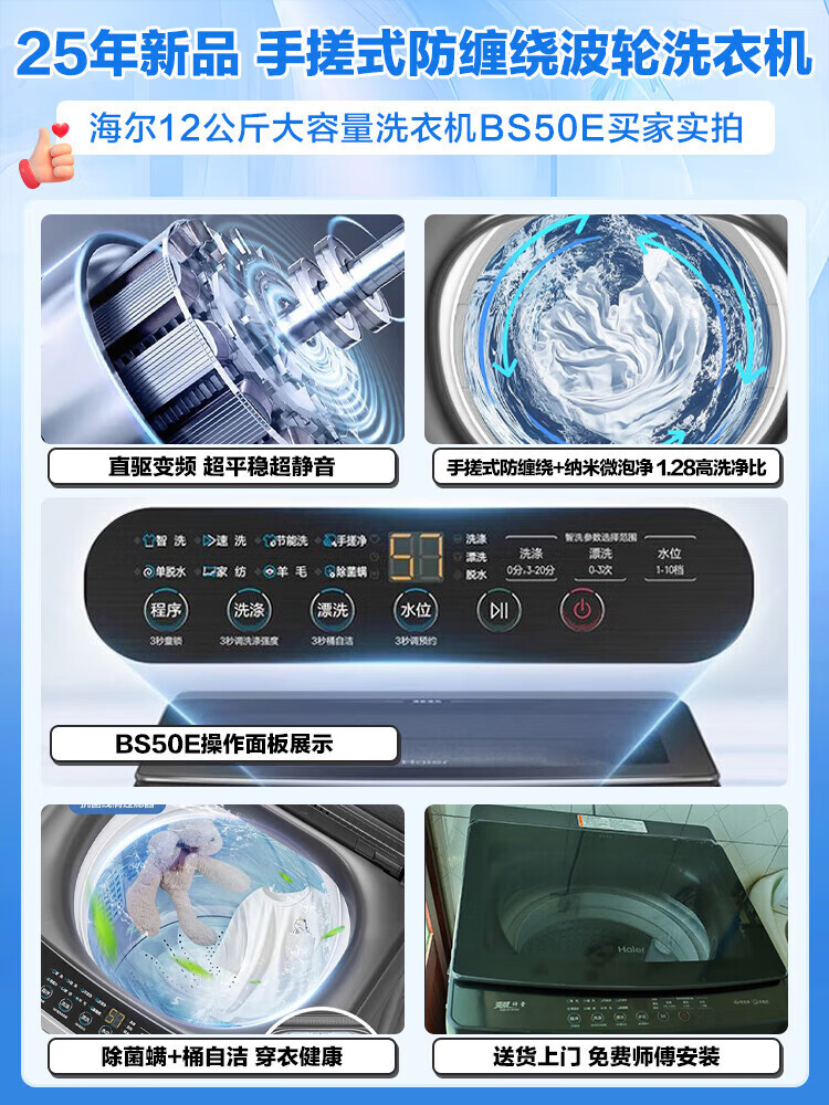 海尔(Haier)波轮洗衣机双动力防缠绕直驱变频10公斤全自动家用大容量杀菌新风一级能效以旧换新补贴云熙358S 【门店同款BZ358S】高颜彩屏+羽绒洗+智慧洗