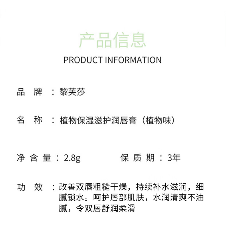 黎芙莎水润护唇膏秋冬润唇膏保湿滋润男女士滋润补水防干裂死皮 植物唇膏2.8g 3支*
