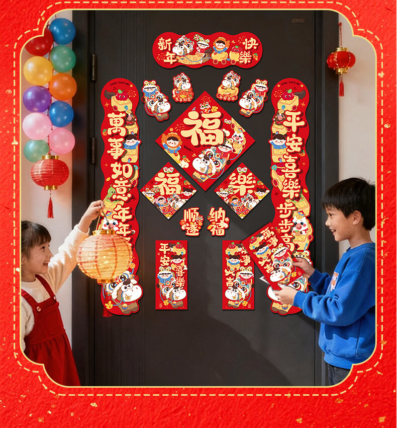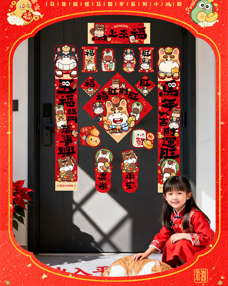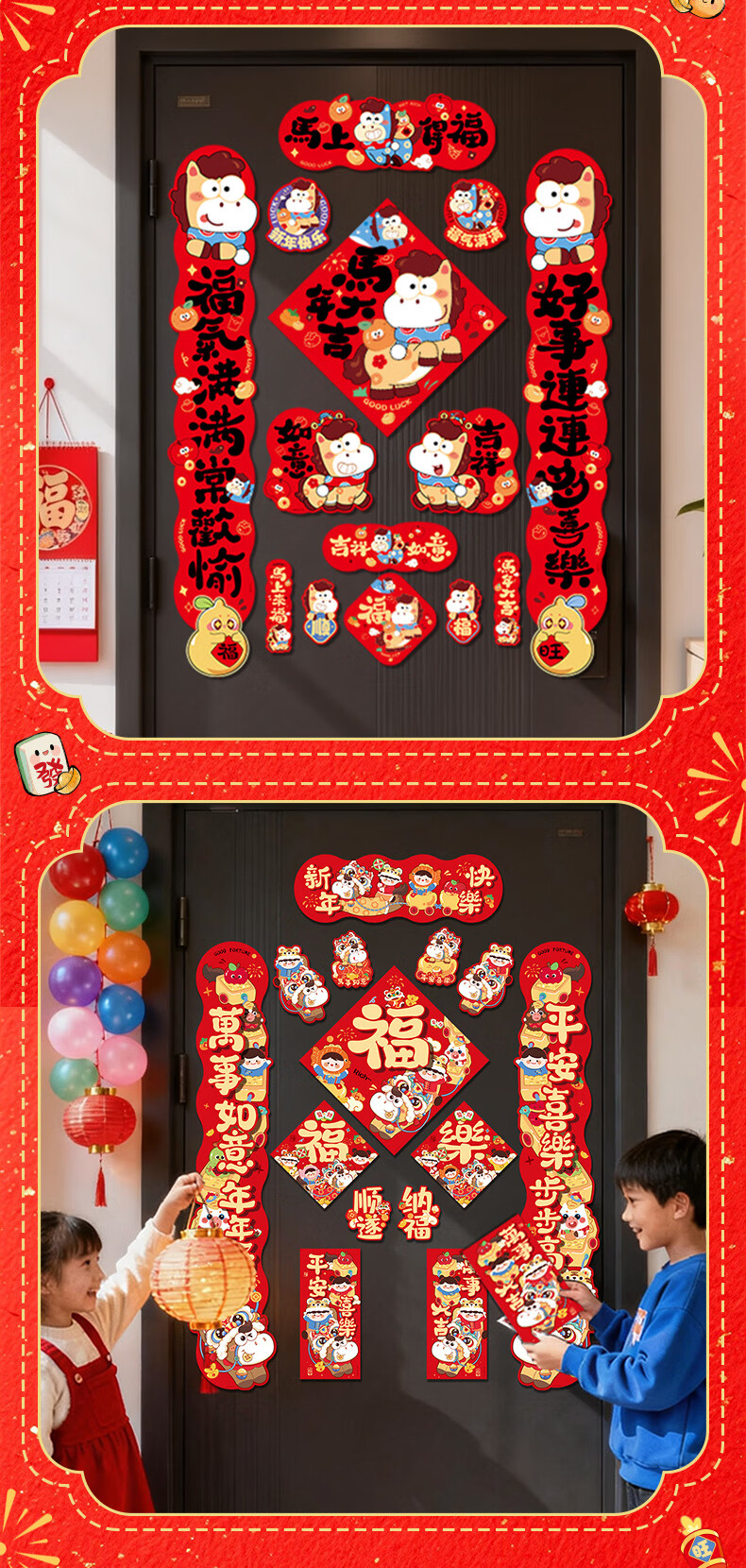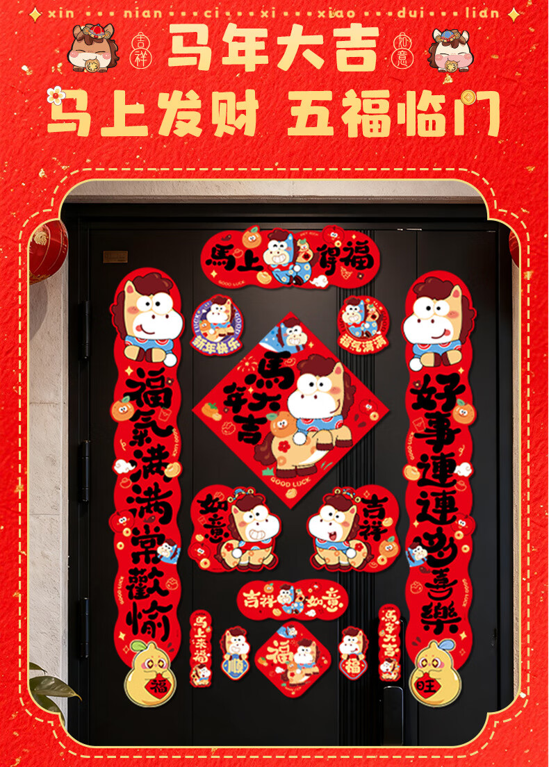 溪川暖2026新款马年磁吸对联入户大门贴福字春节过年布置春联新年装饰品 磁吸对联大礼包【14件套】新年快乐