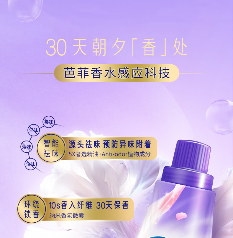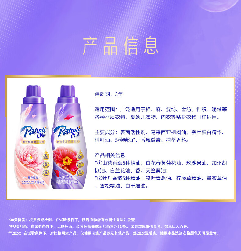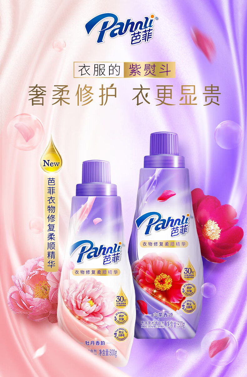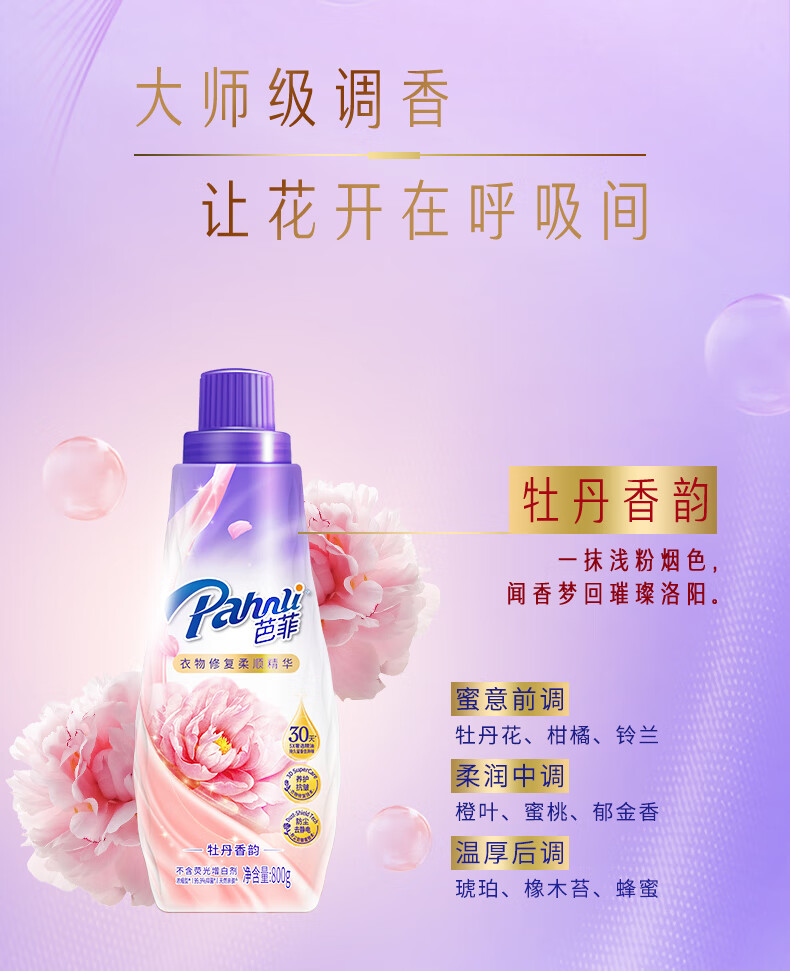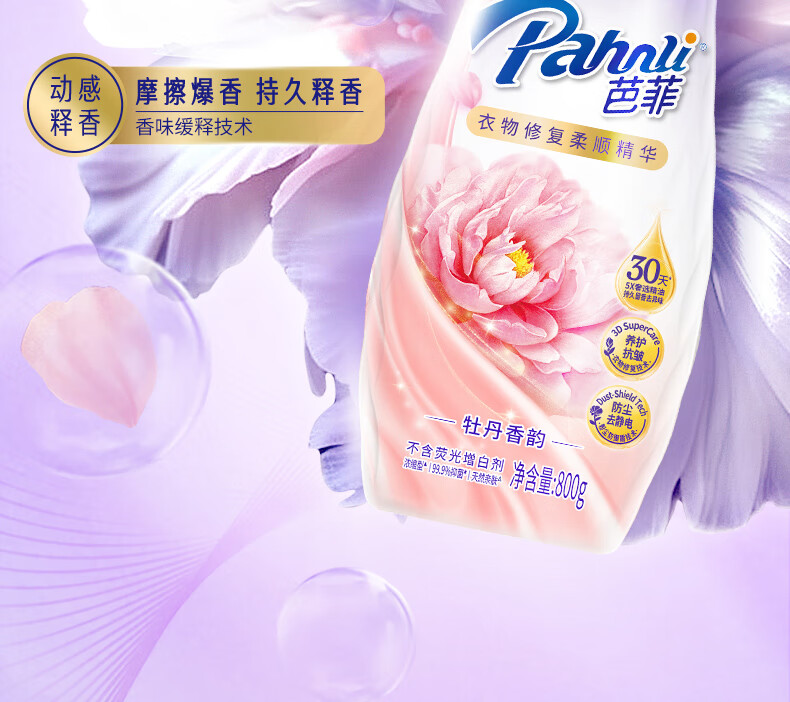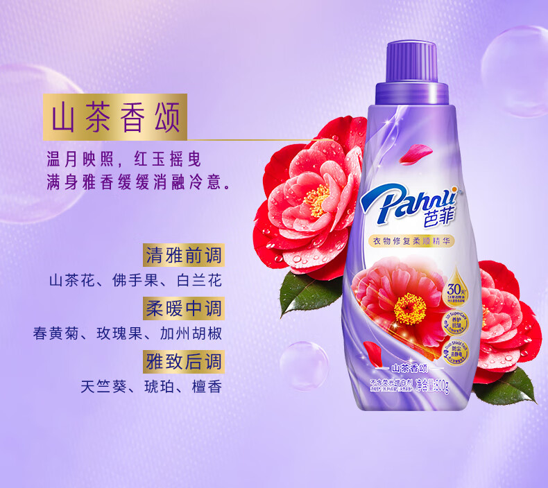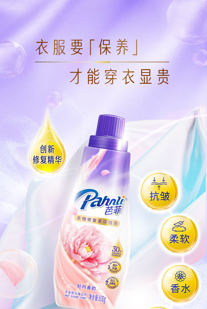 芭菲衣物修护精华柔顺剂山茶香颂800g*1瓶 留香防静电抗皱抑菌99.9%