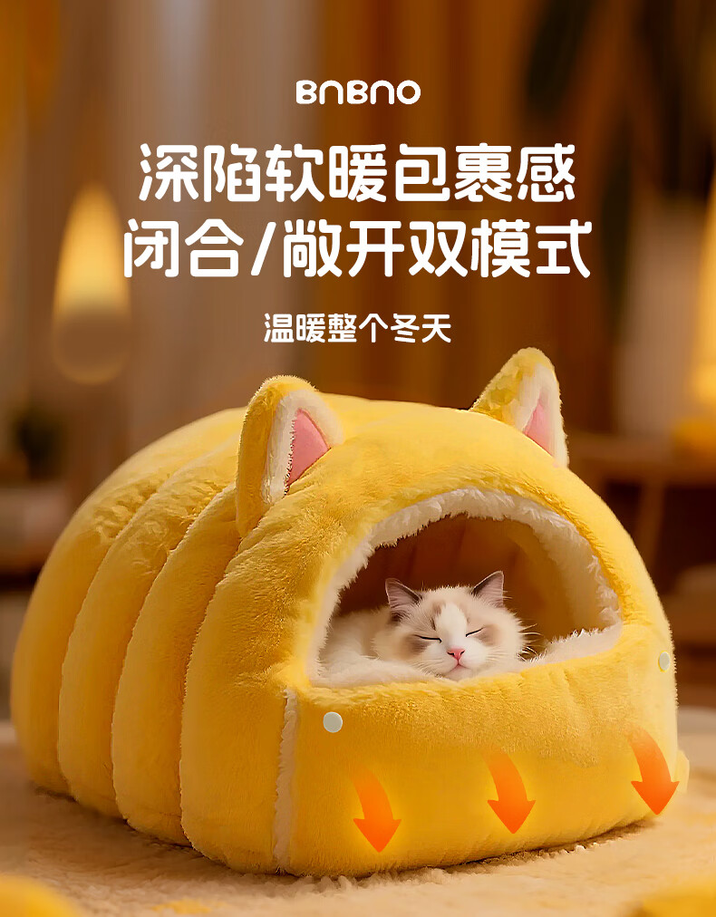 BNBNO猫窝冬日加厚封闭式安全感猫咪睡窝猫床冬天冬季保暖新型猫屋宠物