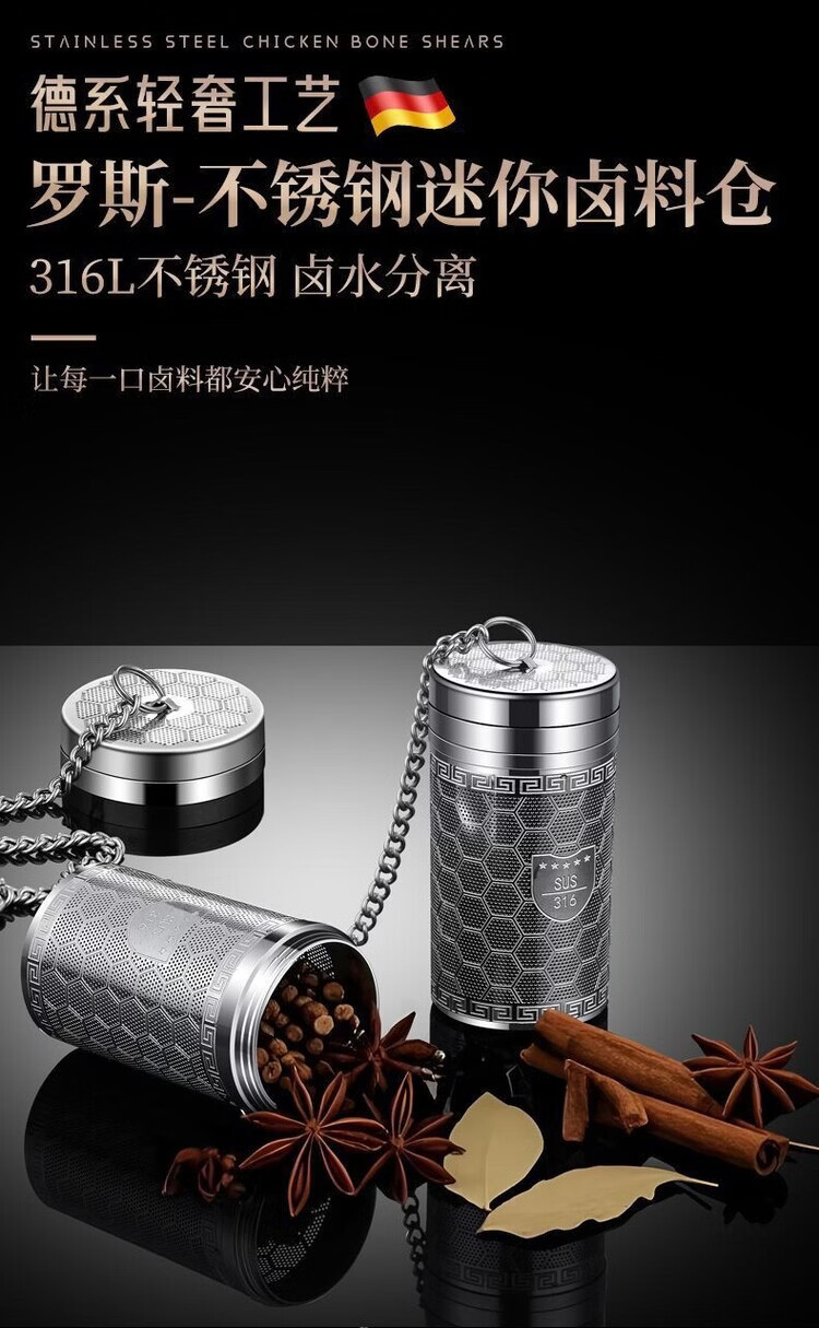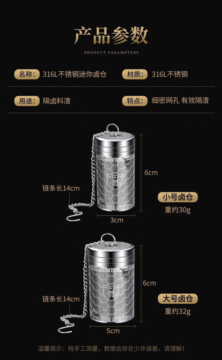 咏夏316不锈钢卤料笼小号厨房炖肉卤料篮家用香料隔渣滤网超细卤料仓 316小号柱形调味仓