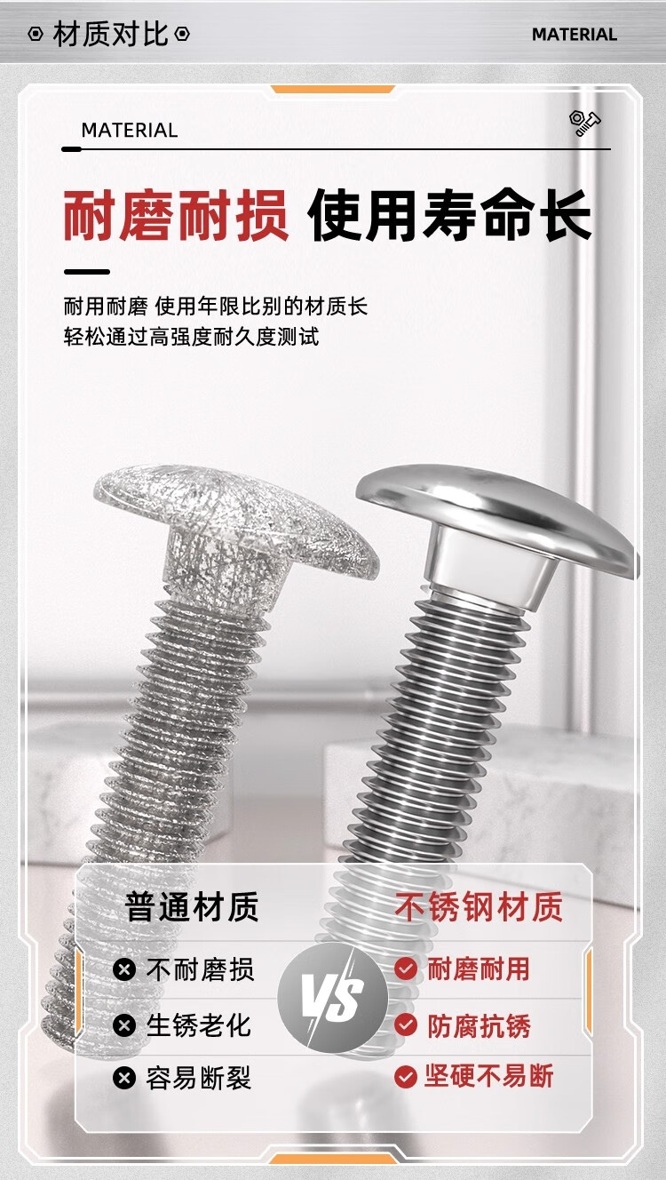 天卓五金201/304不锈钢小半圆头方颈马车螺栓扁头圆头大螺丝钉货架5M6-M12 -201不锈钢价格更实惠-