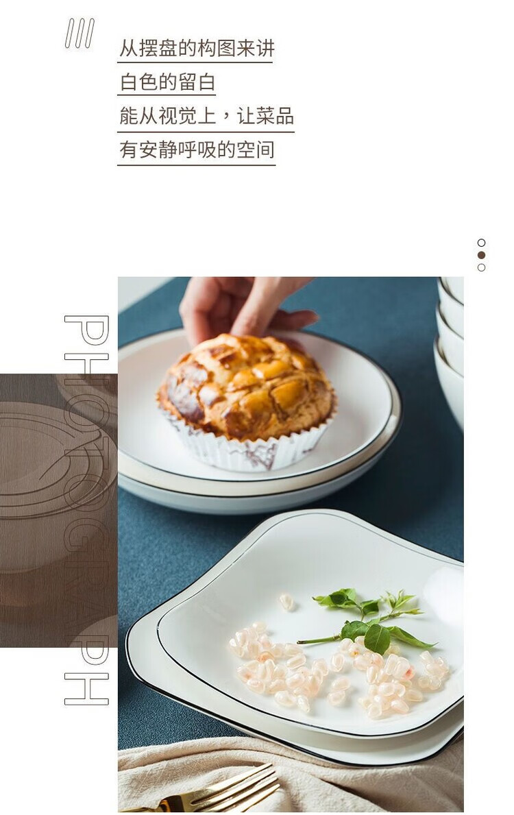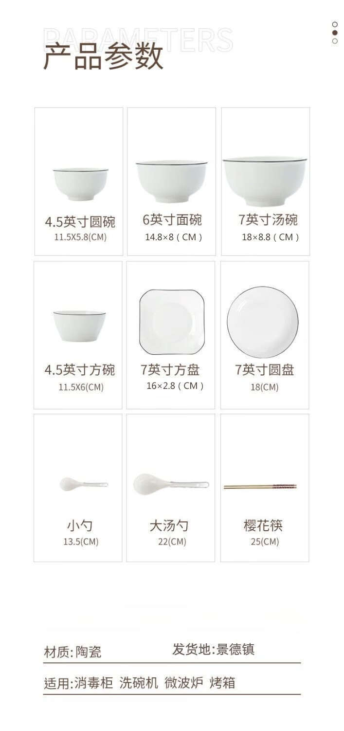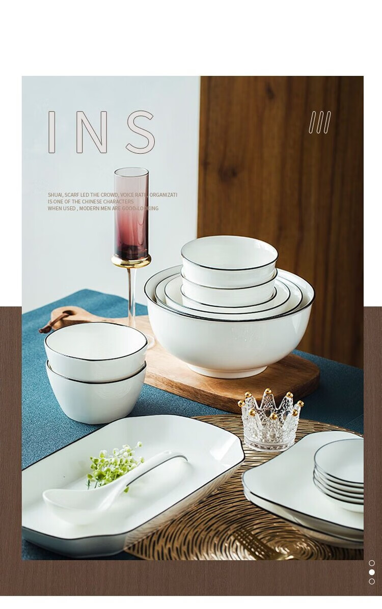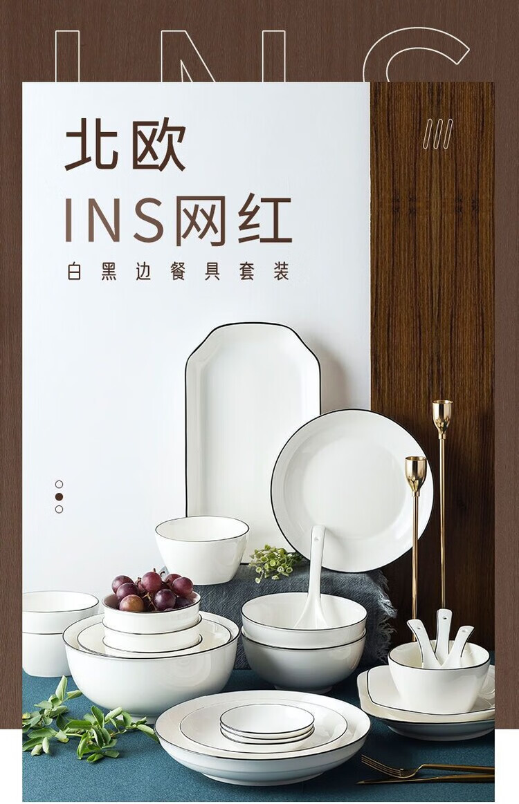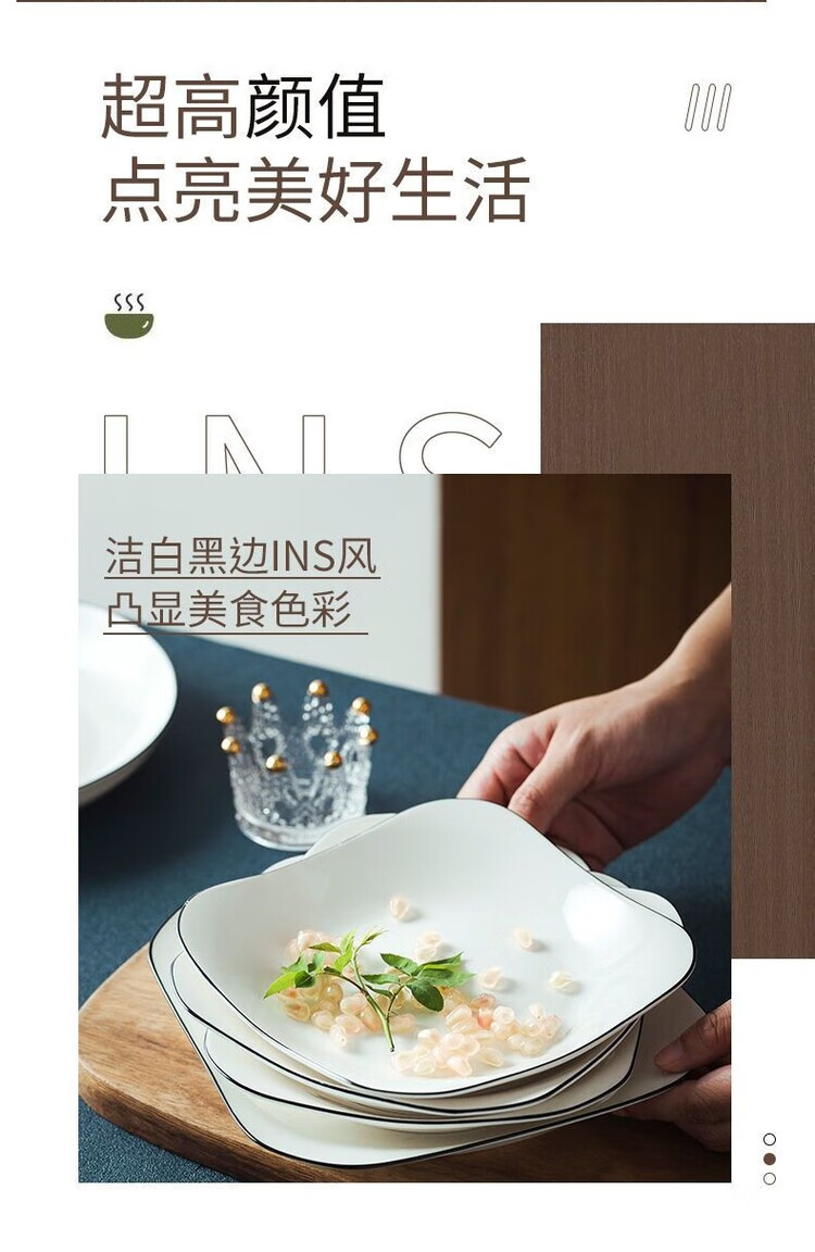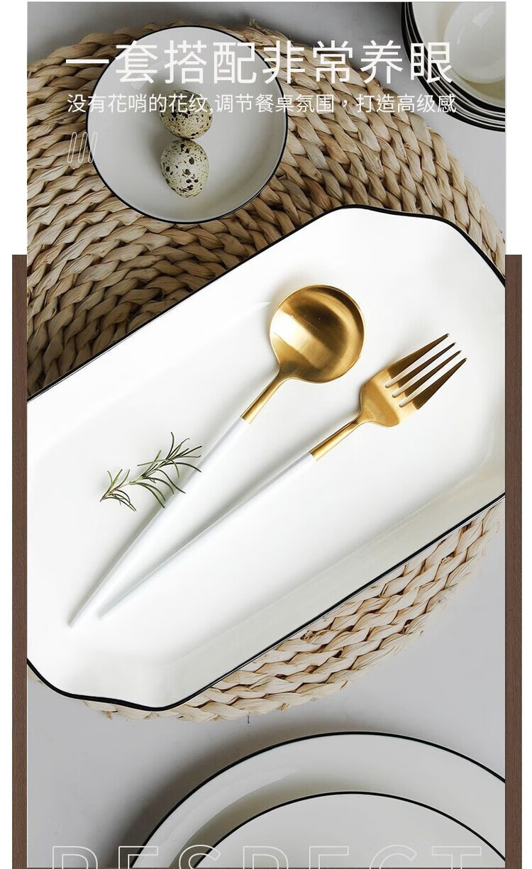 简漾黑线餐具套装碗盘套装陶瓷家饭碗家用碗出租屋全套现代简约厨房碗 4英寸饭碗1个