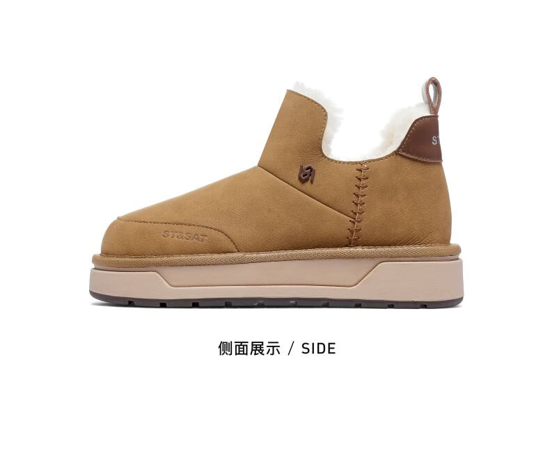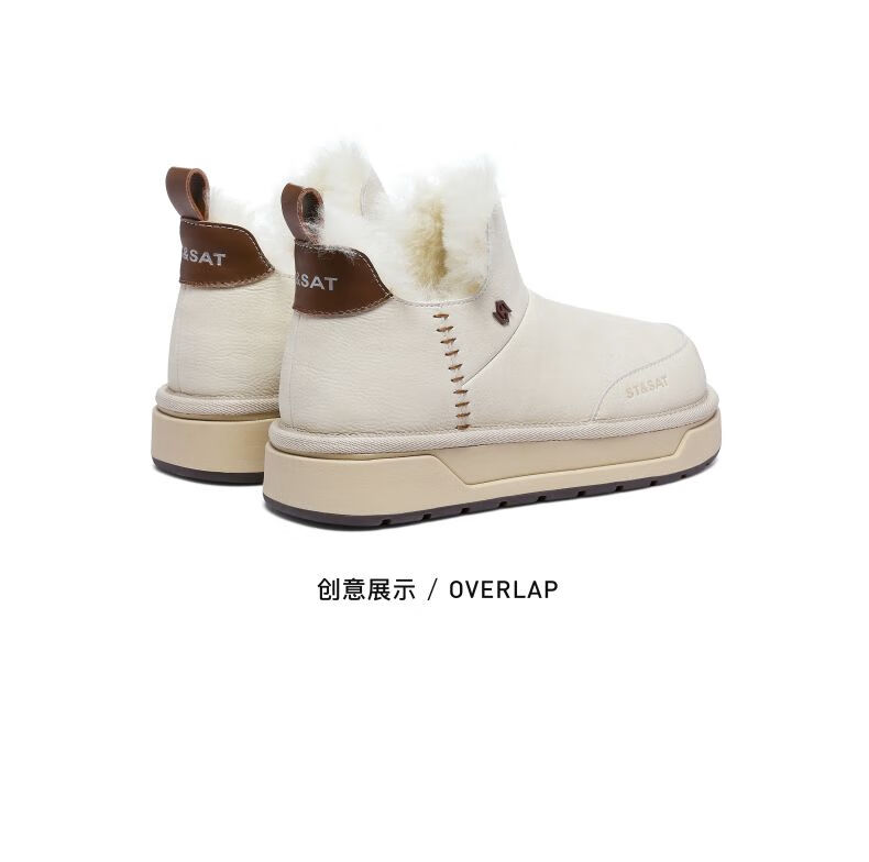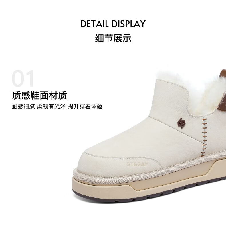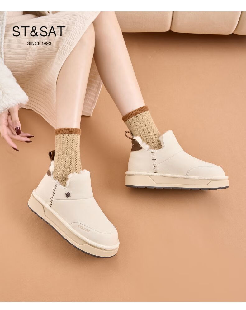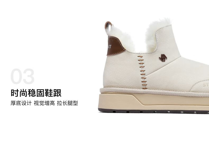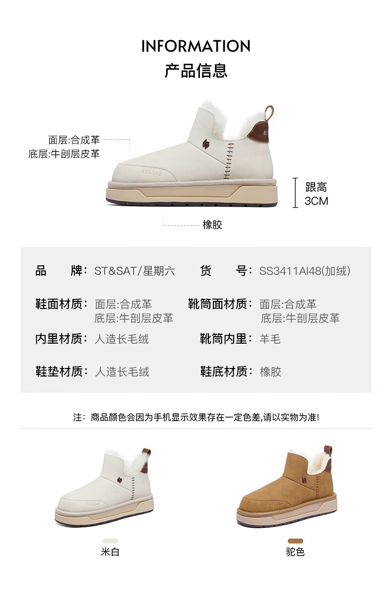 星期六厚底增高雪地靴女款冬季2025新款防水防滑面包鞋加绒加厚保暖棉鞋 米白色 【加绒保暖】跟高3cm 35