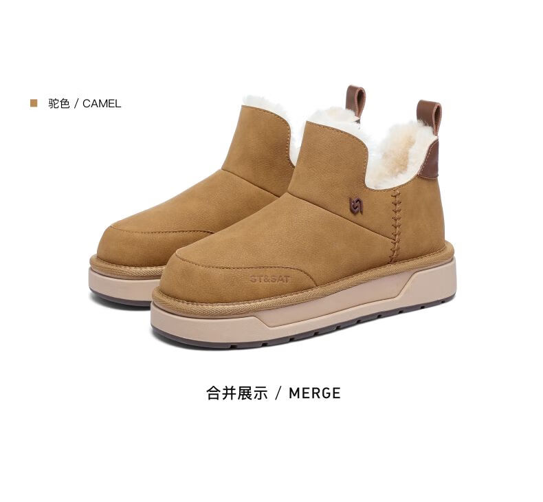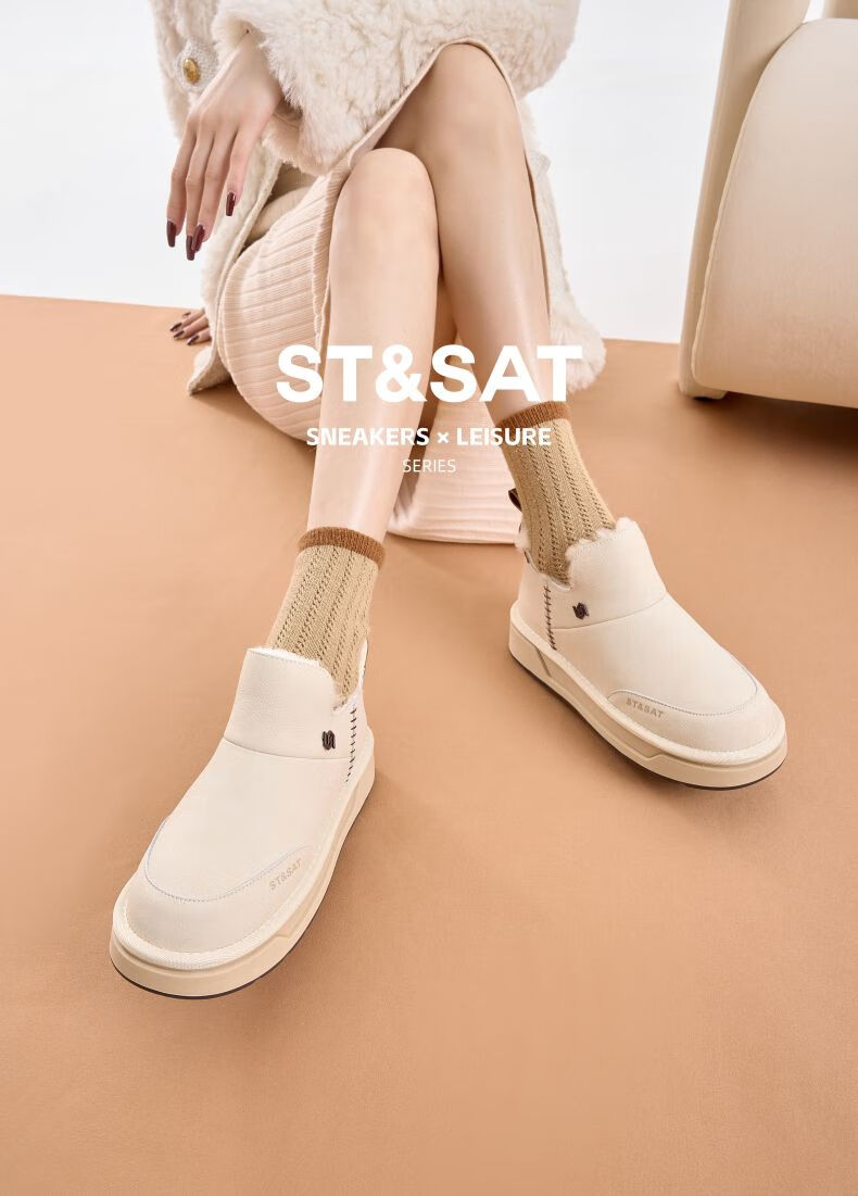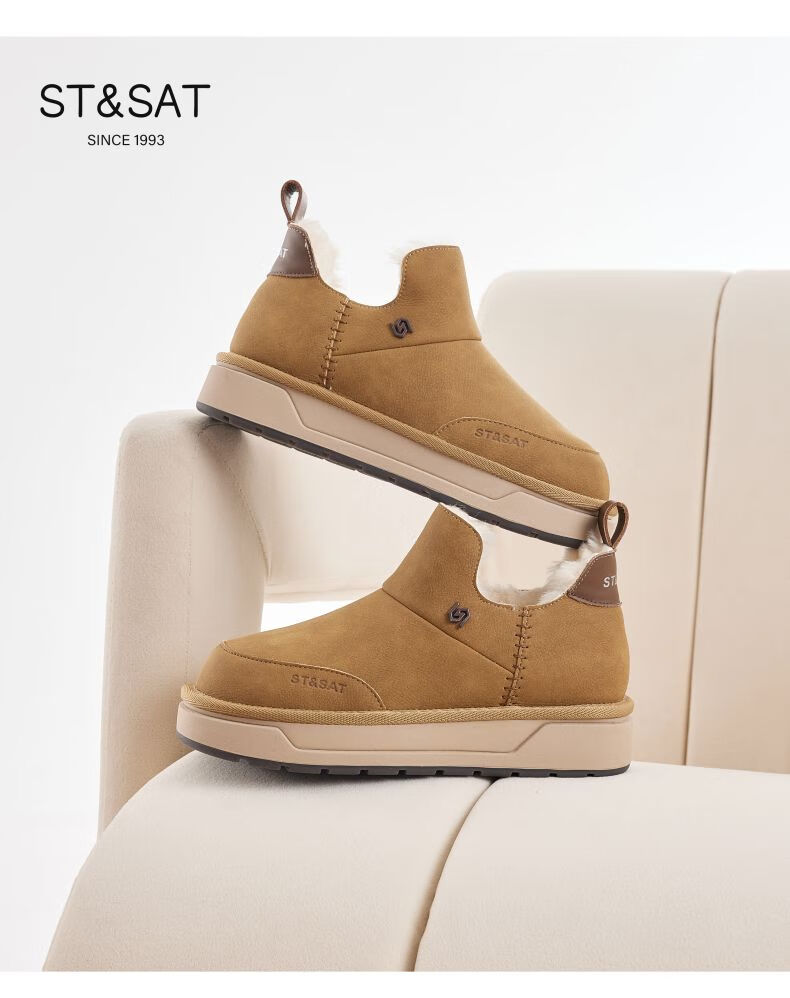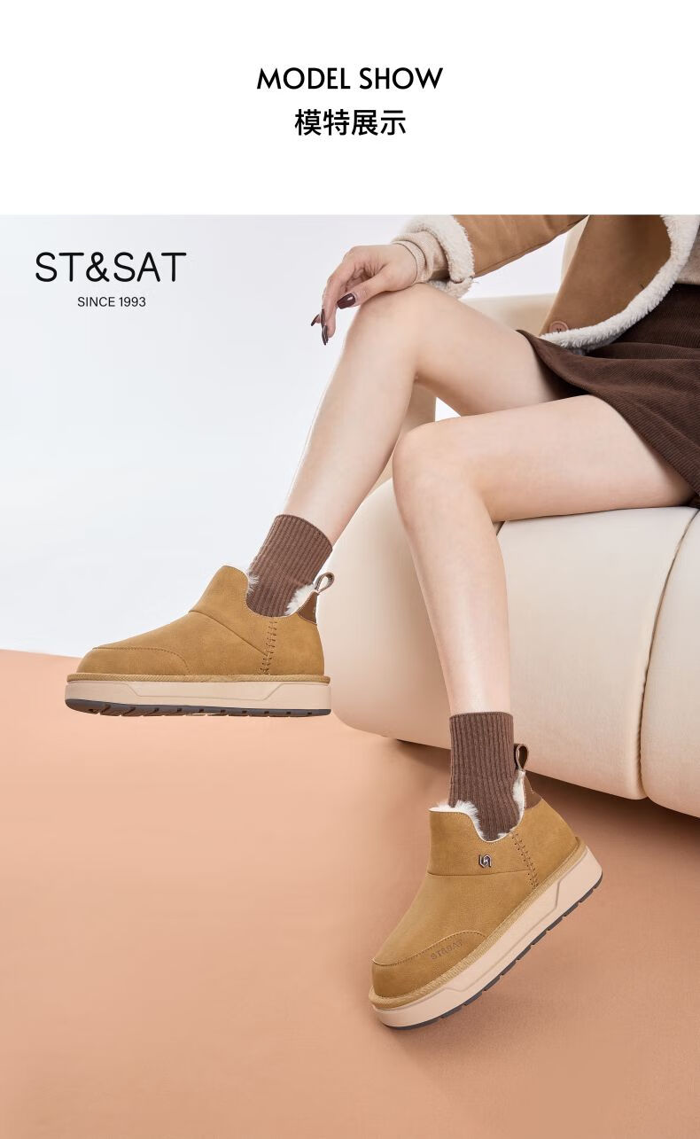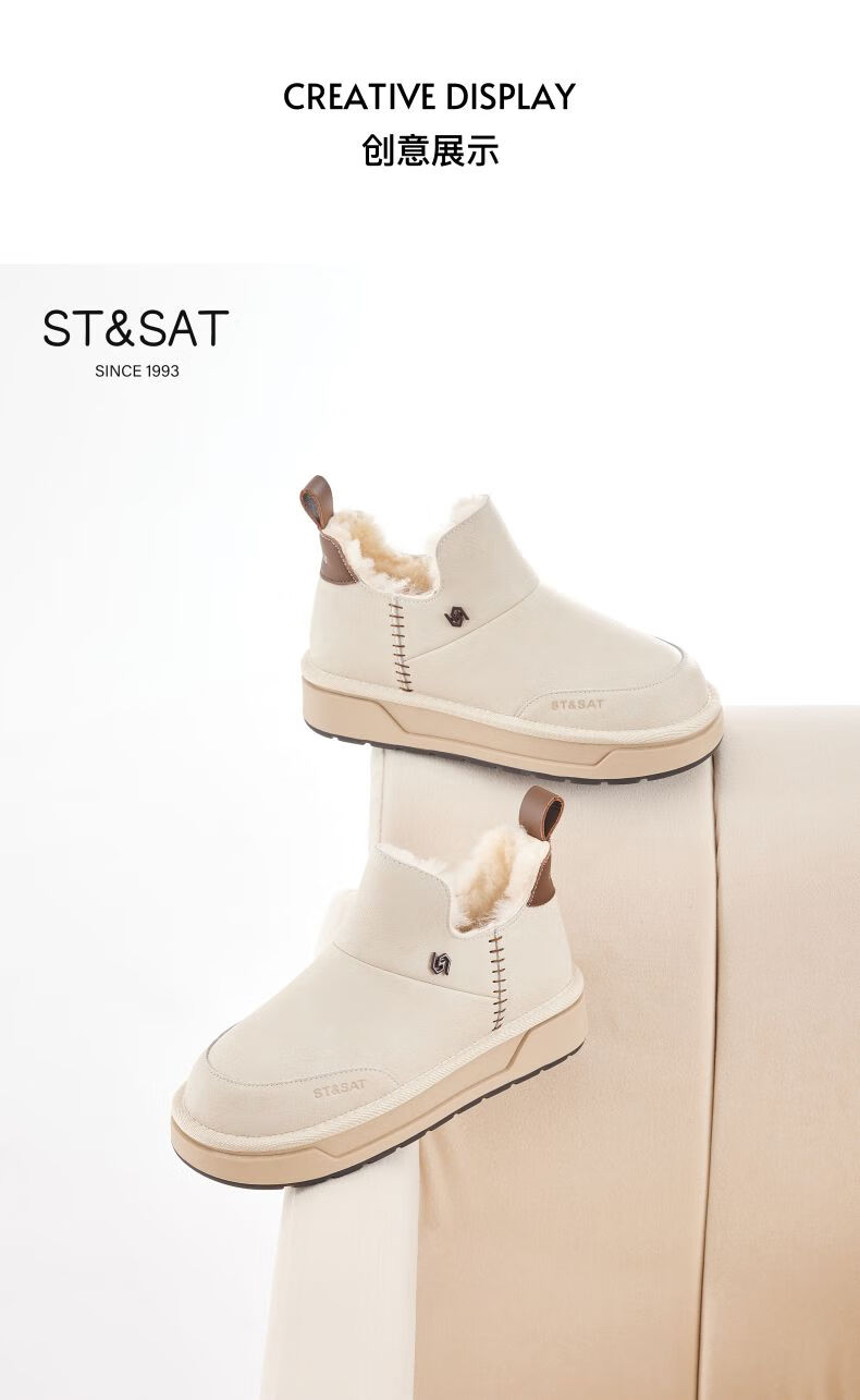 星期六厚底增高雪地靴女款冬季2025新款防水防滑面包鞋加绒加厚保暖棉鞋 米白色 【加绒保暖】跟高3cm 35