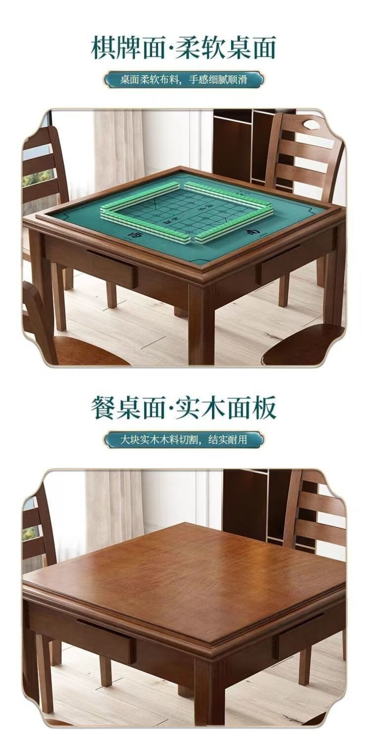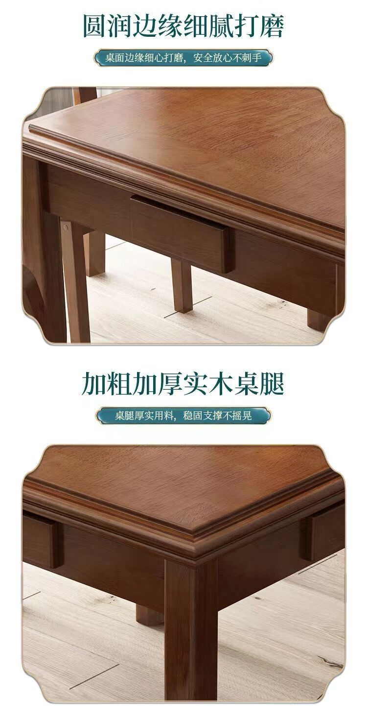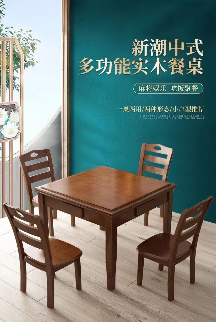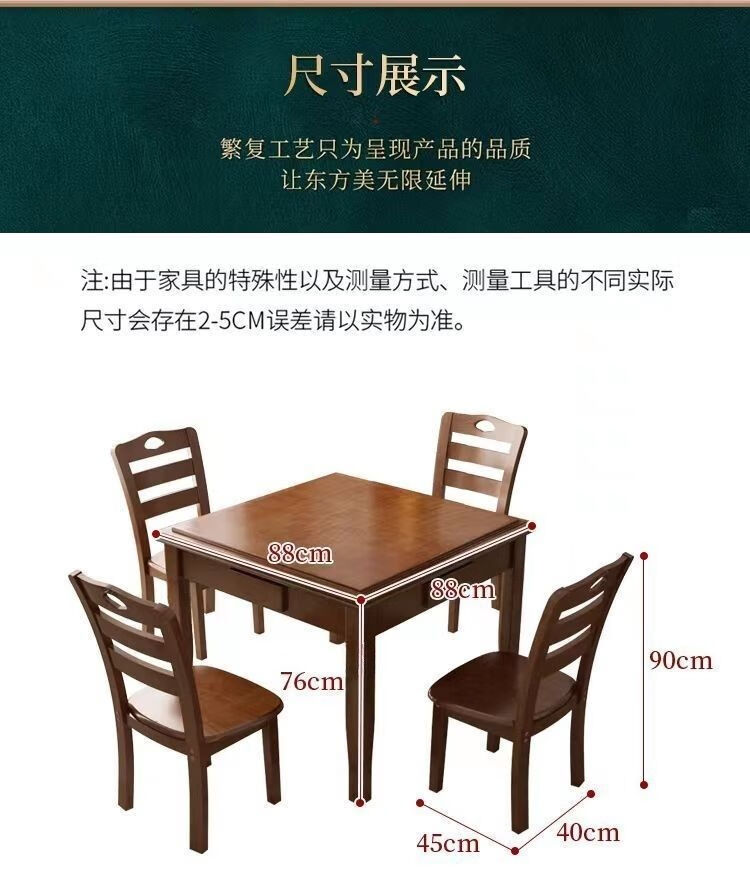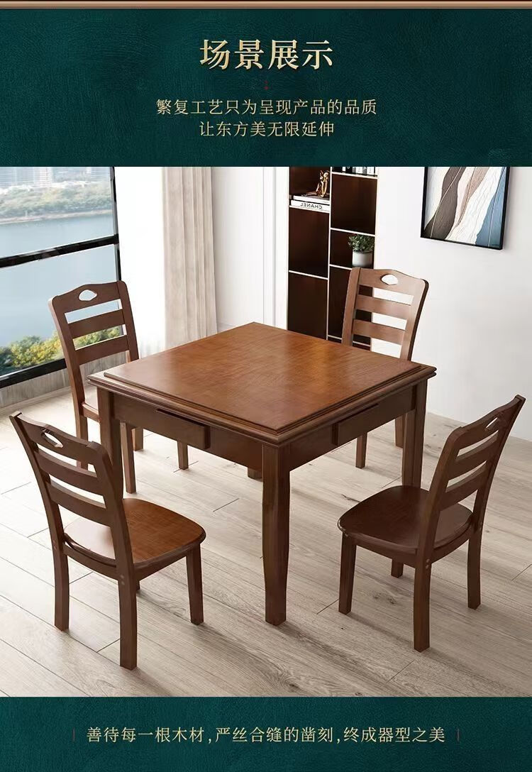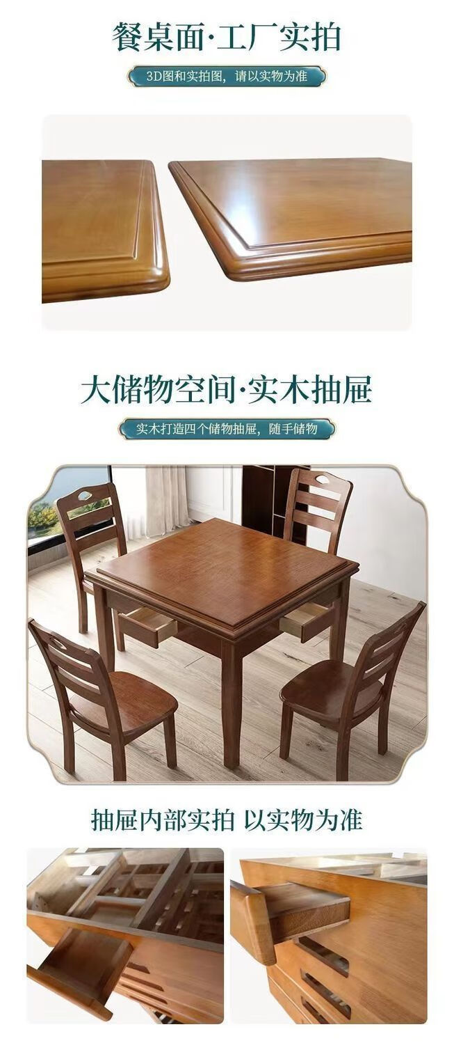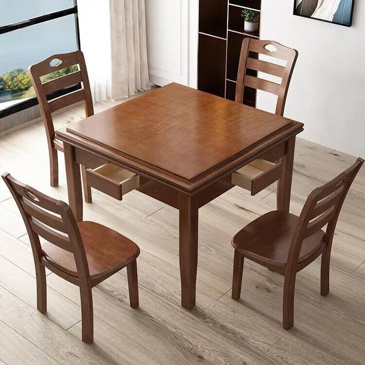 弘星隆两用带抽屉正方形棋牌桌子手搓实木麻将桌餐桌椅小户型方桌清仓 单桌胡桃色
