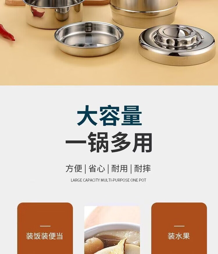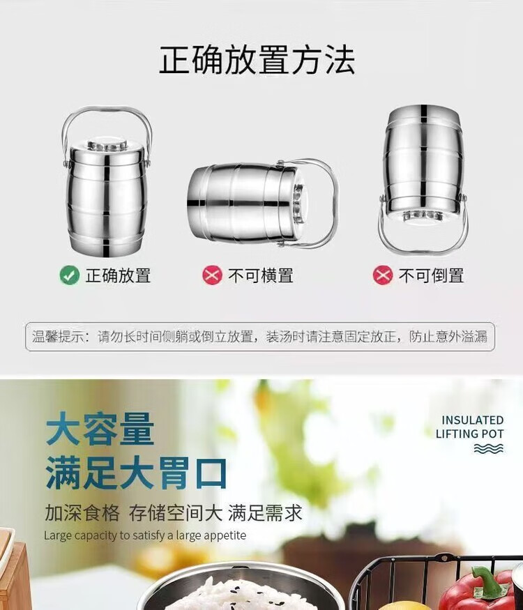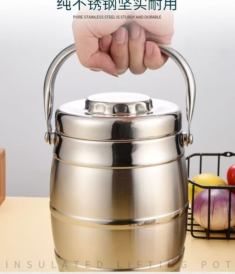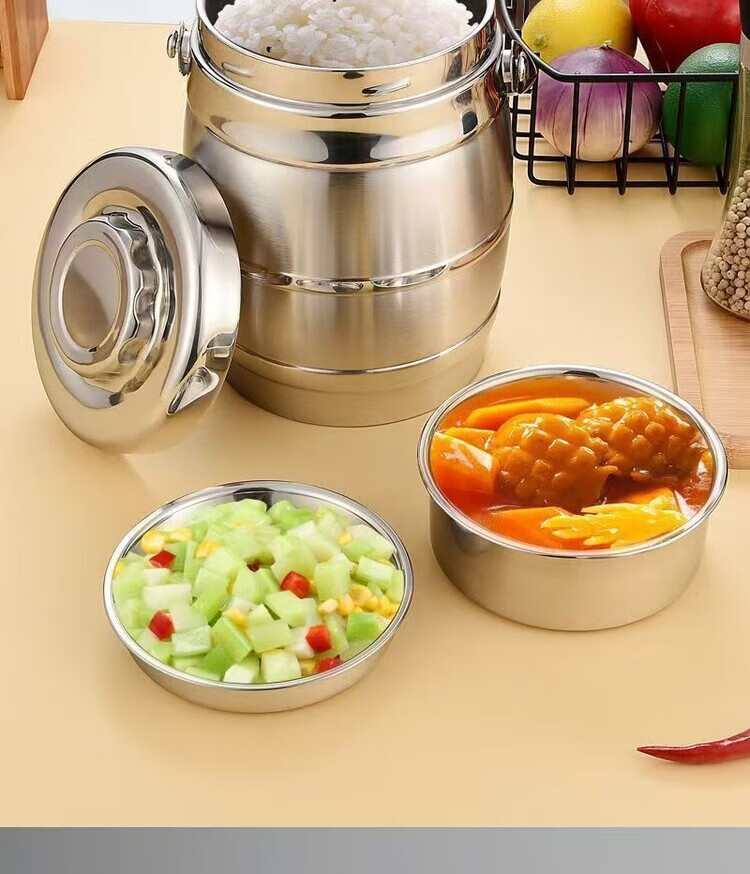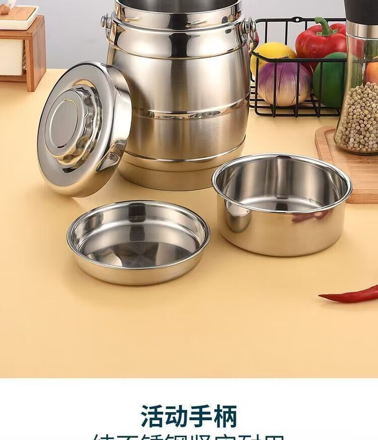 泰禧阁304不锈钢提锅三层保温饭盒大容量学生上班族便携保温桶 2.4L 适合2-3人使用 【碗盖款】2400毫升
