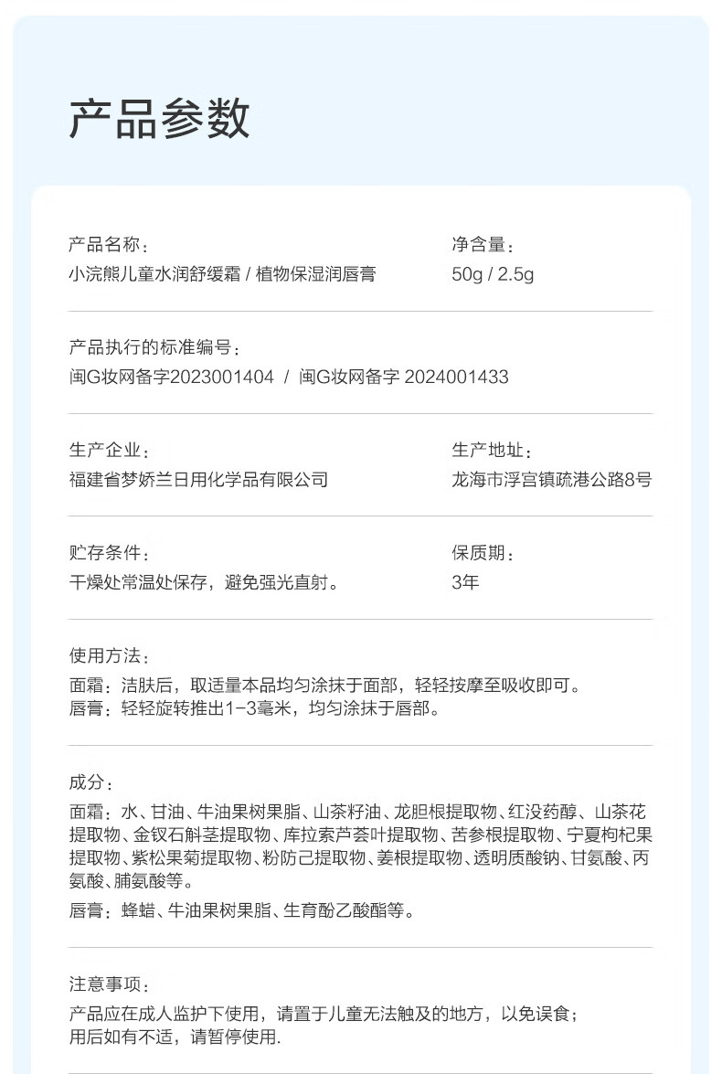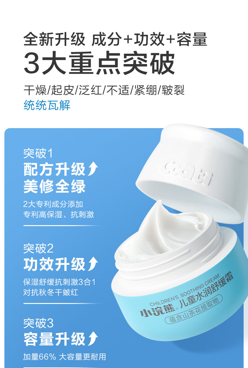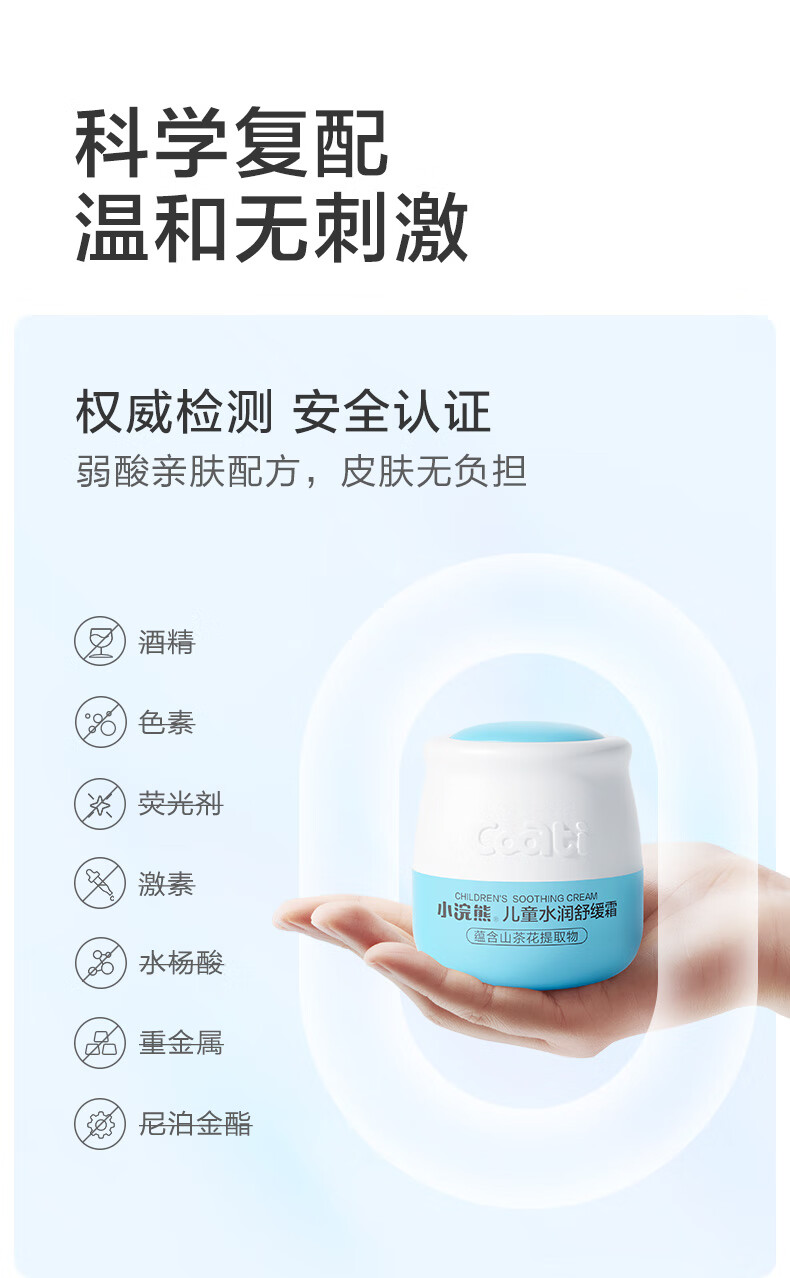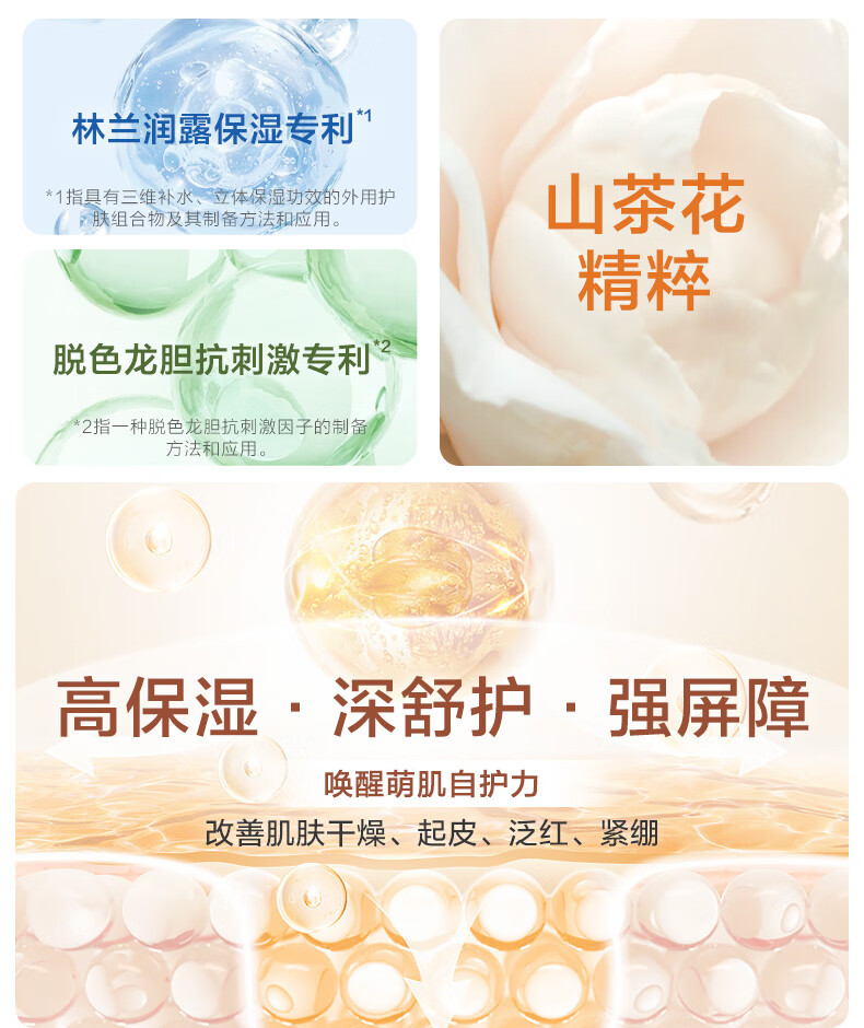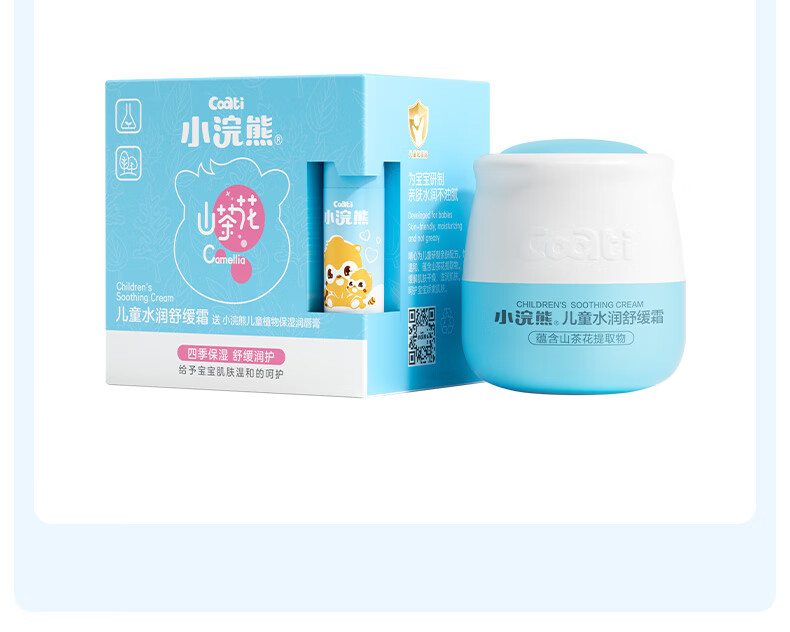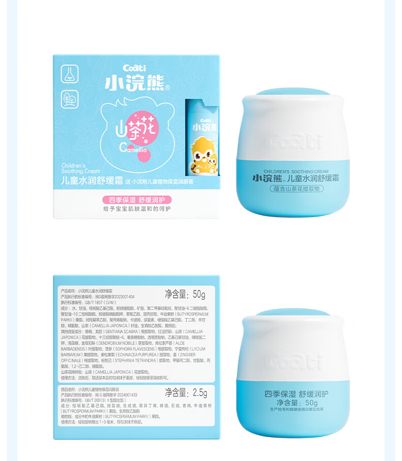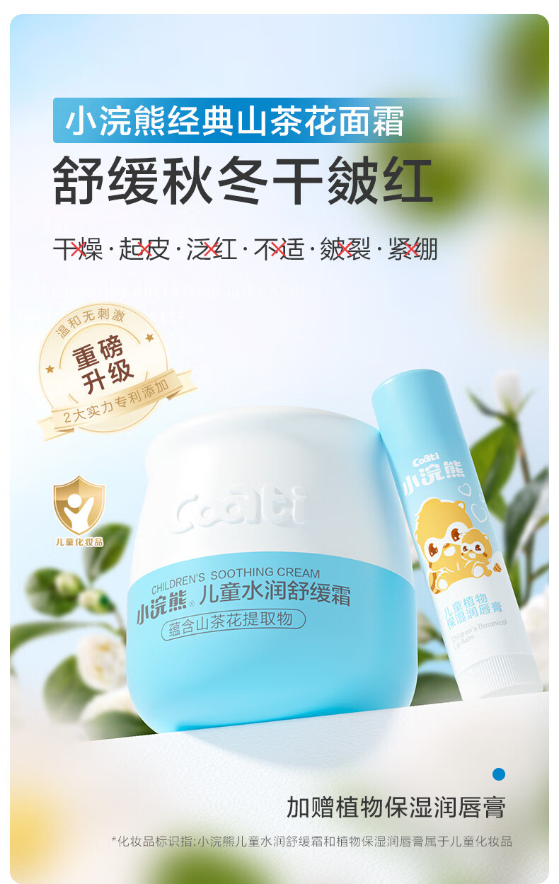 小浣熊山茶花儿童柔润保湿面霜婴儿宝宝擦脸护理面霜补水保湿润肤乳 儿童水润舒缓霜50g+唇膏2.5g