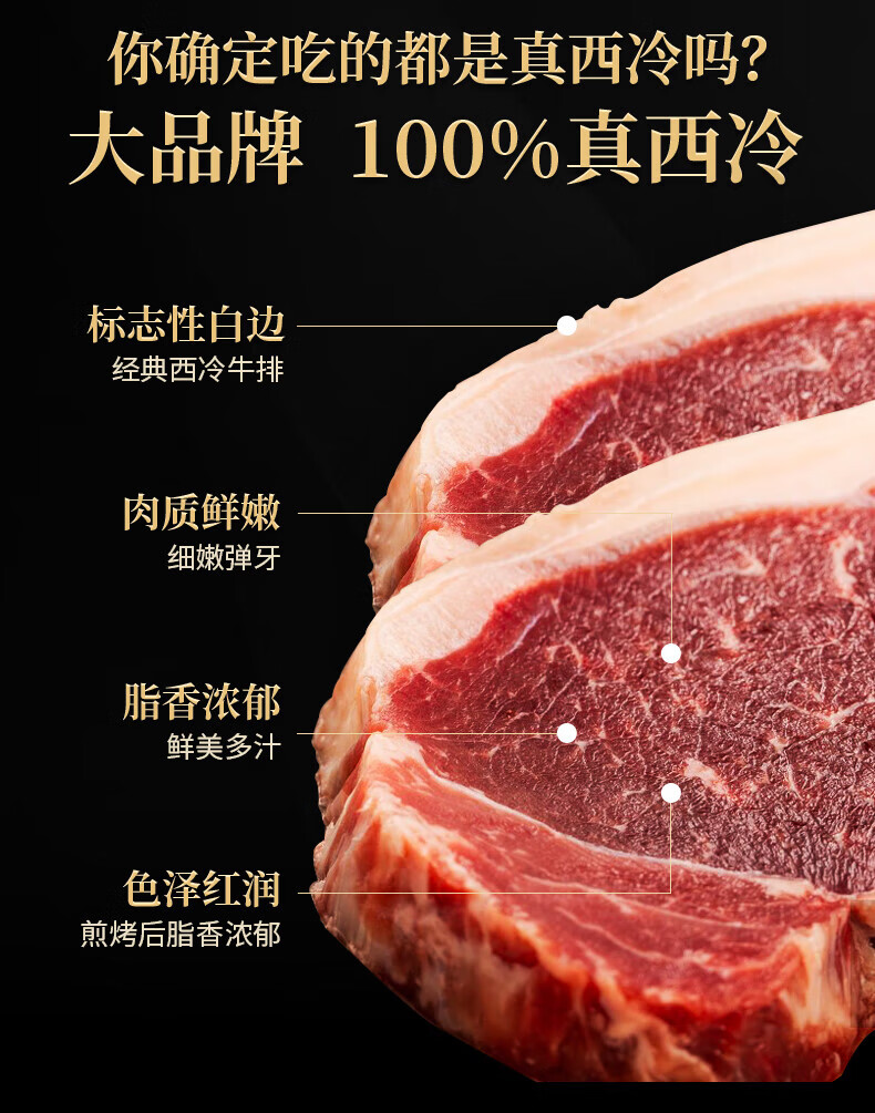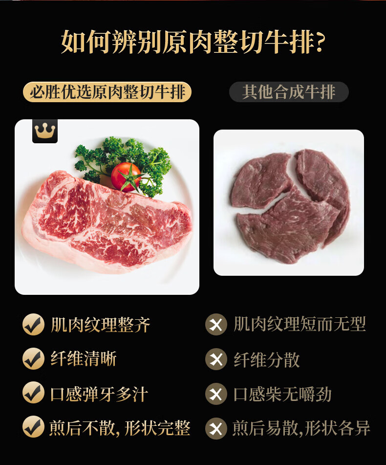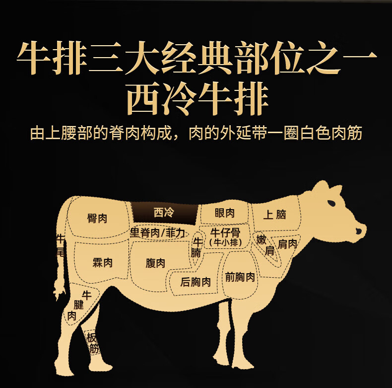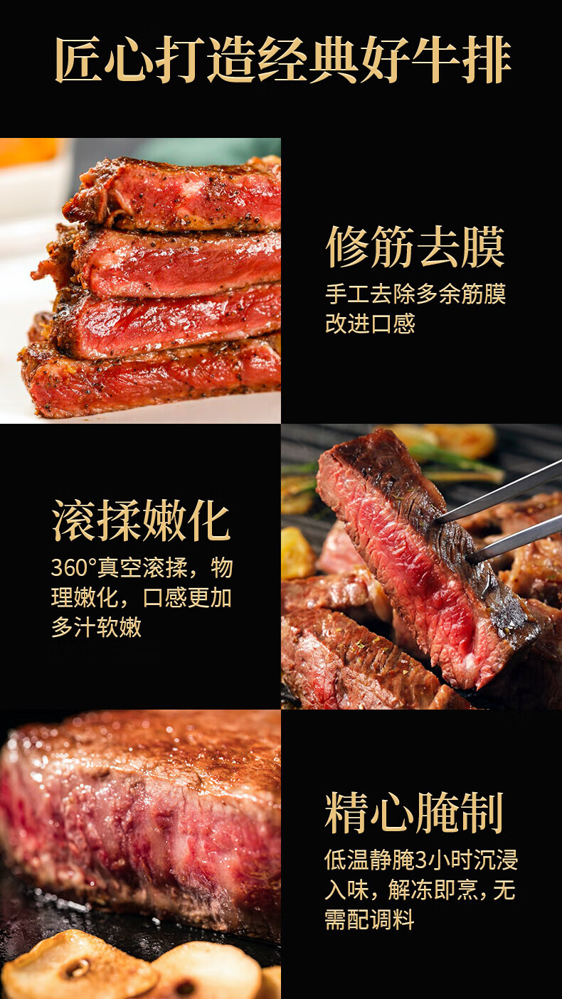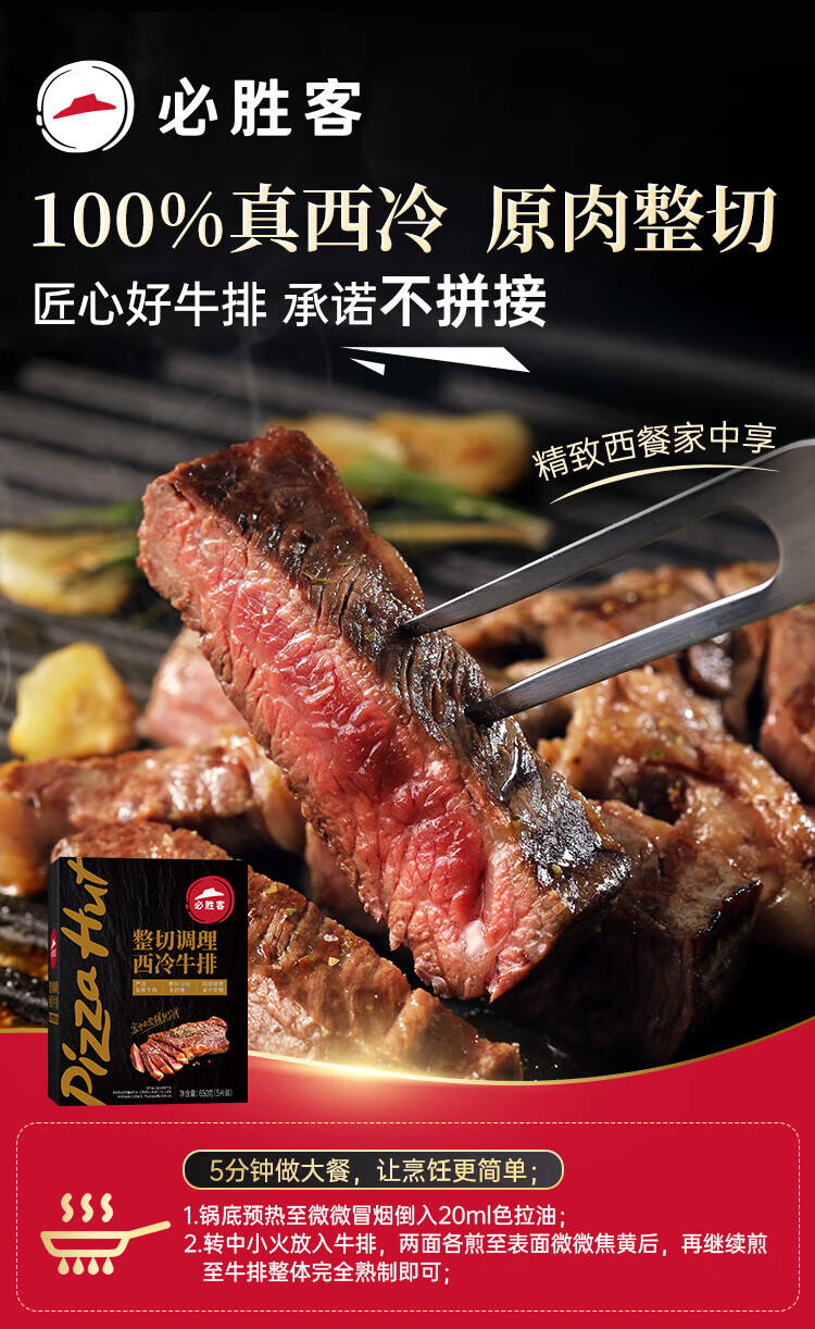 必胜客必胜优选整切调理西冷牛排650g*2黑金礼盒 源头直发健身减脂