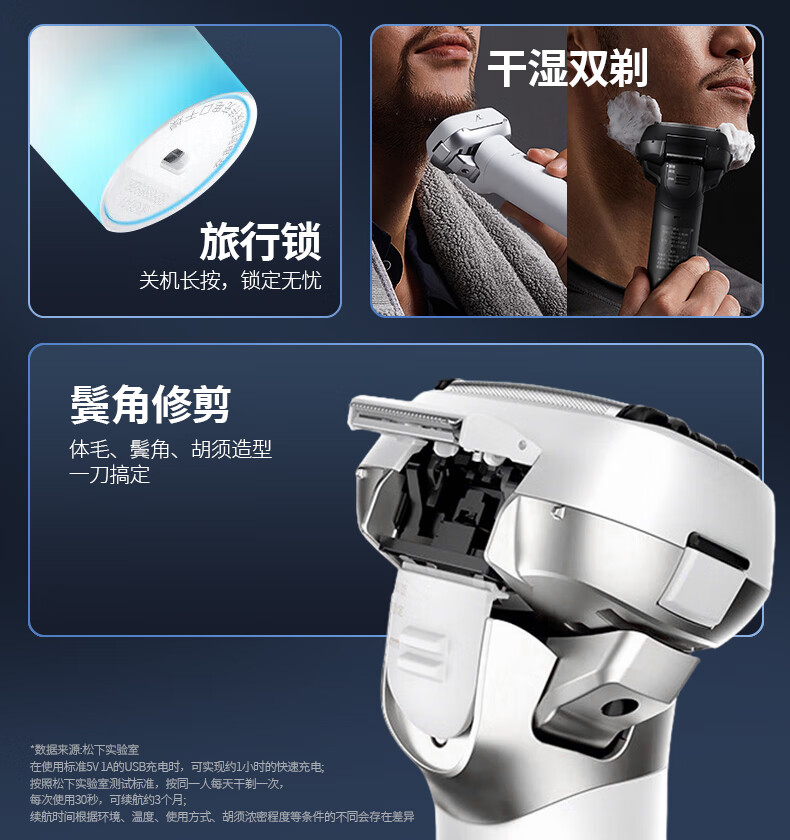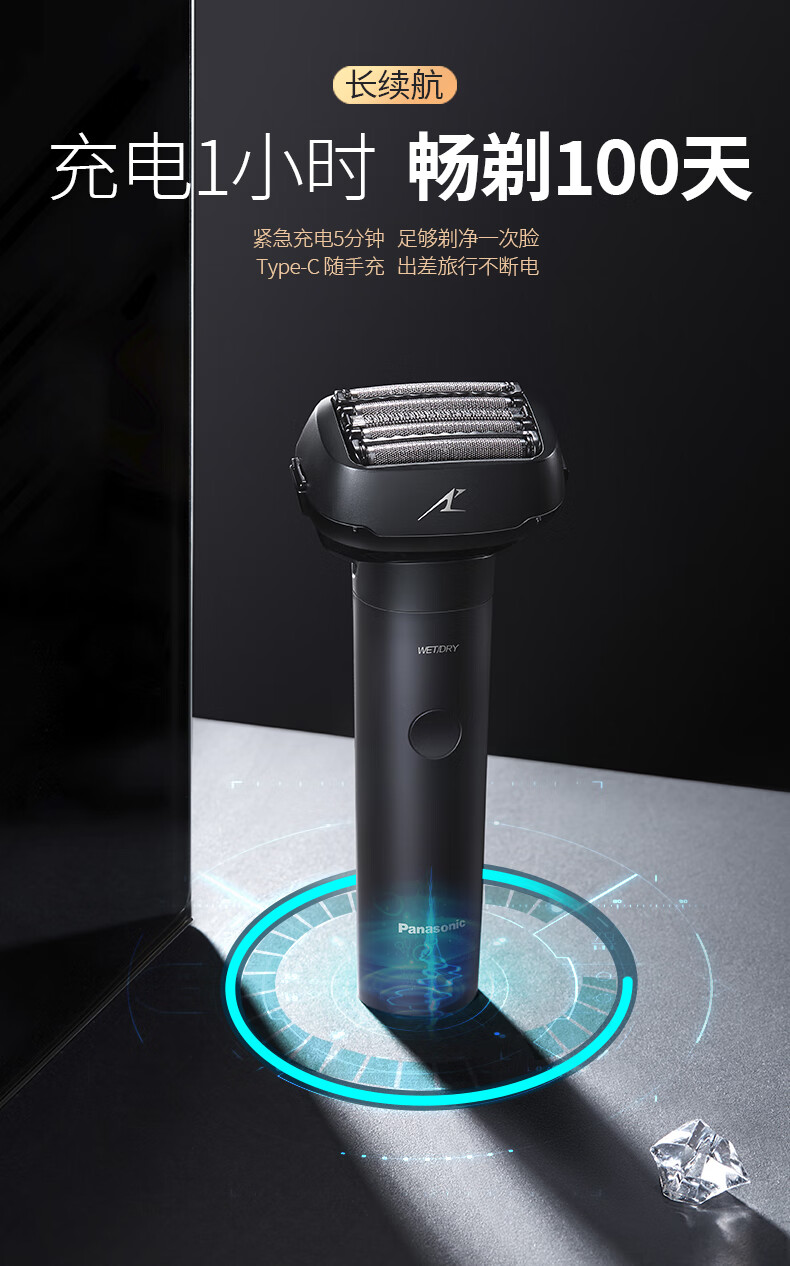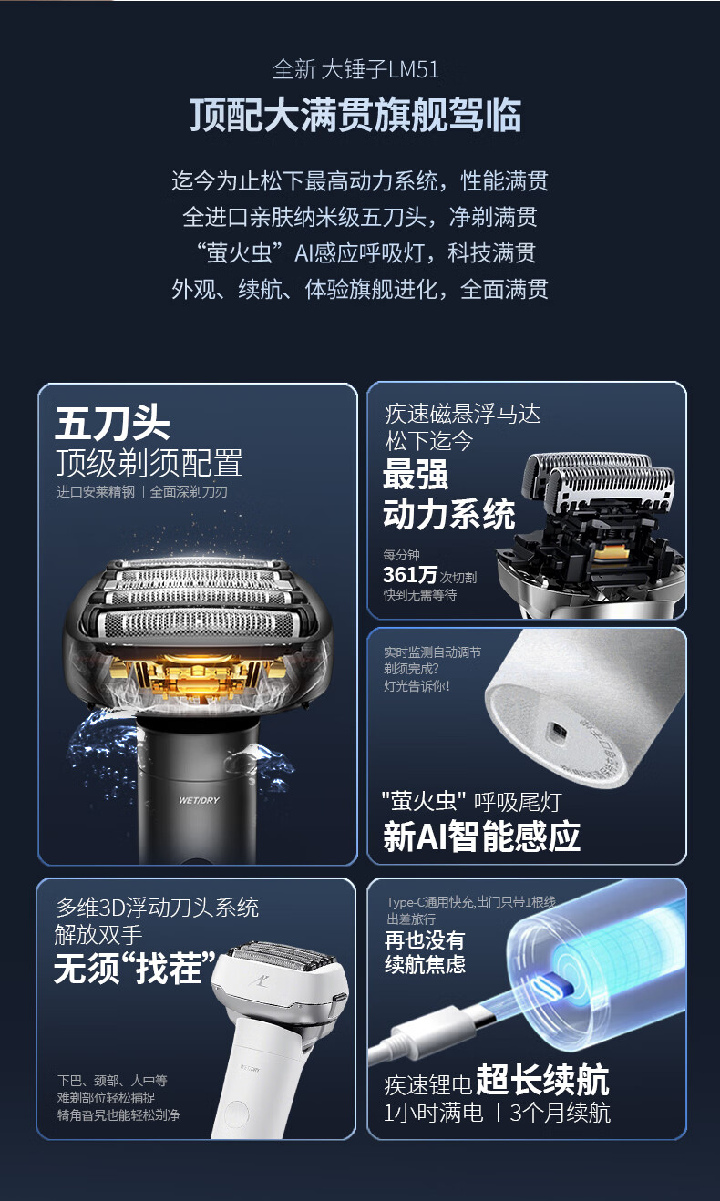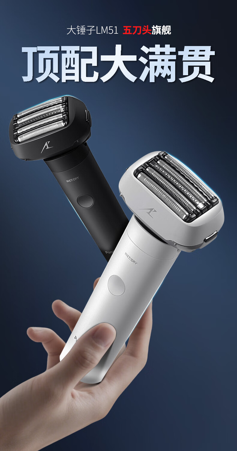 松下(Panasonic)大锤子剃须刀电动刮胡刀进口五刀头便携往复式男生生日礼物送男朋友父亲礼盒装出差旅行LM51 LM51大锤子【耀夜黑】