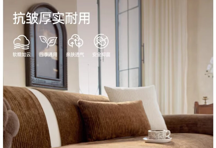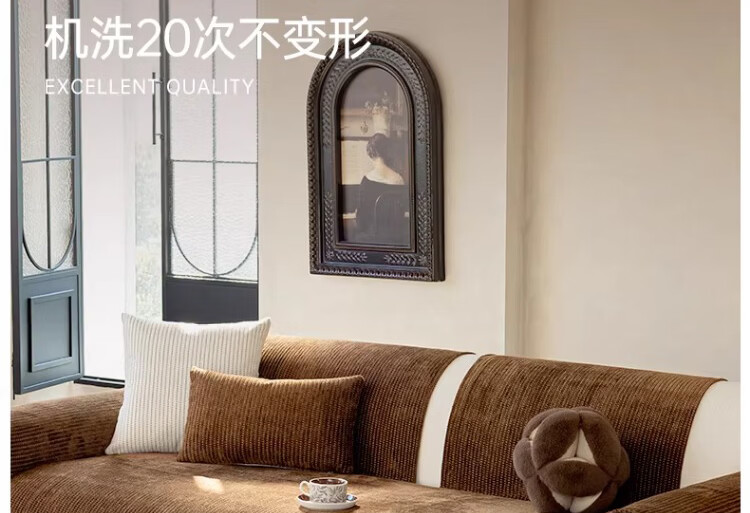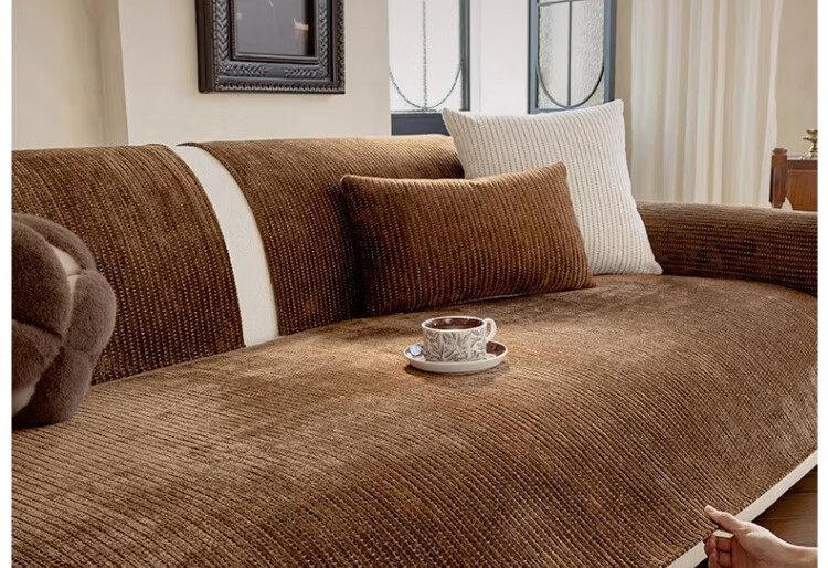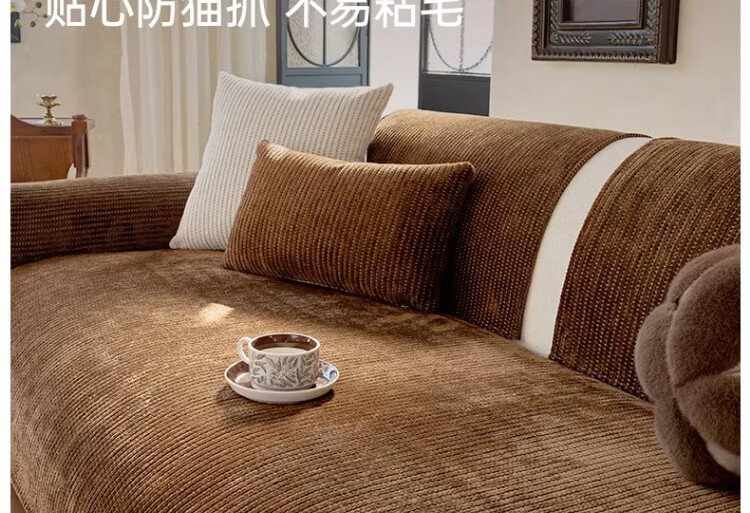 无印良品中古风沙发垫四季通用2025新款坐垫子固定防滑真皮沙发专用座垫 锦织-深咖【雪尼尔护皮,防滑更安心】 90*90cm【扶手或靠背(带花边)】