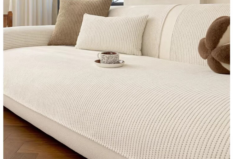 无印良品兔毛绒沙发垫冬季2025新款加厚毛绒防滑奶油风不掉毛皮沙发坐垫子 瑞比特-白色 【冬季毛绒 防静电】 90*240cm (三人位/小四人位)