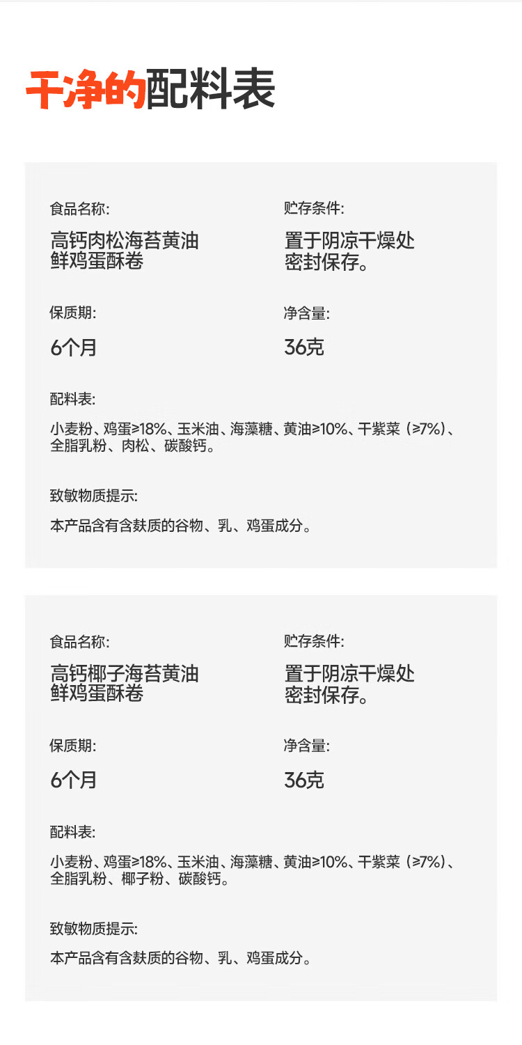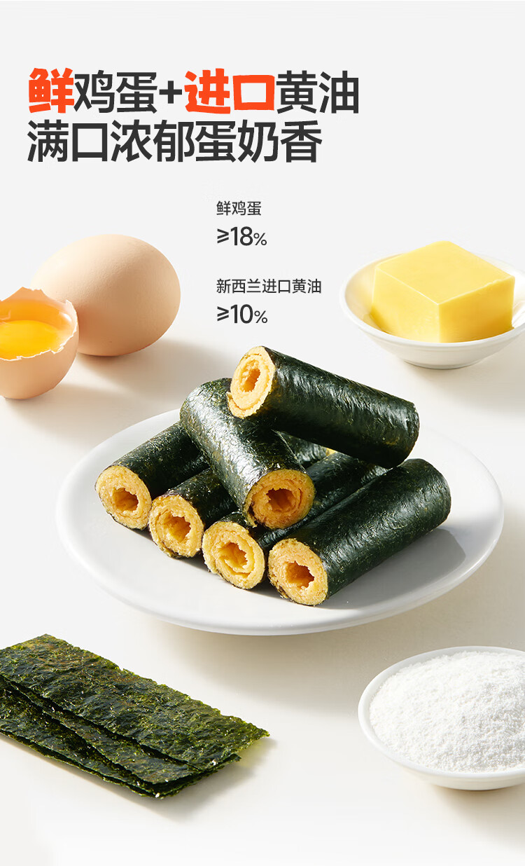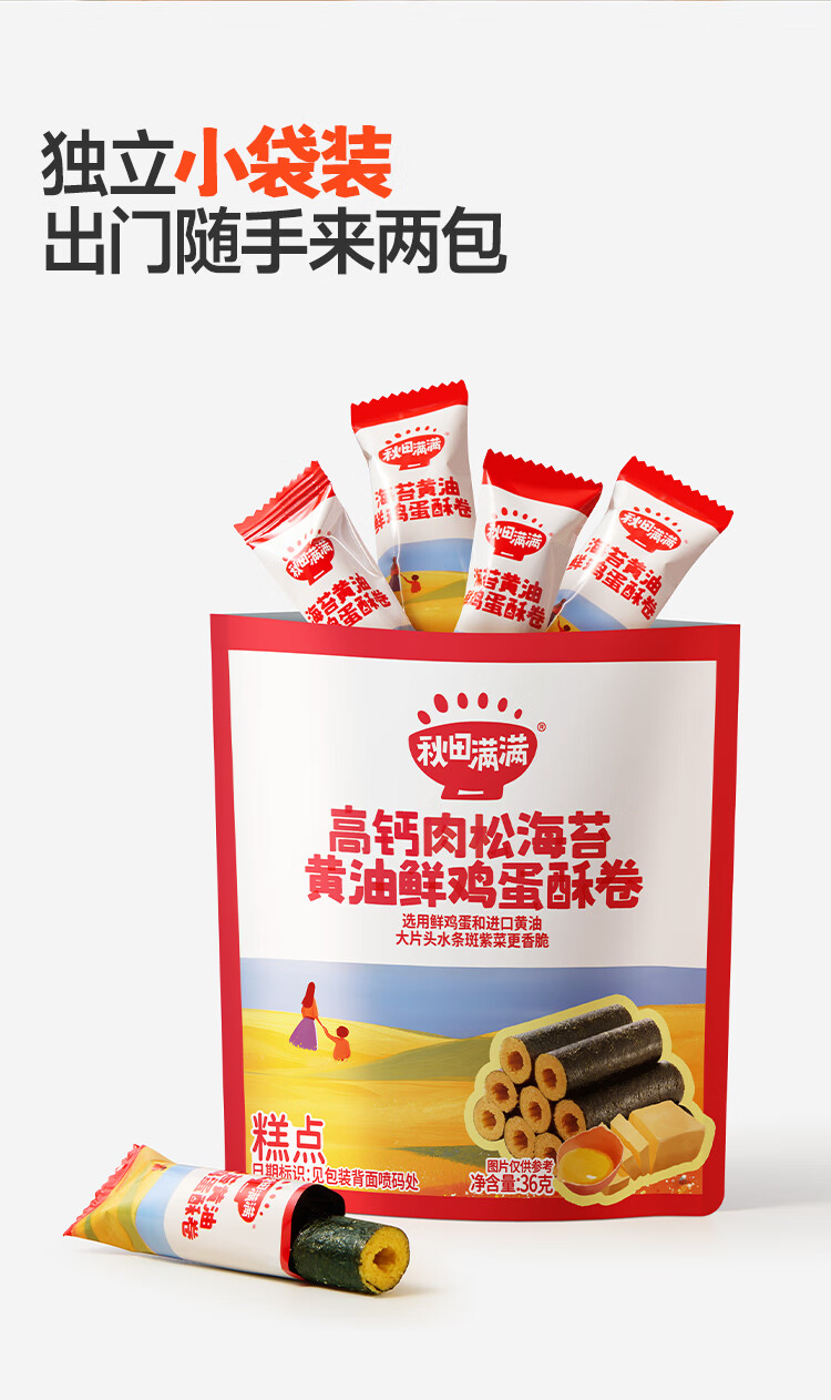 秋田满满高钙肉松海苔黄油鲜鸡蛋酥卷36g休闲零食点心