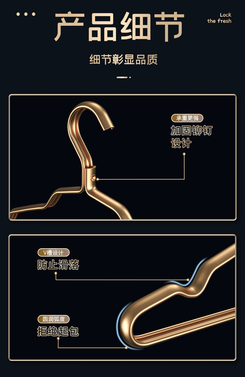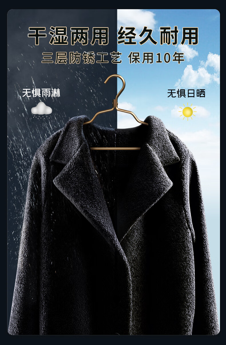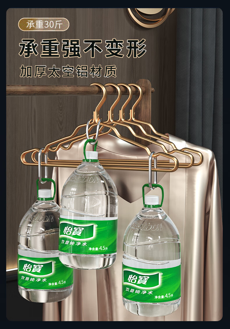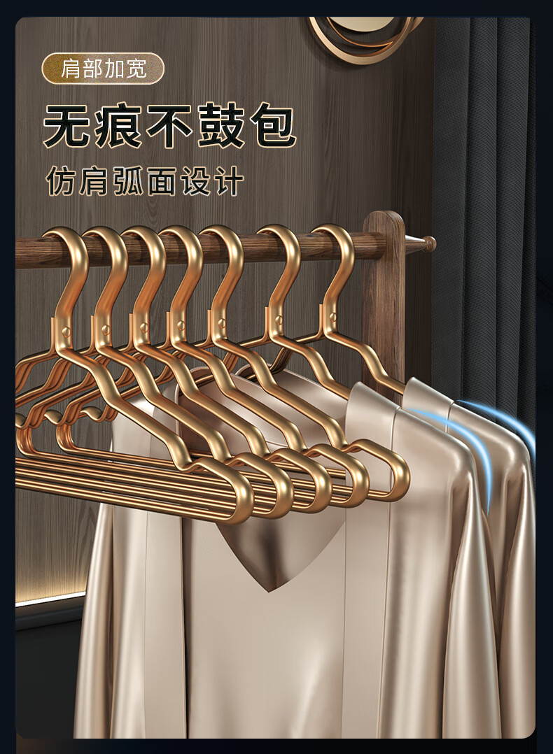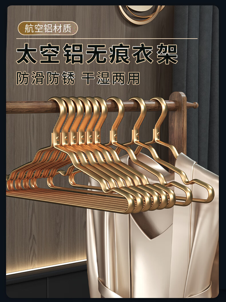WCZ德国太空铝合金衣架挂衣家用防滑不锈钢衣挂金色衣服挂架晾衣架子 1.2cm宽轻奢金 防潮防锈 10个