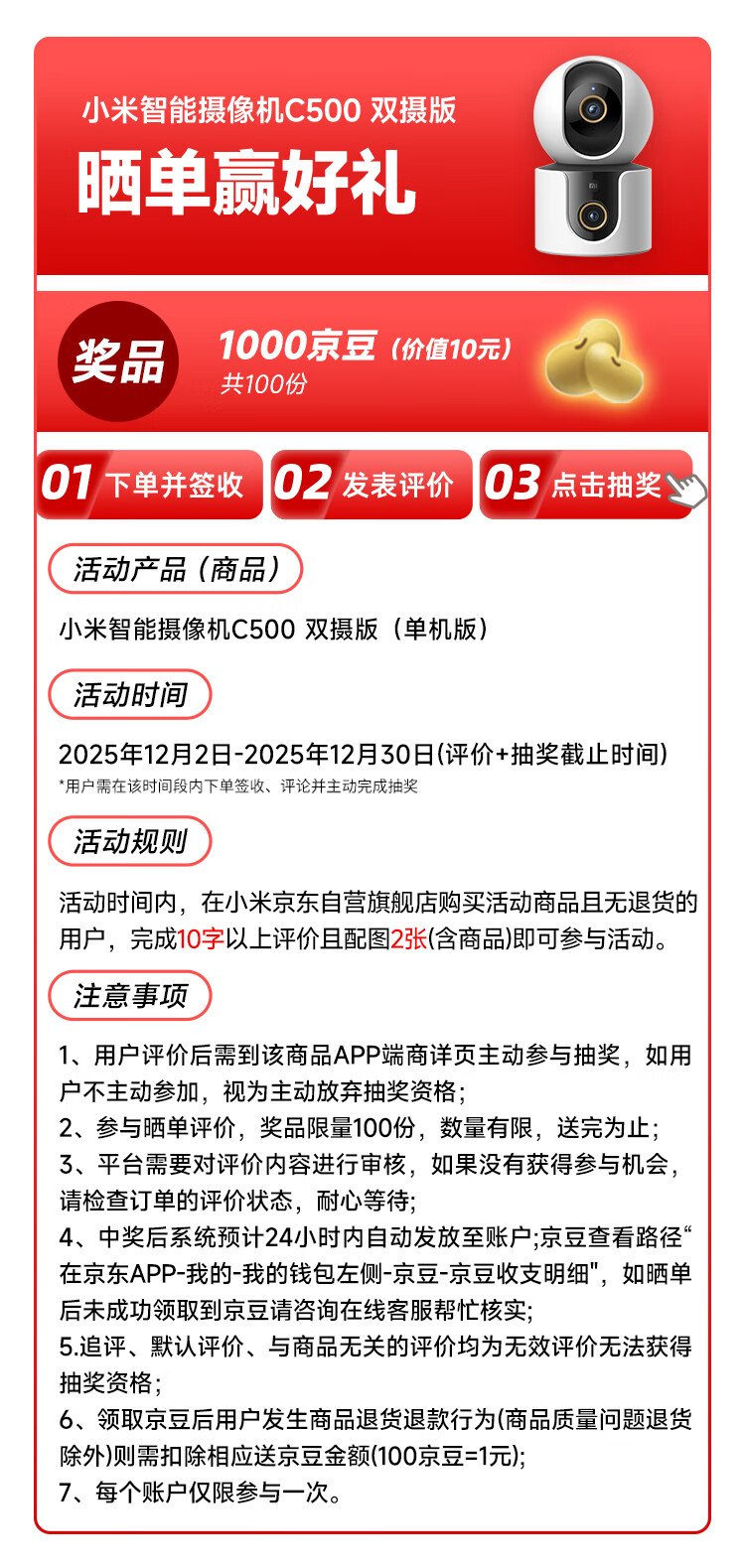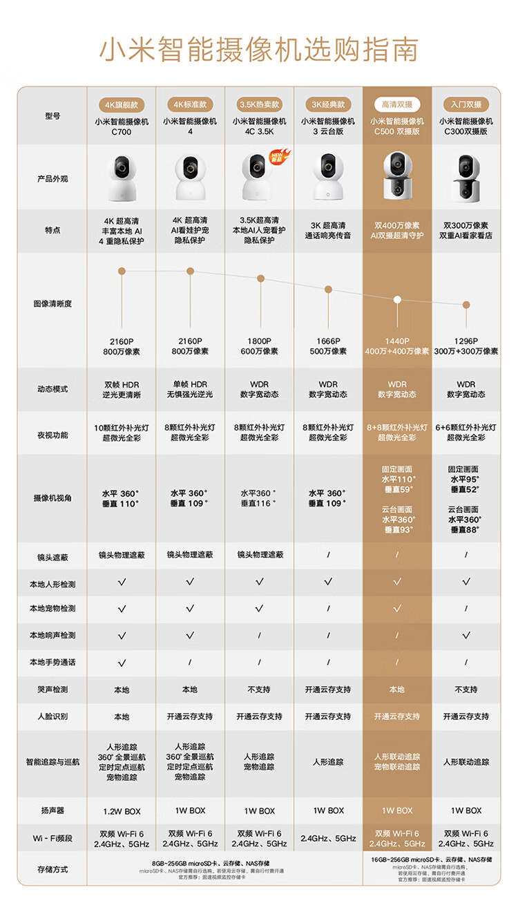 小米智能摄像机C500双摄版监控器360度无死角带夜视摄像头家用全景婴儿宠物监控手机远程高清监控