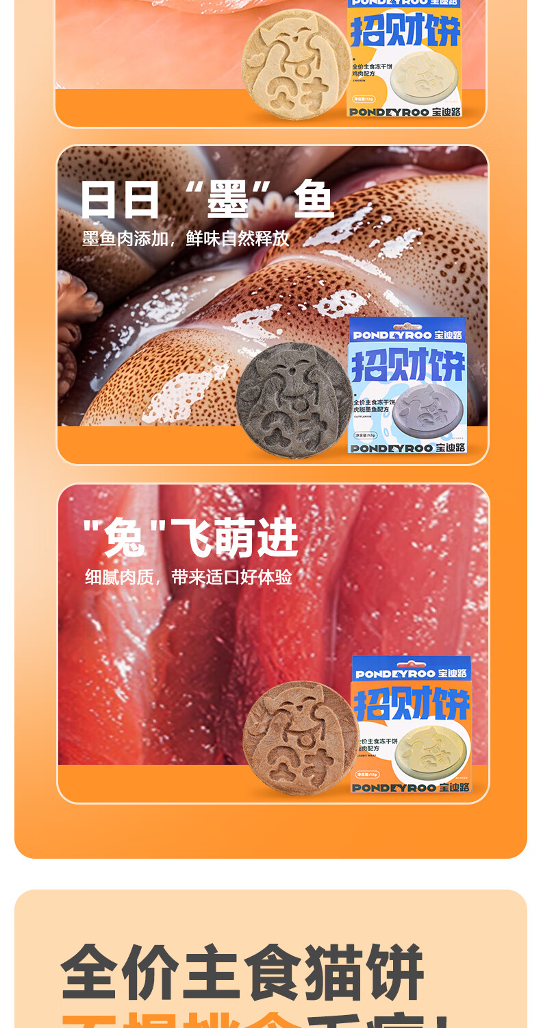 宝迪路宠物零食全价主食冻干饼添加深海鱼油生骨肉招财饼 虎斑墨鱼配方12g/盒