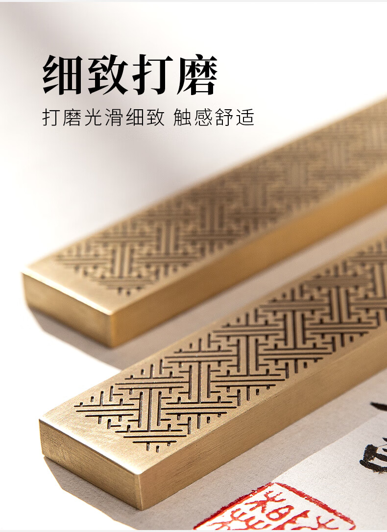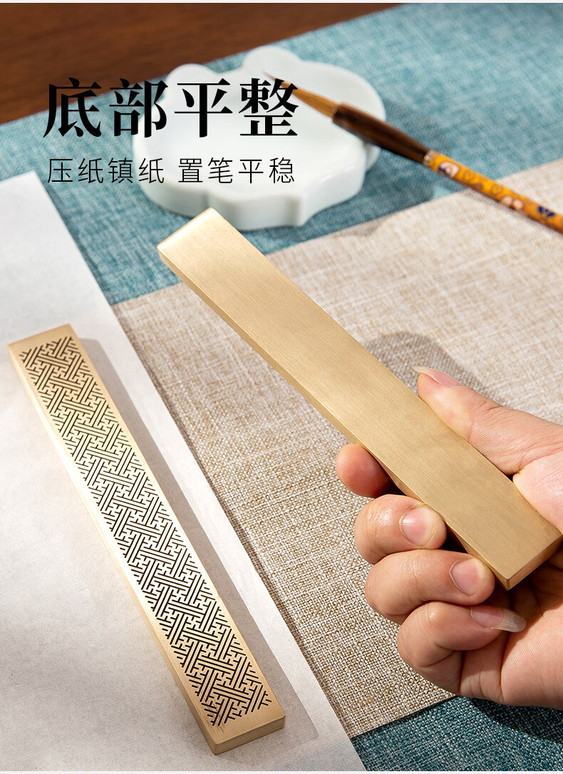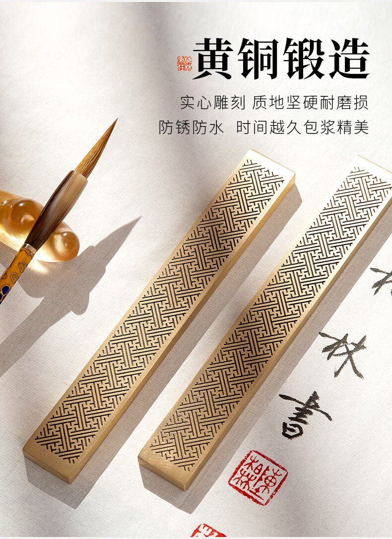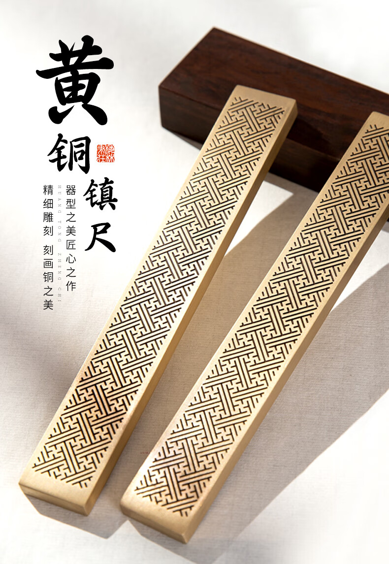 梅林笔庄黄铜镇尺实心纯铜书法镇纸尺毛笔压纸石仿古压书压条金属镇尺大号文房四宝高档送礼摆件可定制刻字 黄铜镇尺22cm 单支装