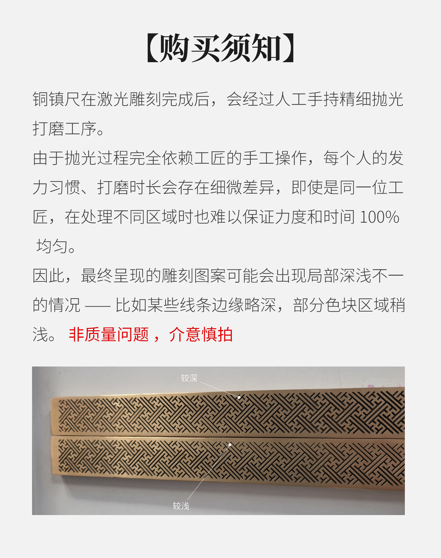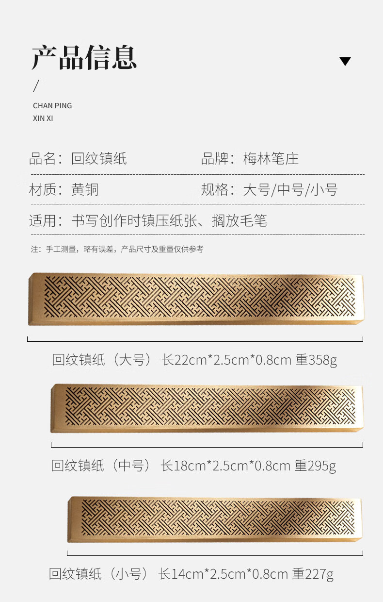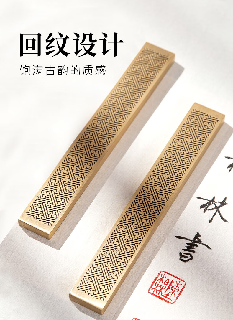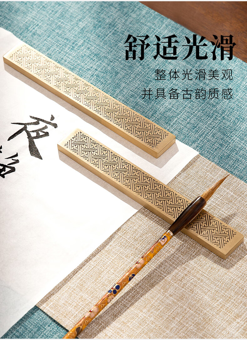 梅林笔庄黄铜镇尺实心纯铜书法镇纸尺毛笔压纸石仿古压书压条金属镇尺大号文房四宝高档送礼摆件可定制刻字 黄铜镇尺22cm 单支装