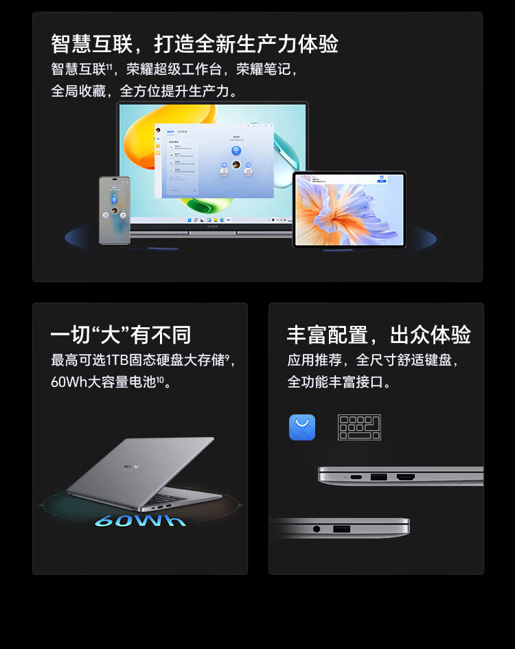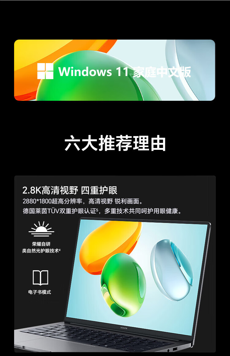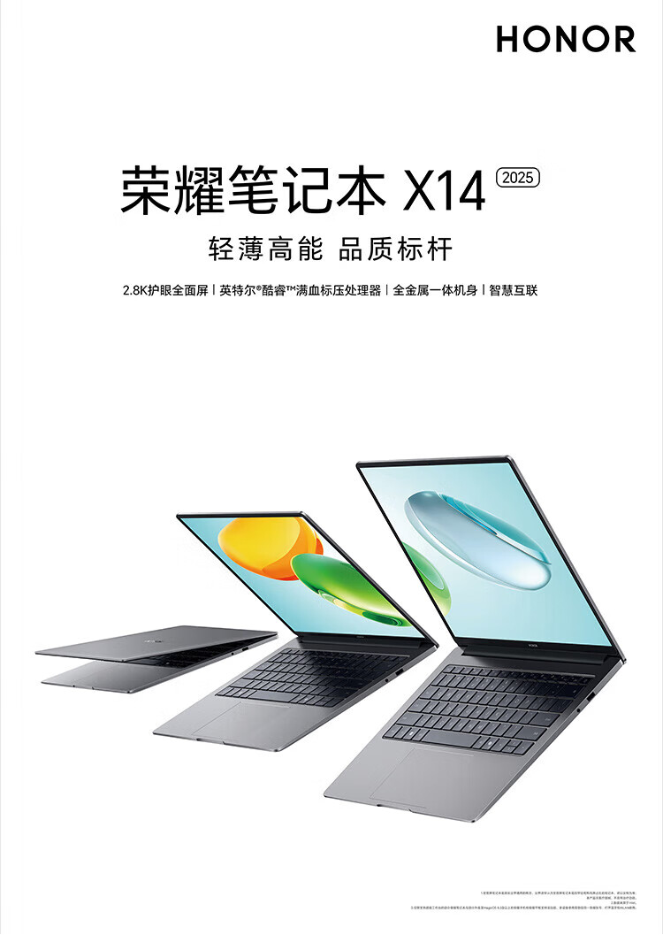 荣耀MagicBookX14 2025 笔记本电脑 14英寸高性能AI商务办公轻薄本(i7-13620H 16G+1T 2.8K 1号店套装)
