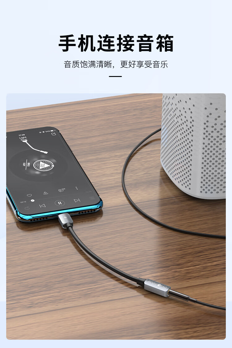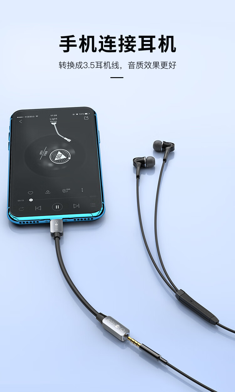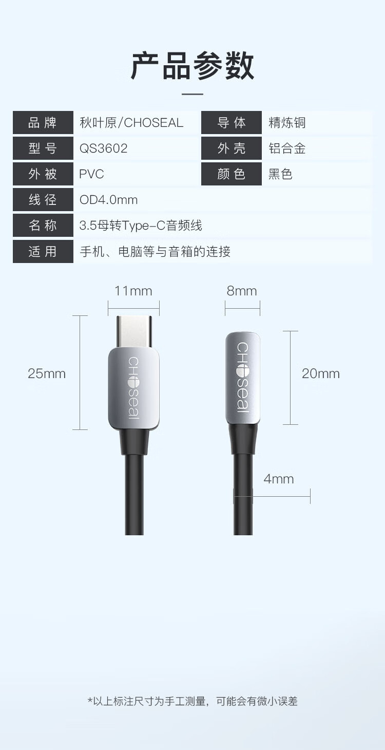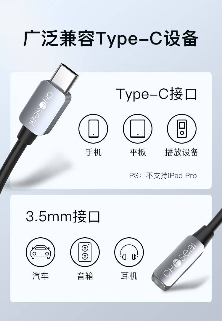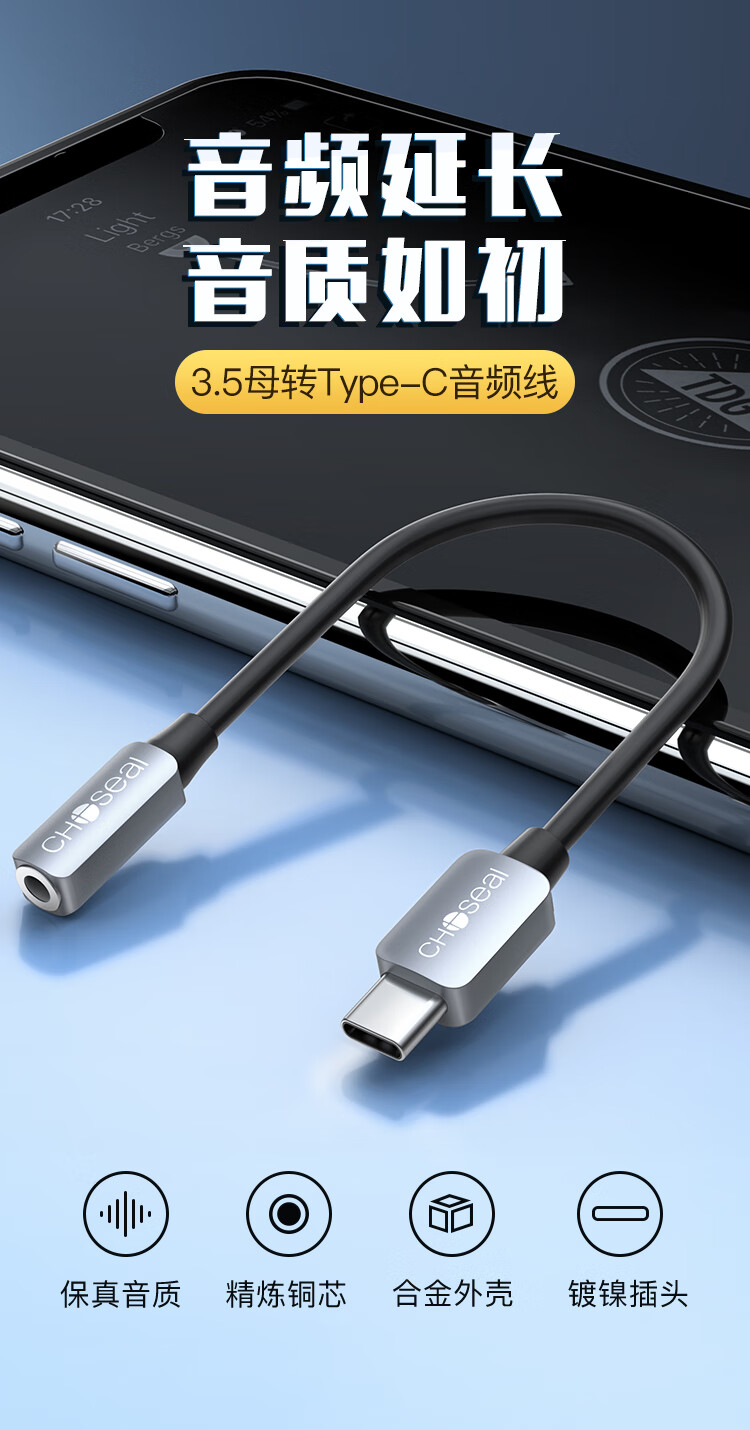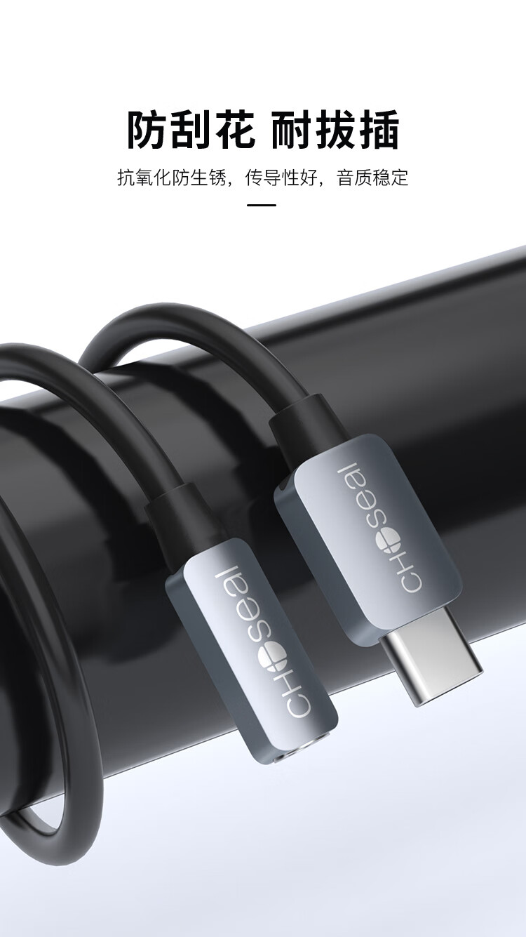 秋叶原(CHOSEAL)Type-C转3.5mm音频线 耳机转接头 USB-C转换器 适用于部分安卓手机 0.2米 QS3602T0D2