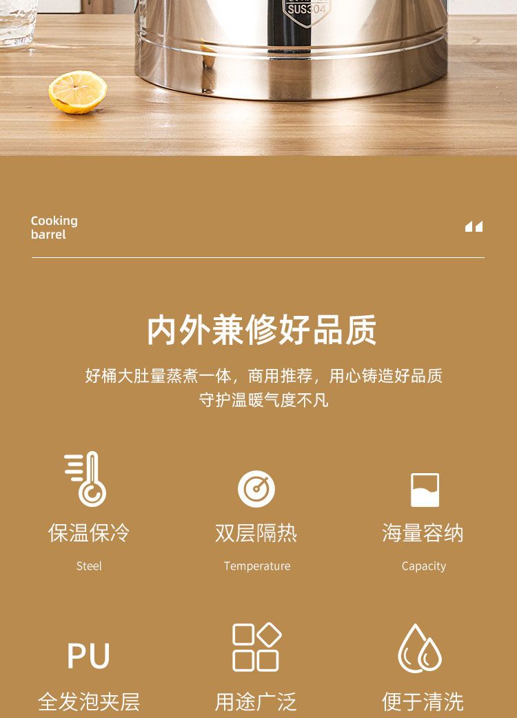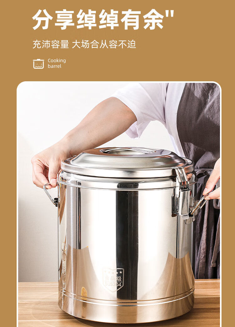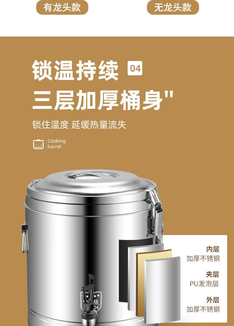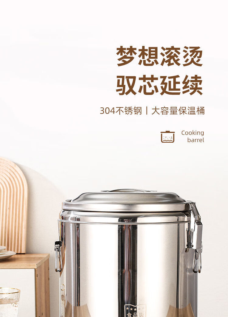 简漾不锈钢超长保温桶商用大容量食堂饭桶豆浆桶奶茶桶摆摊豆腐脑汤桶 304食品接触级无龙头 20升保温桶