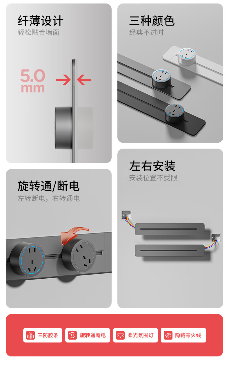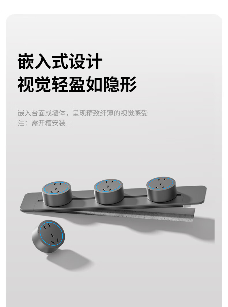 施耐德(Schneider)明装轨道插座 善弈臻意金属款 免开槽可移动电力插座壁挂式插座 臻意金属款 50cm+3个五孔【暮云灰】