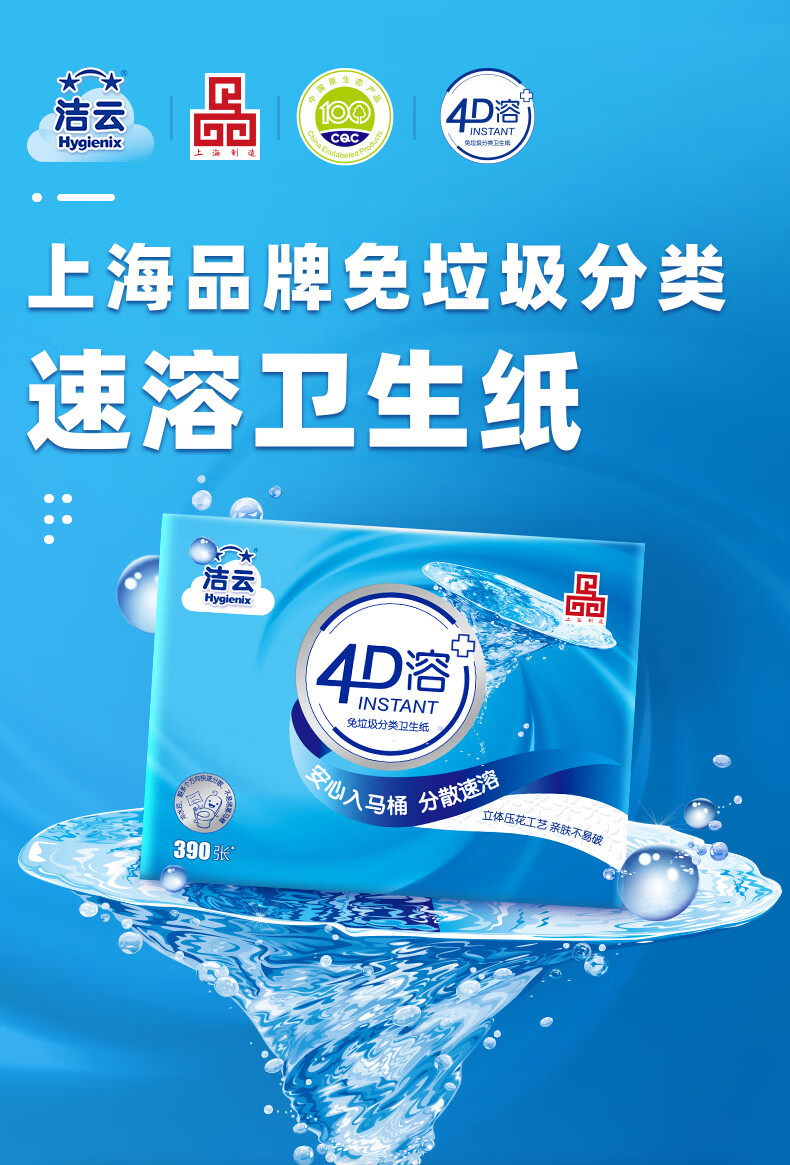 洁云卫生纸 4D溶+390张*12包 速溶压花草纸抽厕纸 替代卷纸 纸巾整箱